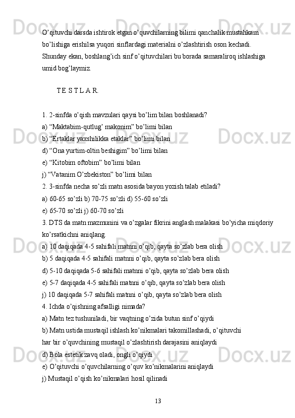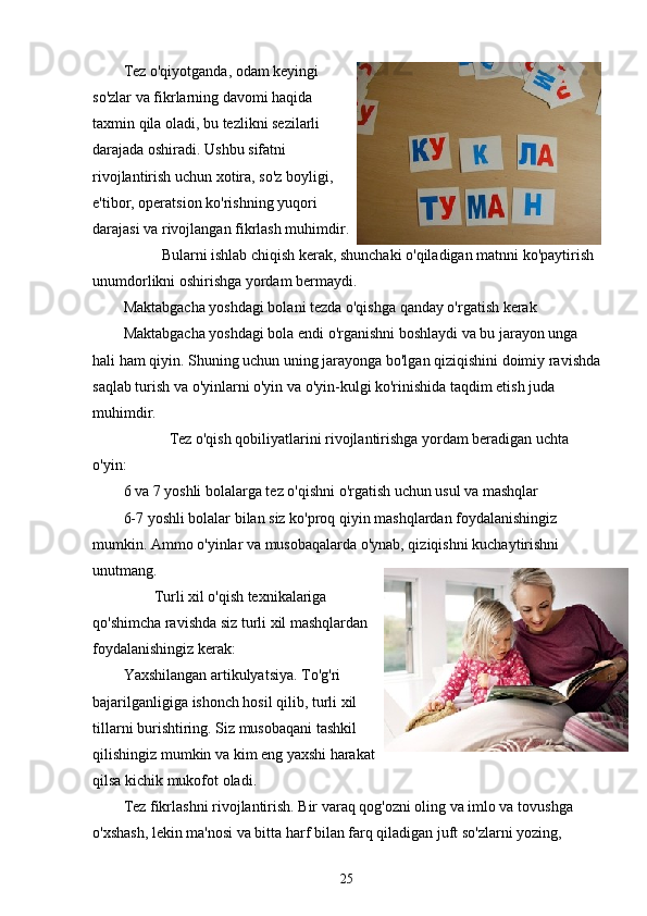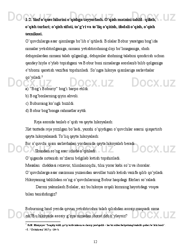 1-2 sinf o’quvchilarining o’qish malakalarini takomillashtirish