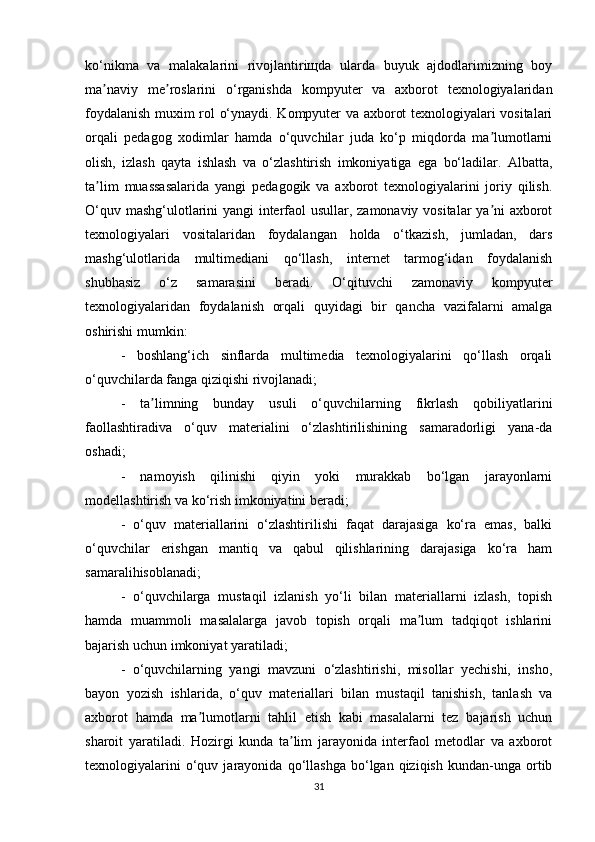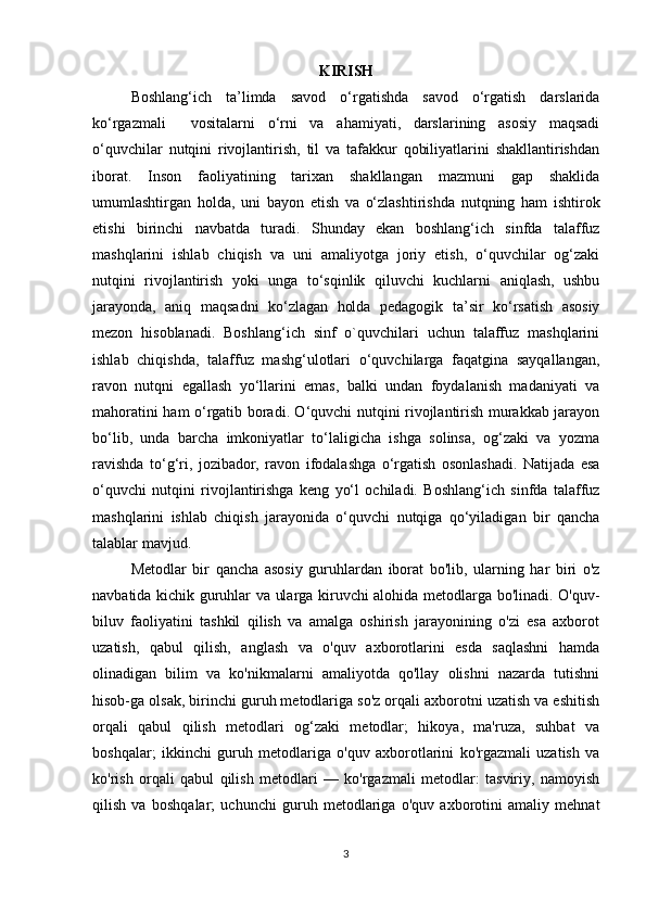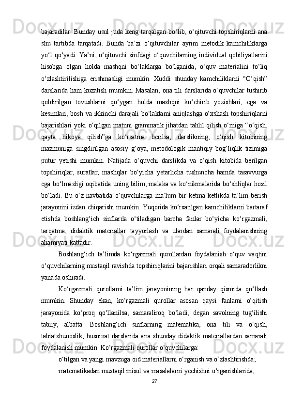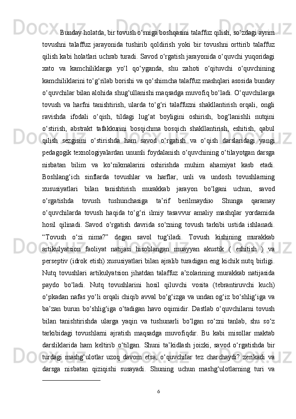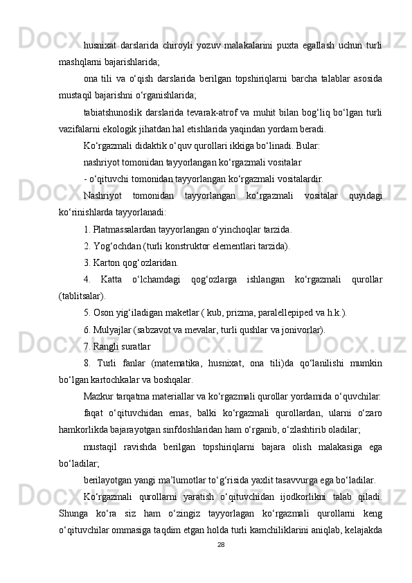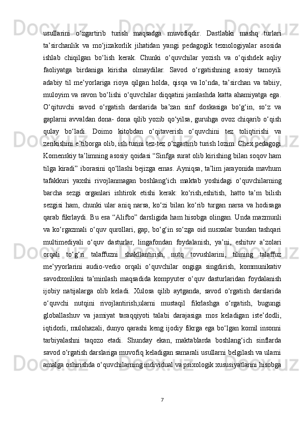 1-sinf ona tili va o’qish savodxonligi darslarida koʻrgazmali vositalardan foydalanish.