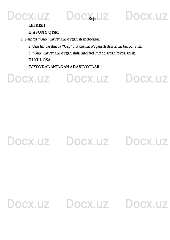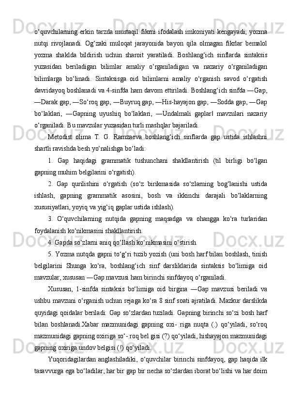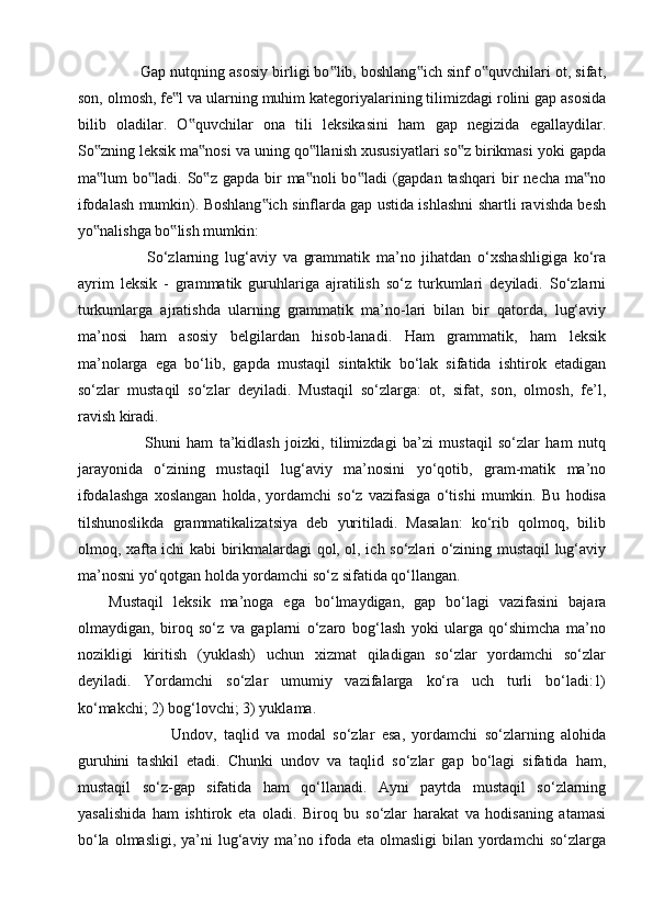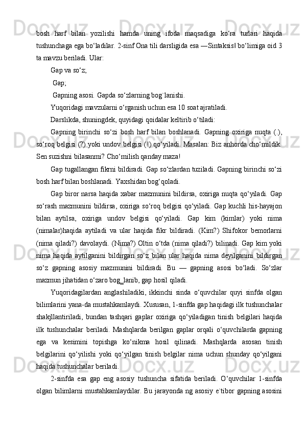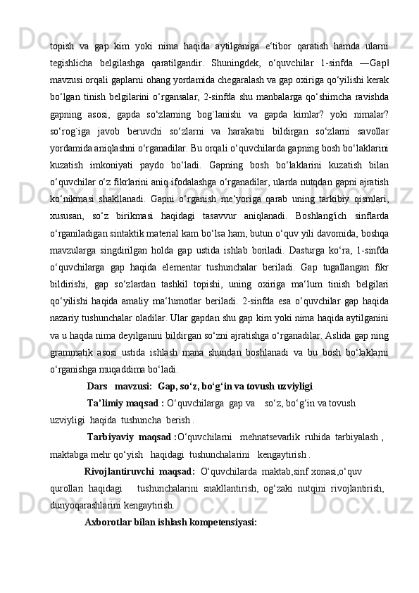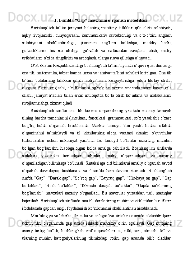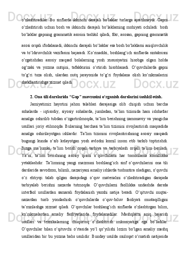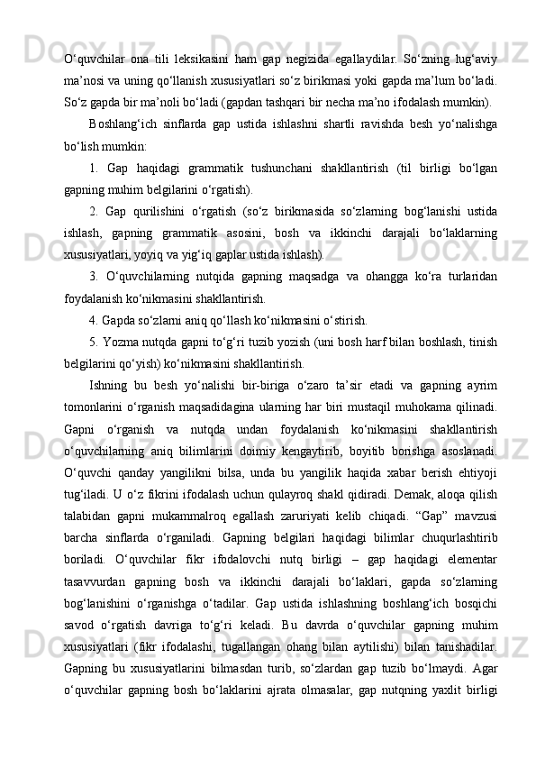 1-sinfda “Gap” mavzusini o’rganish metodikasi