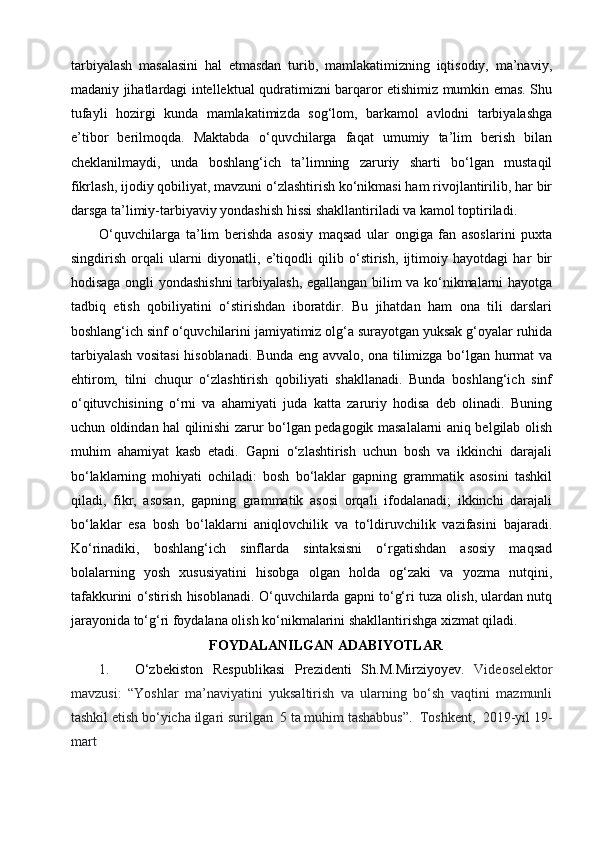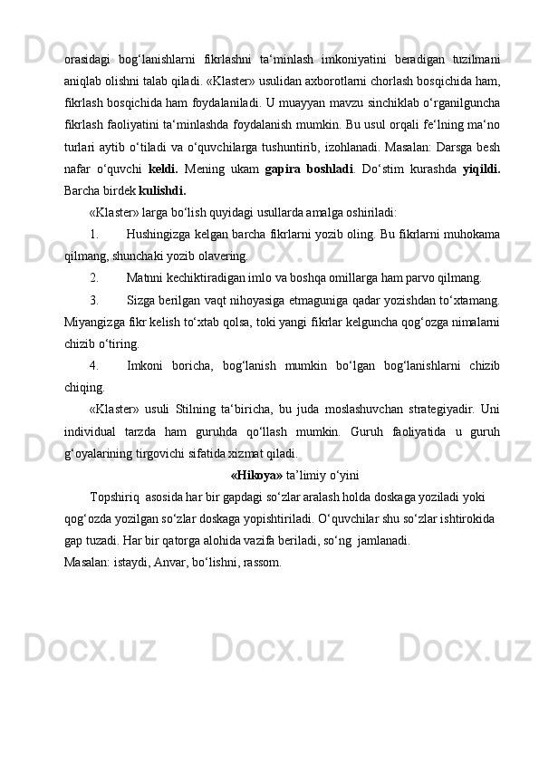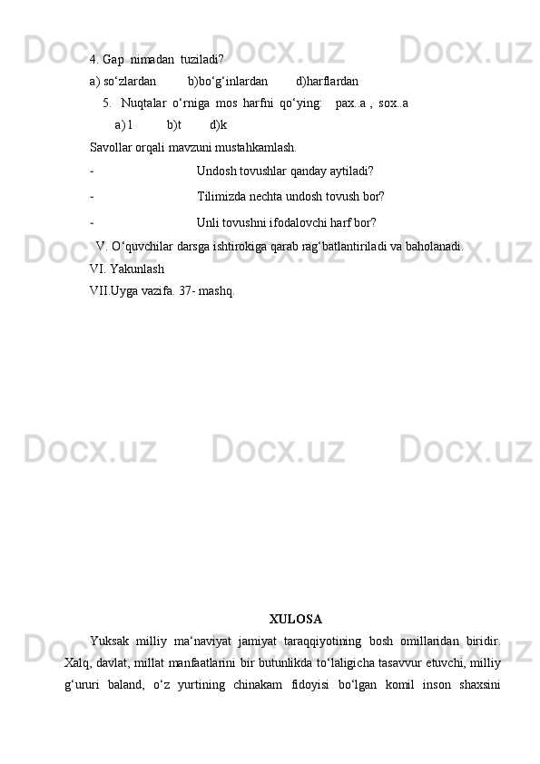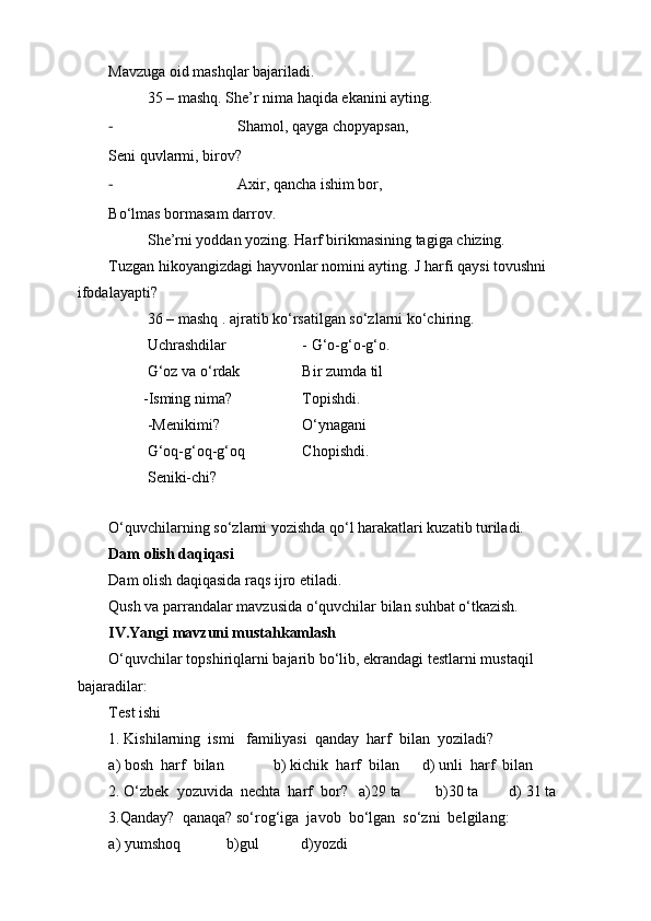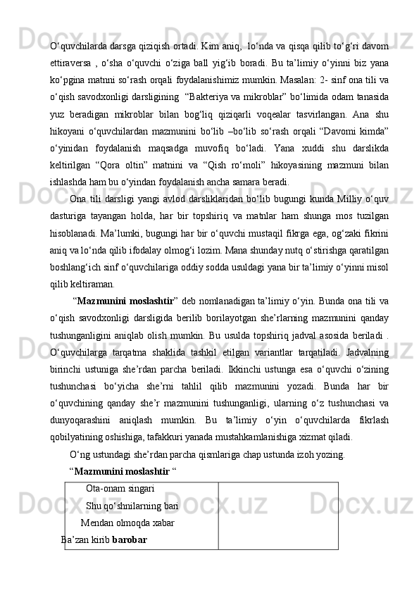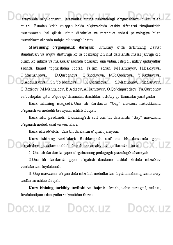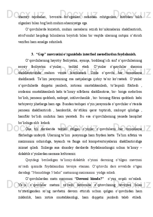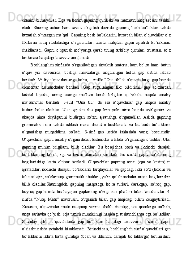 1-sinfda “Gap” mavzusini o’rganish metodikasi