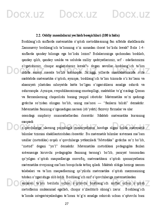 100 ichida vaqt masofa va tezlikka doir masalalar yechishga oʻrgatish metodikasi