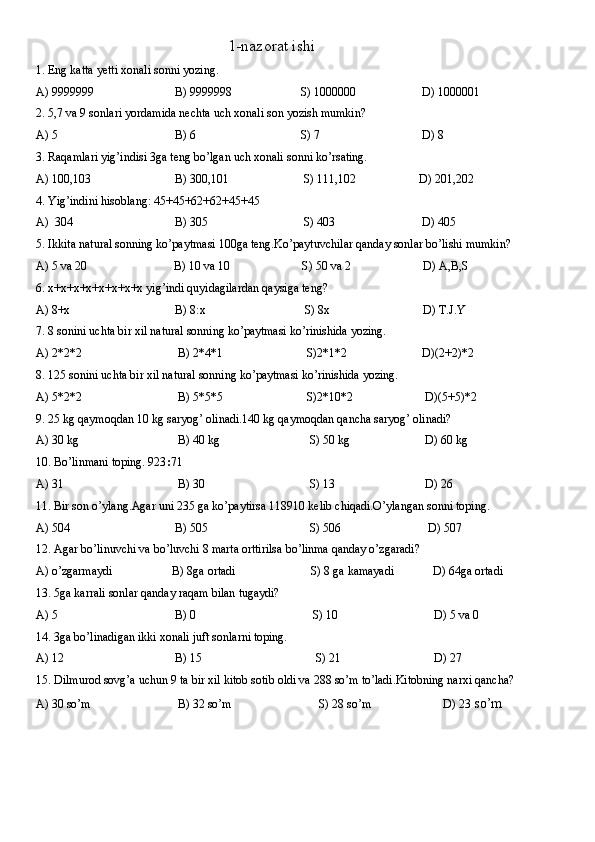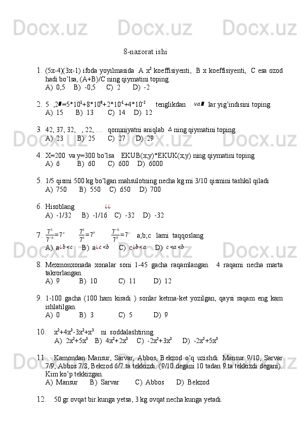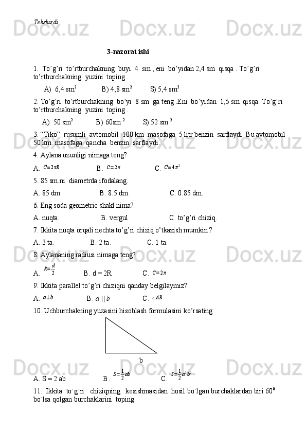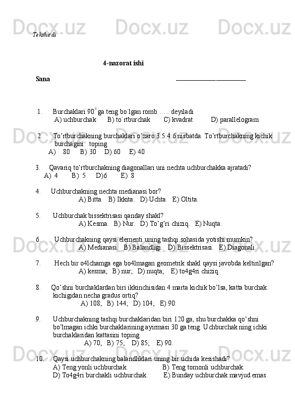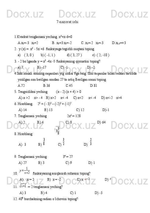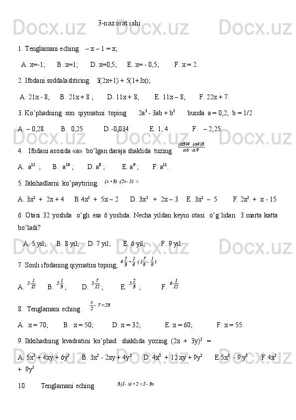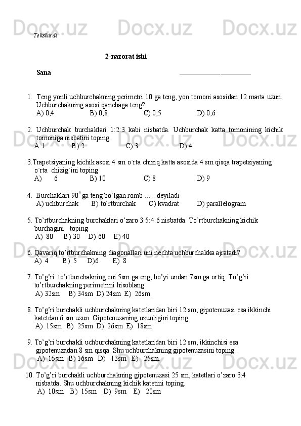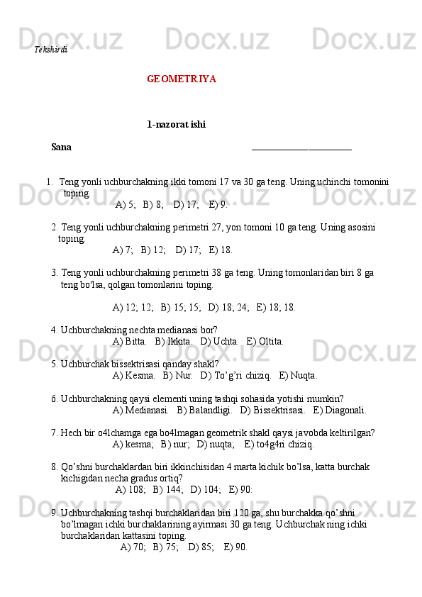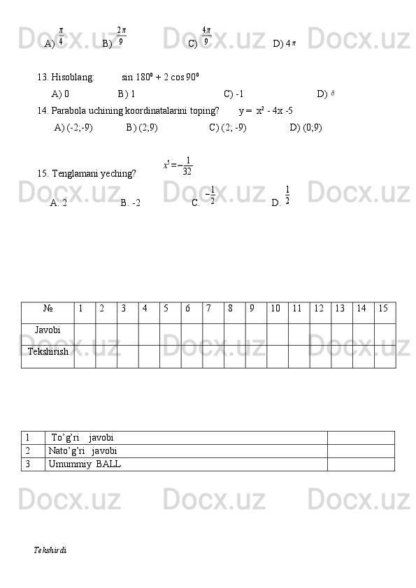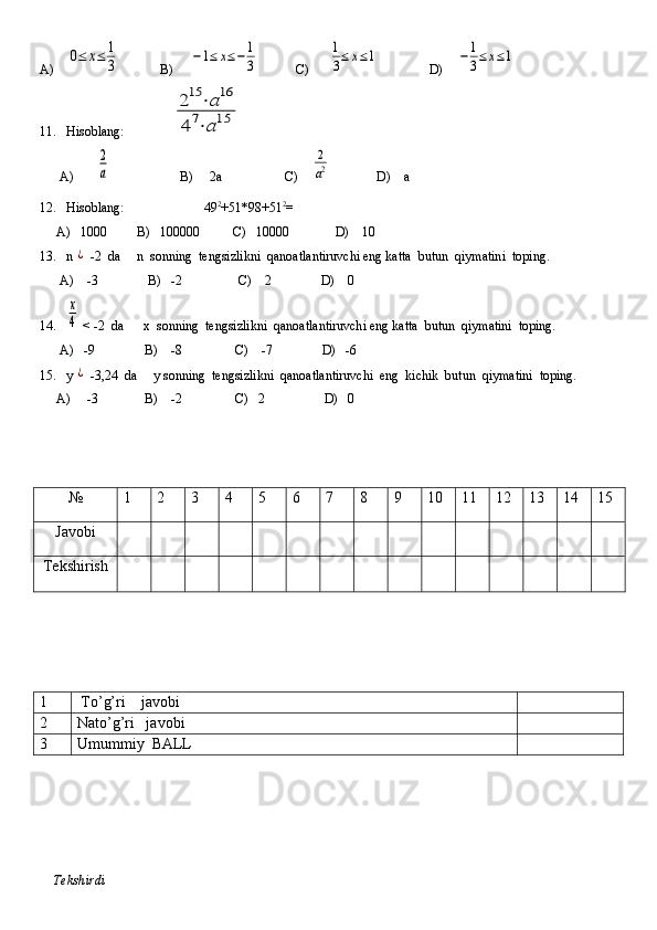 11-sinf algebra va geometriya test daftar 2025