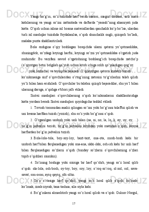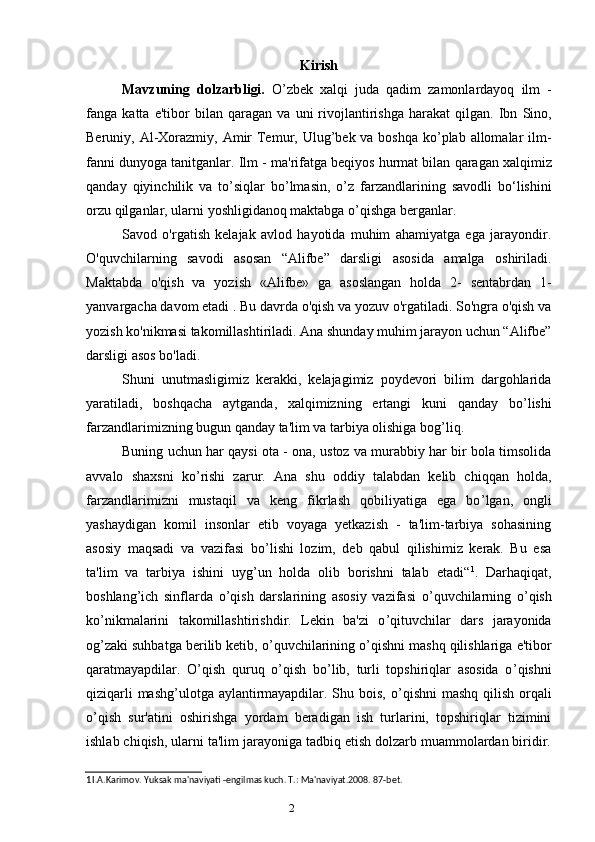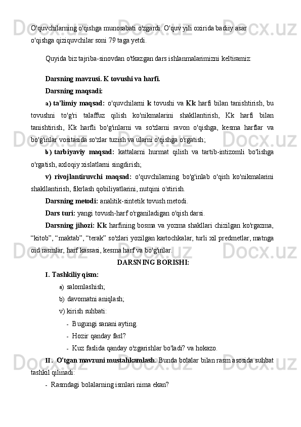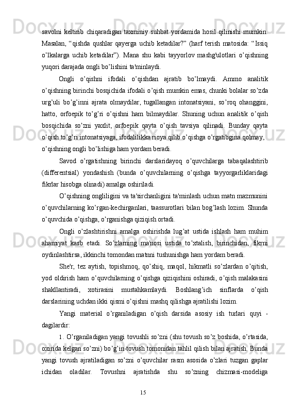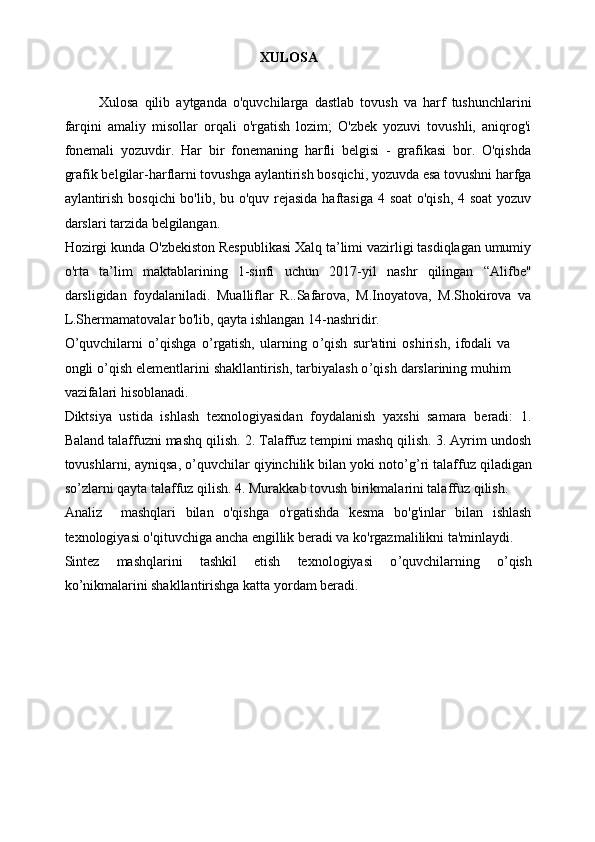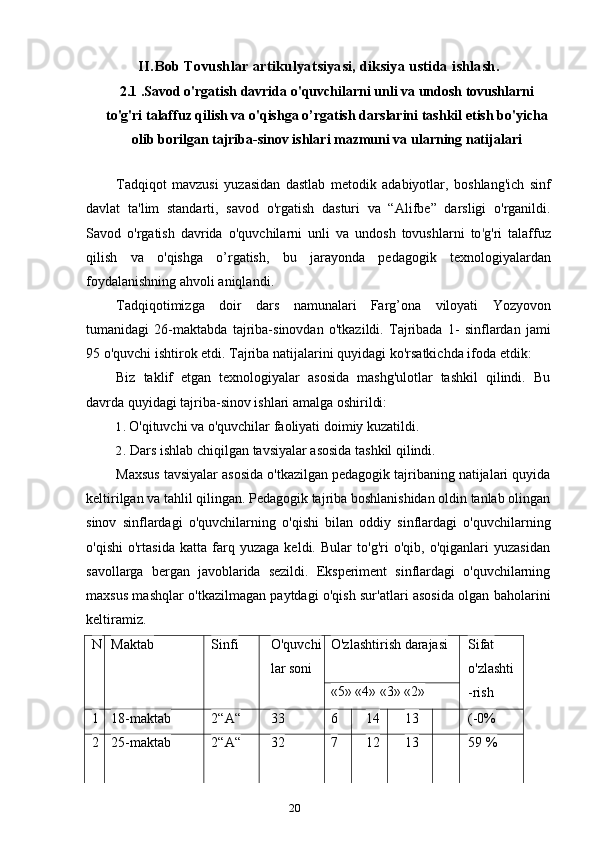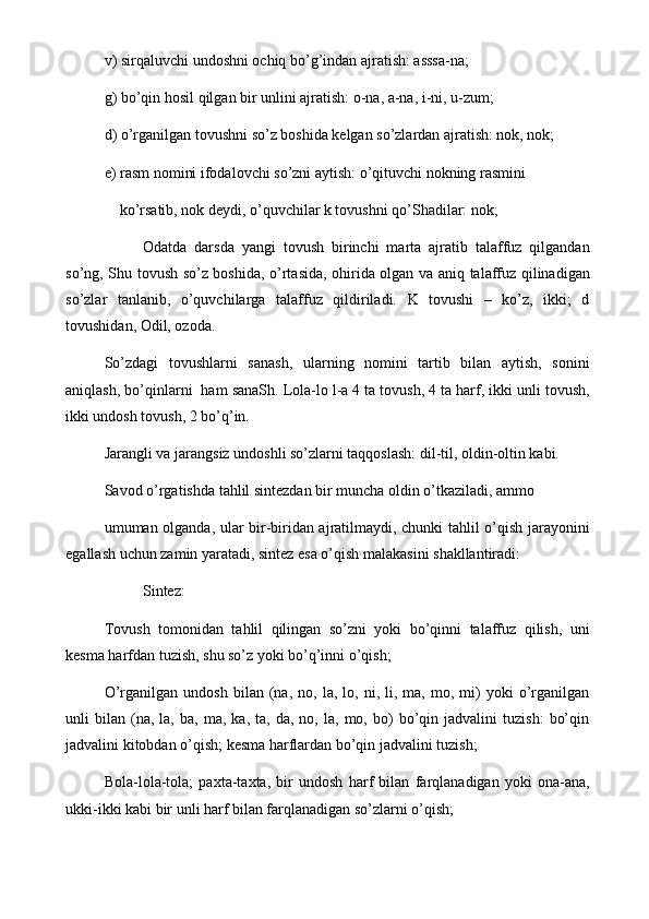 2-SINF ONA TILI DARSLARIDAUNLI VA UNDOSH TOVUSHLARNI O’RGANISH USULLARI