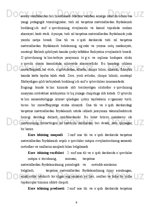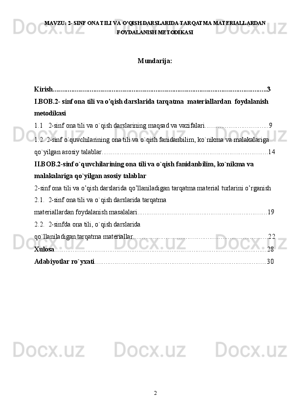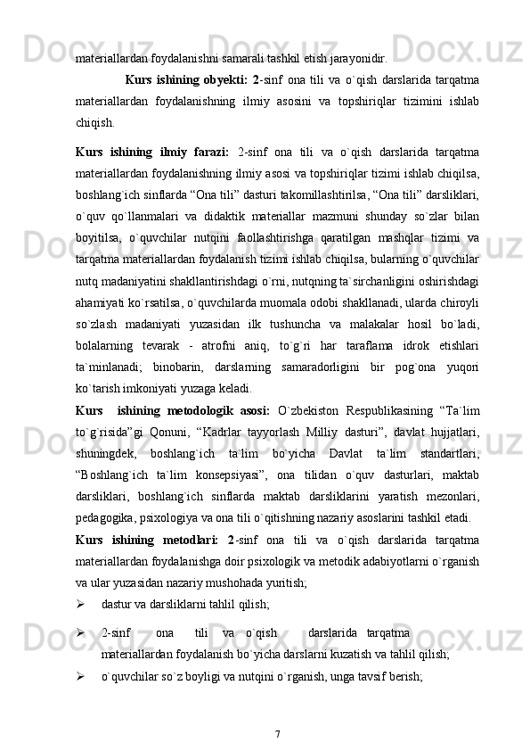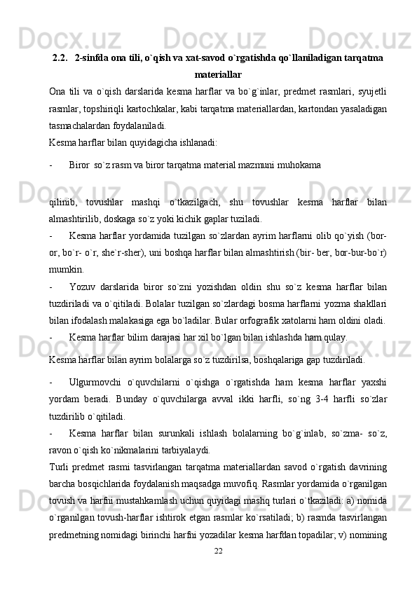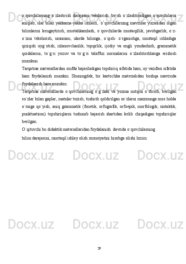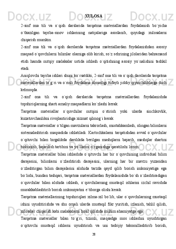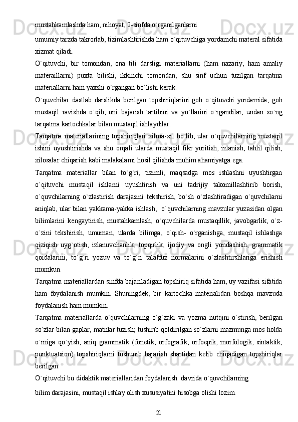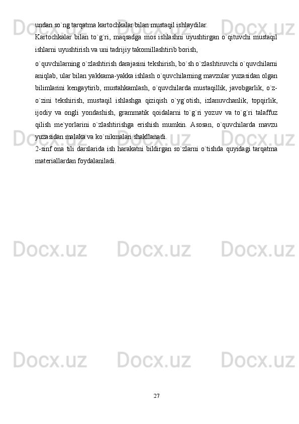 2- sinf ona tili va o'qish darslarida tarqatma materiallardan foydalanish metodikasi