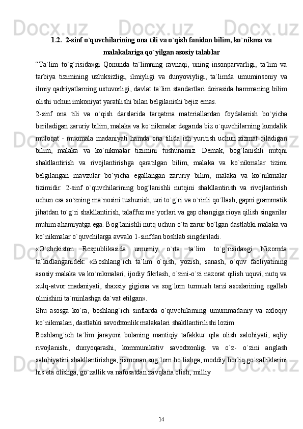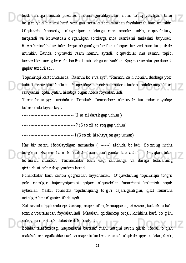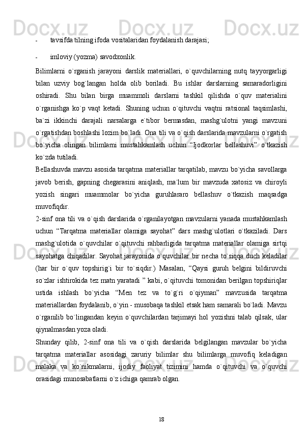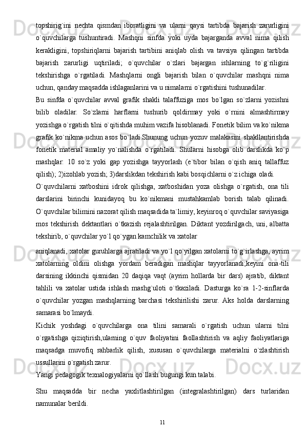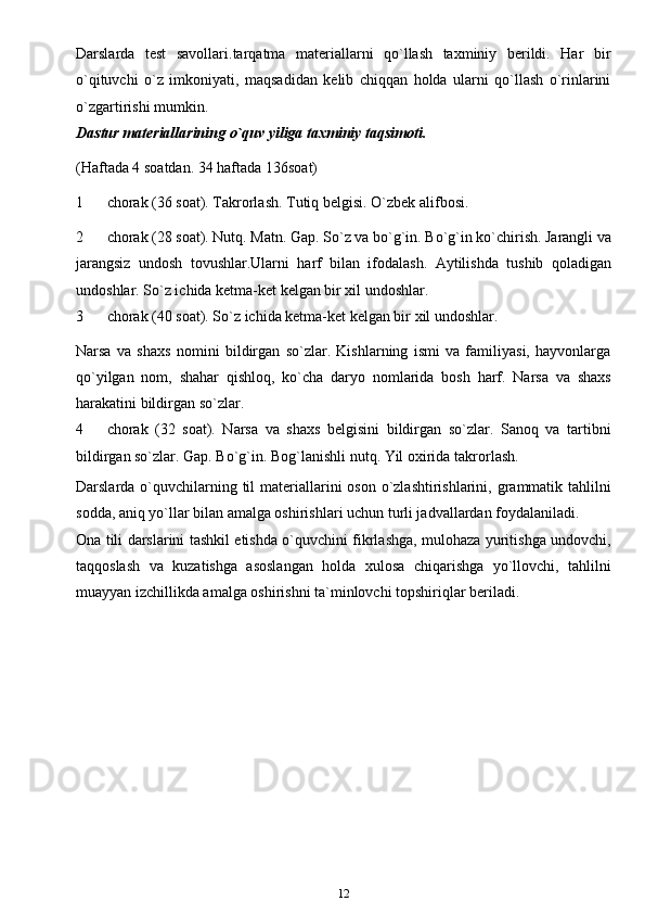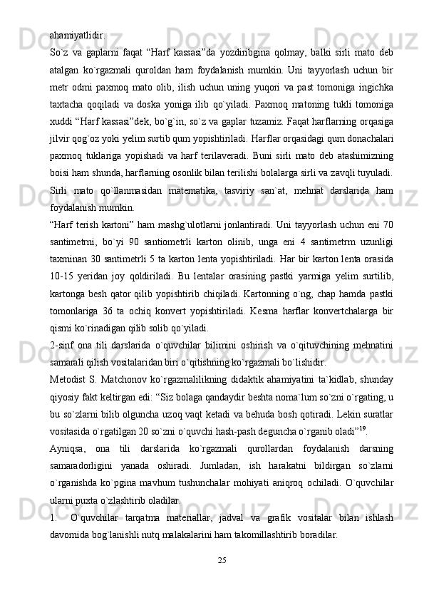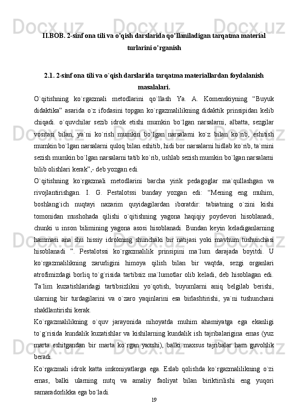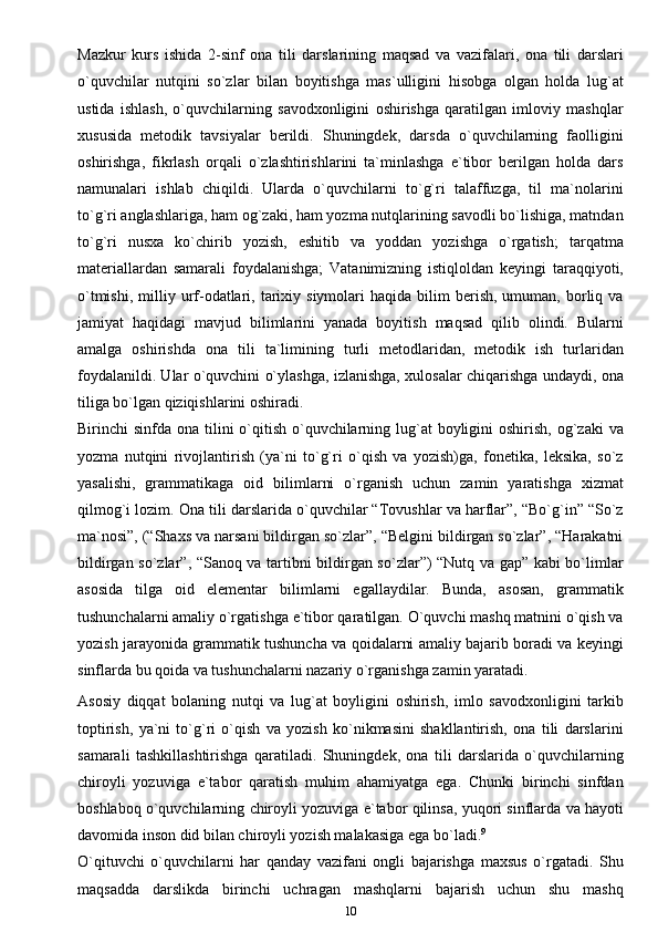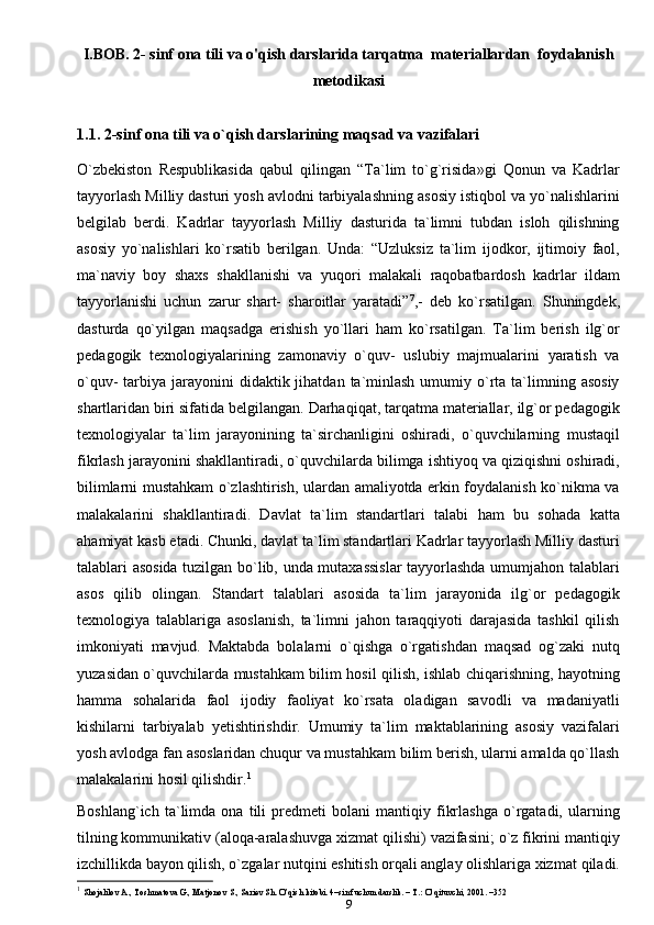 2- sinf ona tili va o'qish darslarida tarqatma materiallardan foydalanish metodikasi