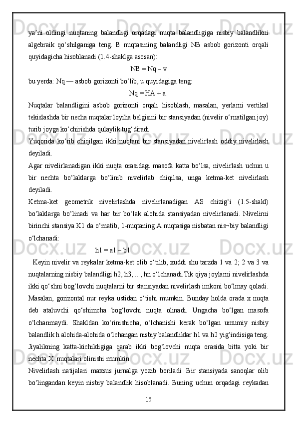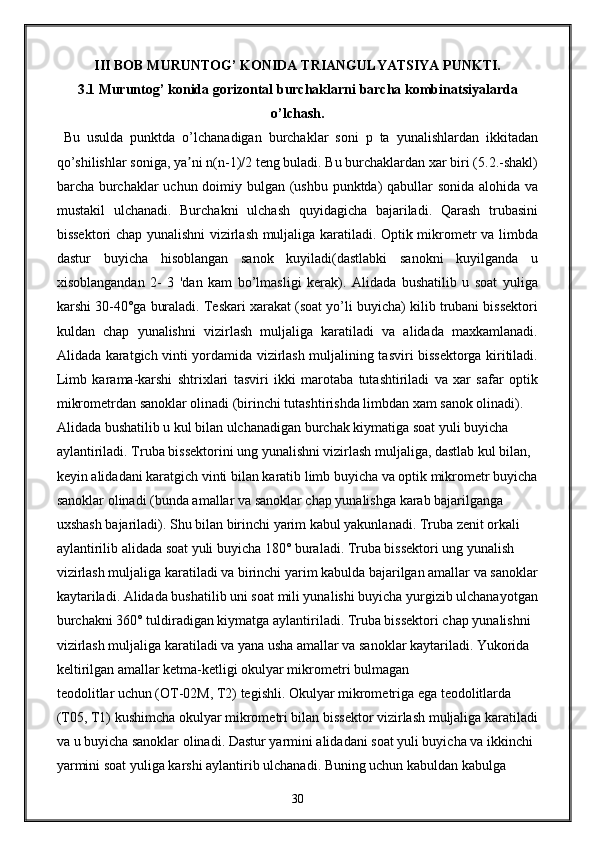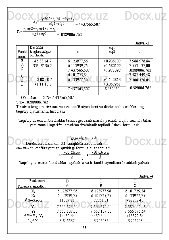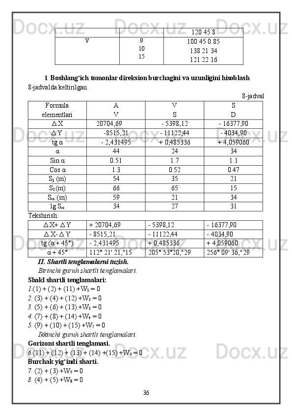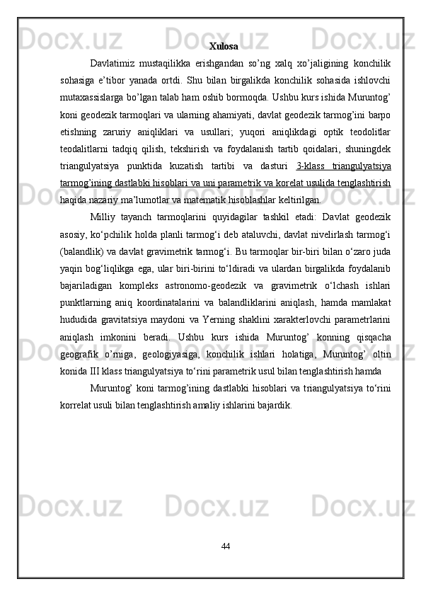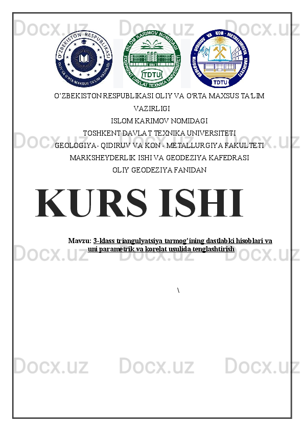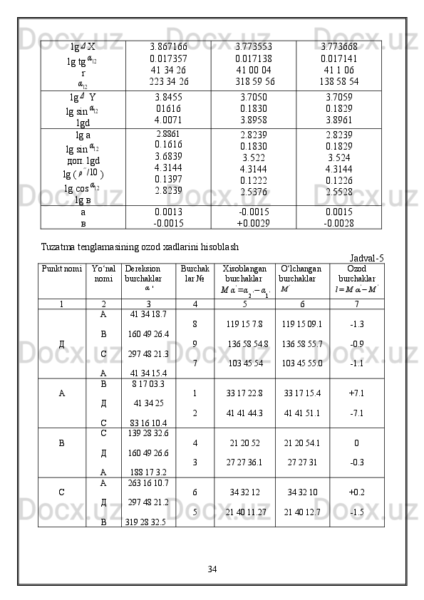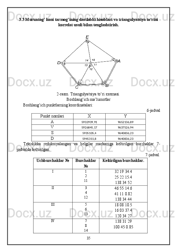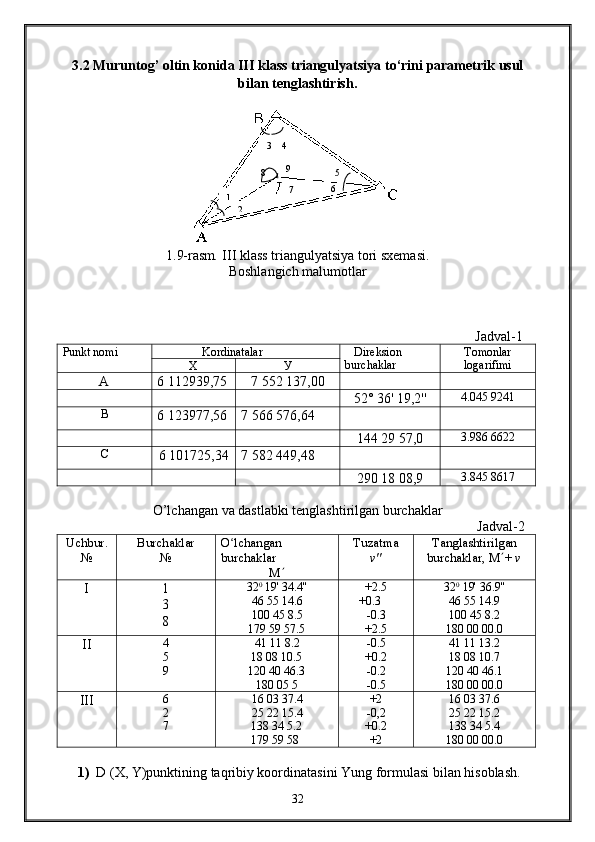 3-klass triangulyatsiya tarmog’ining dastlabki hisoblari va uni parametrik va korelat usulida tenglashtirish