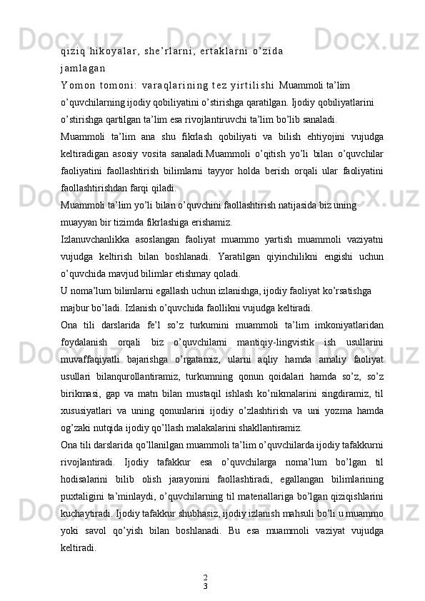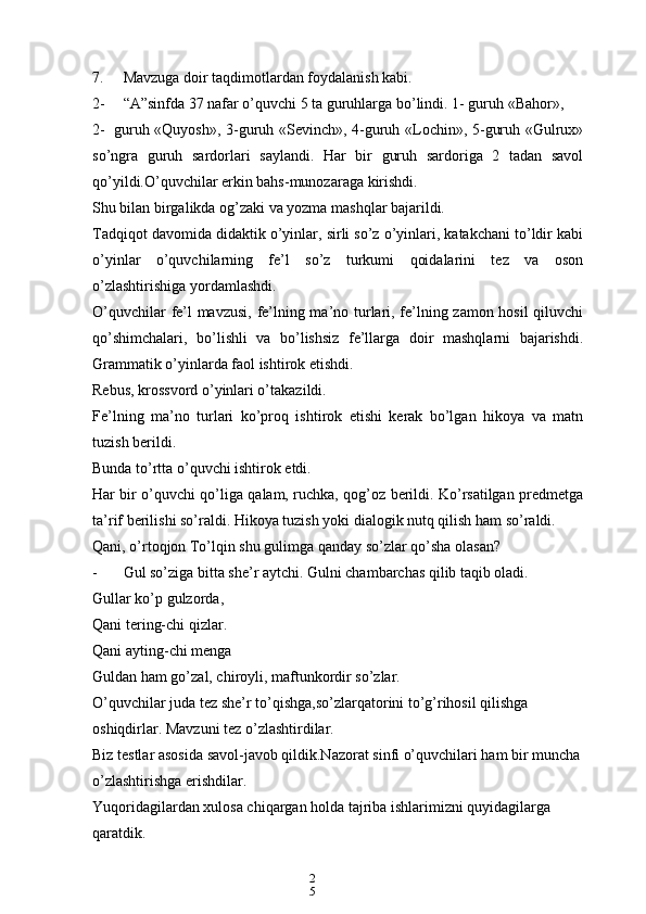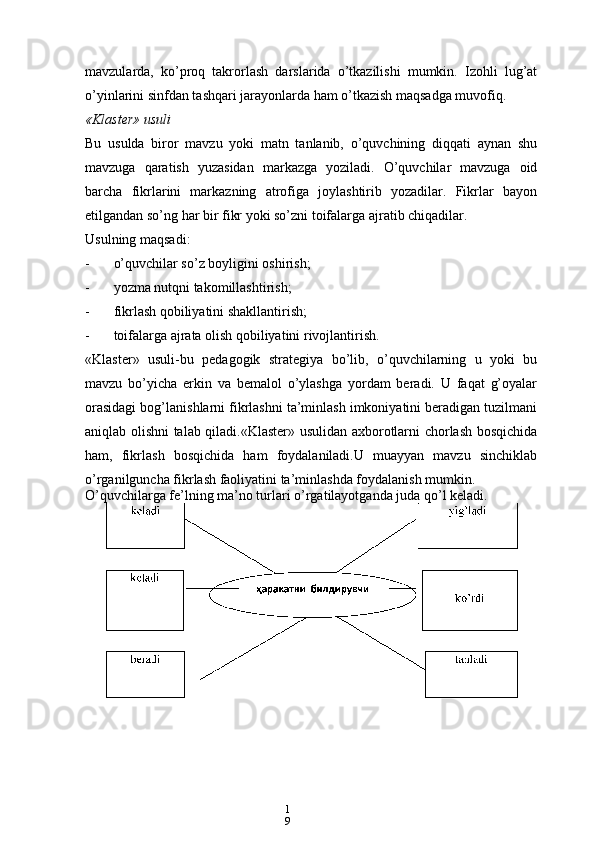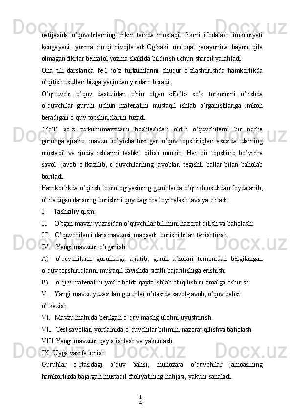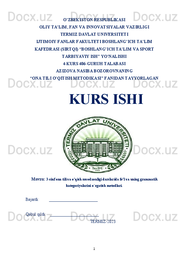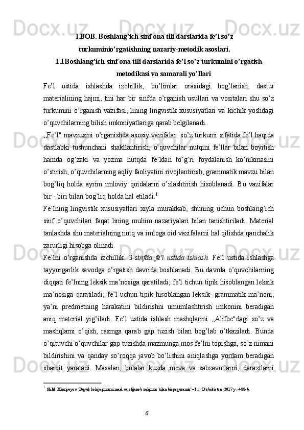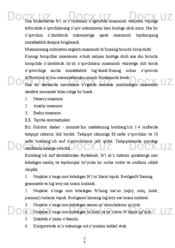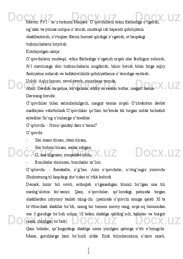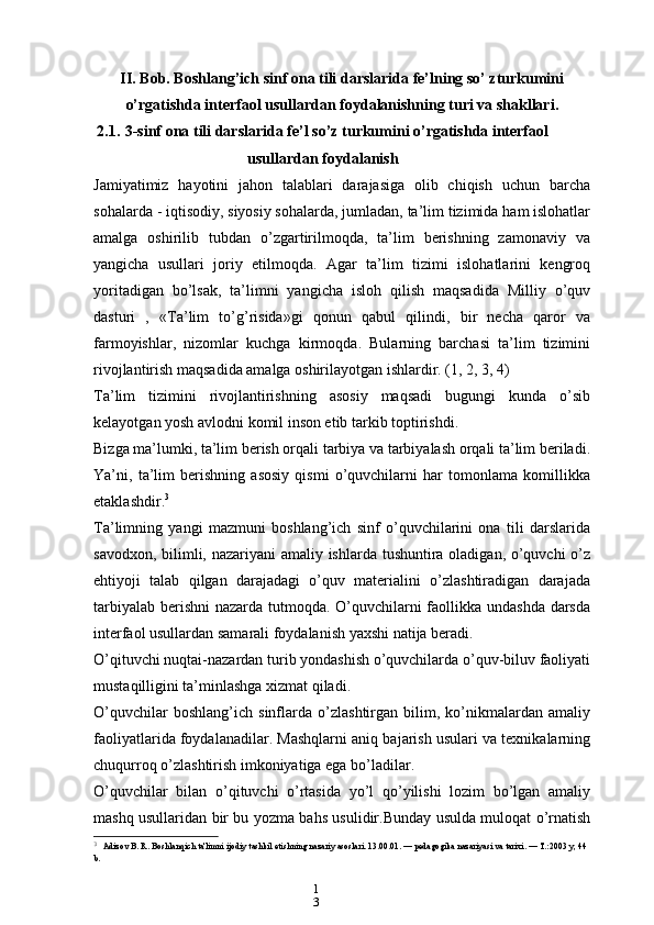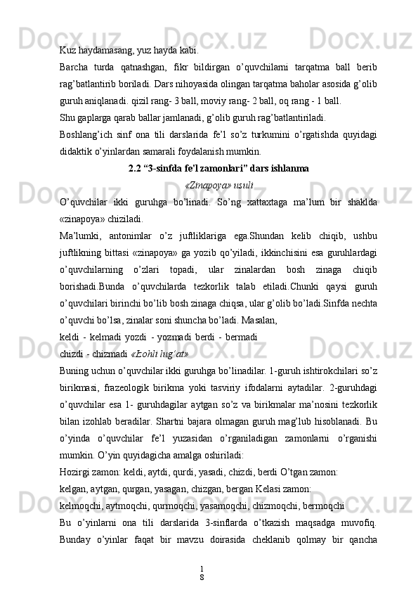 3-sinf ona tili va o’qish savodxonligi darslarida fe’l va uning grammatik kategoriyalarini o`rgatish metodlari