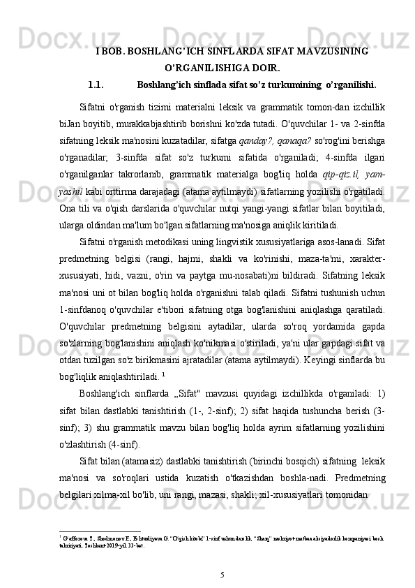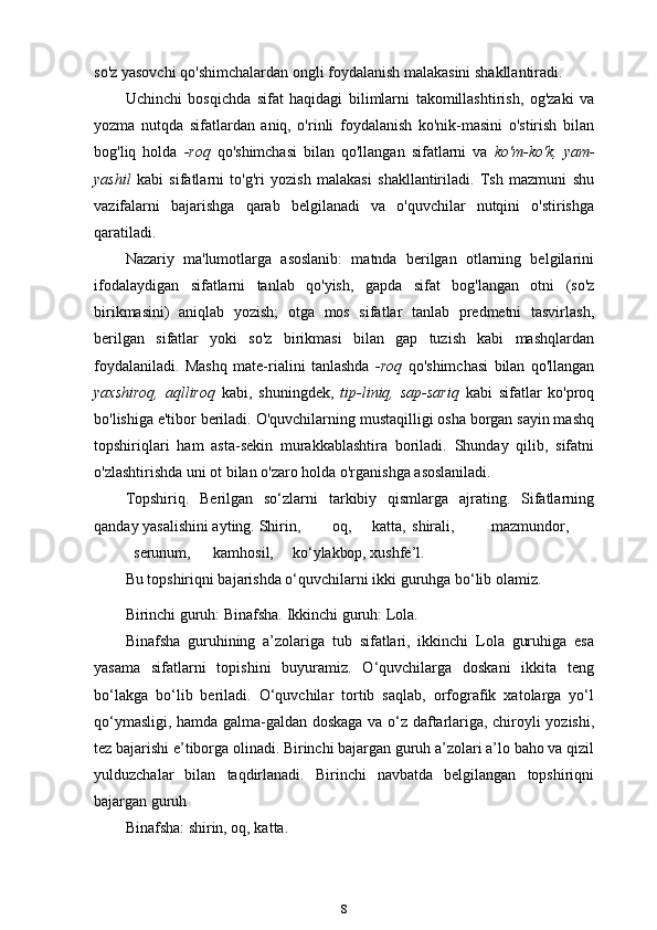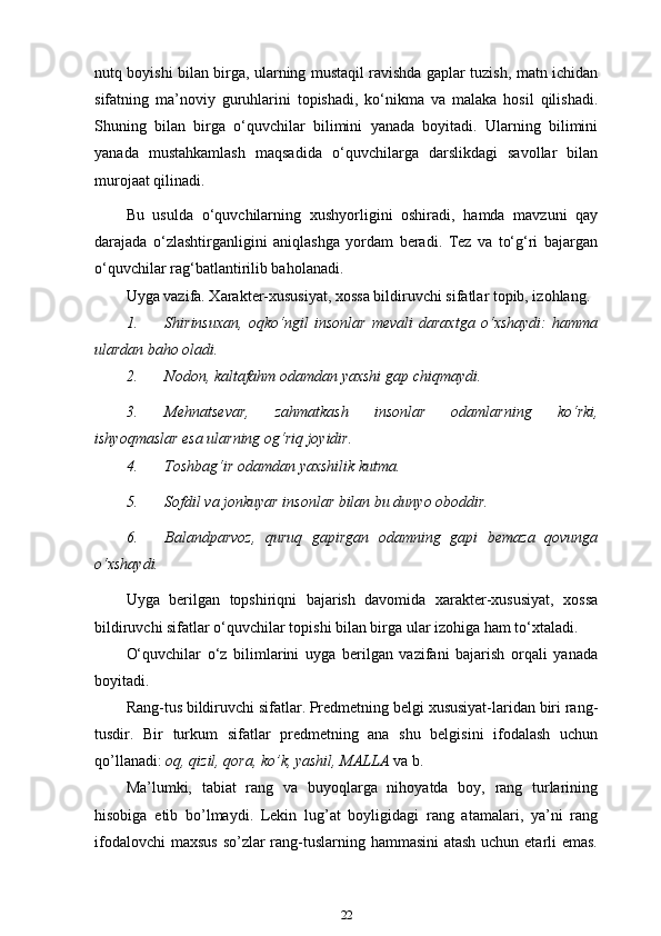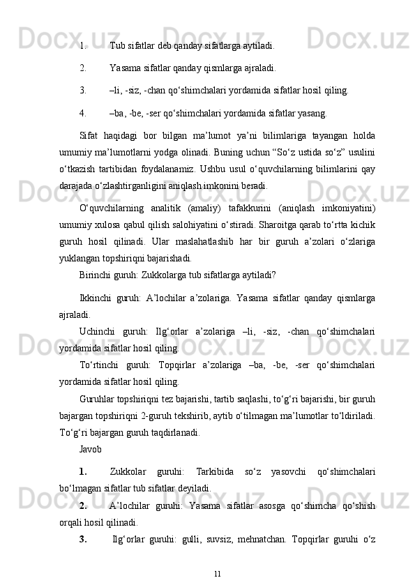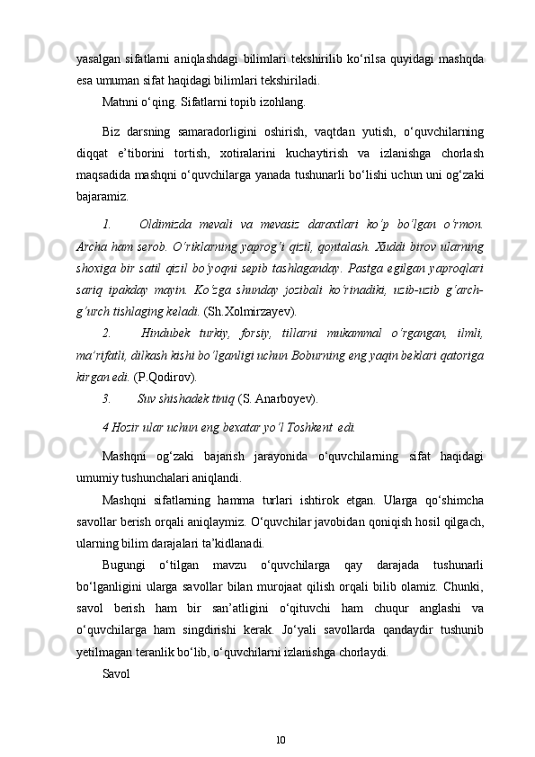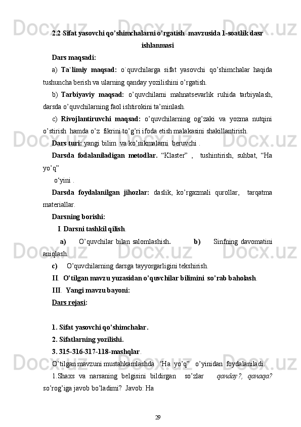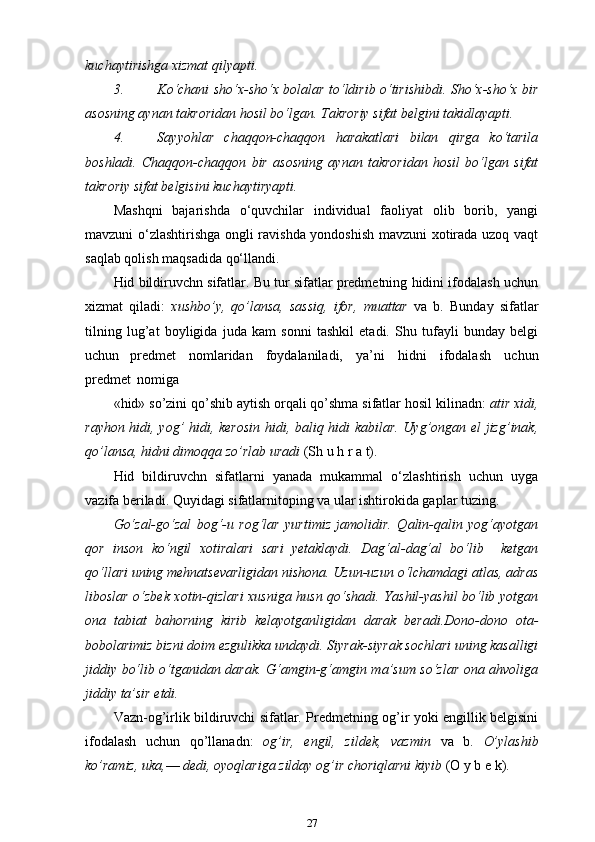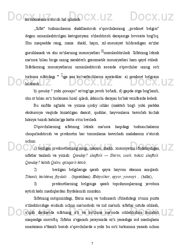 3-sinf ona tili va o’qish savodxonligi darslarida “Sifat” so’z turkumini o’rgatish metodikasi