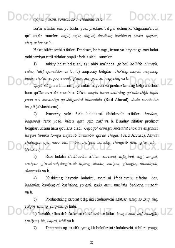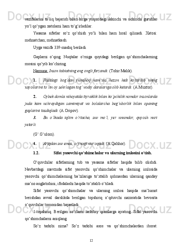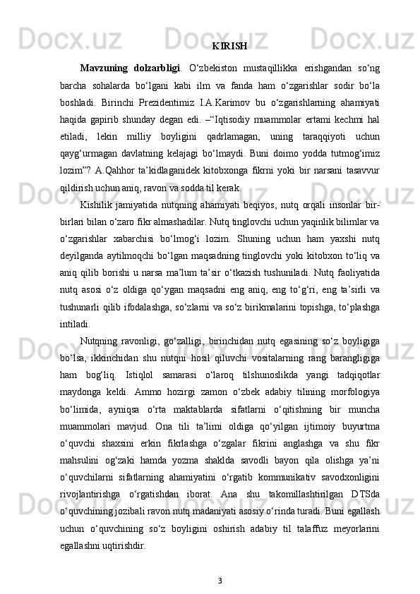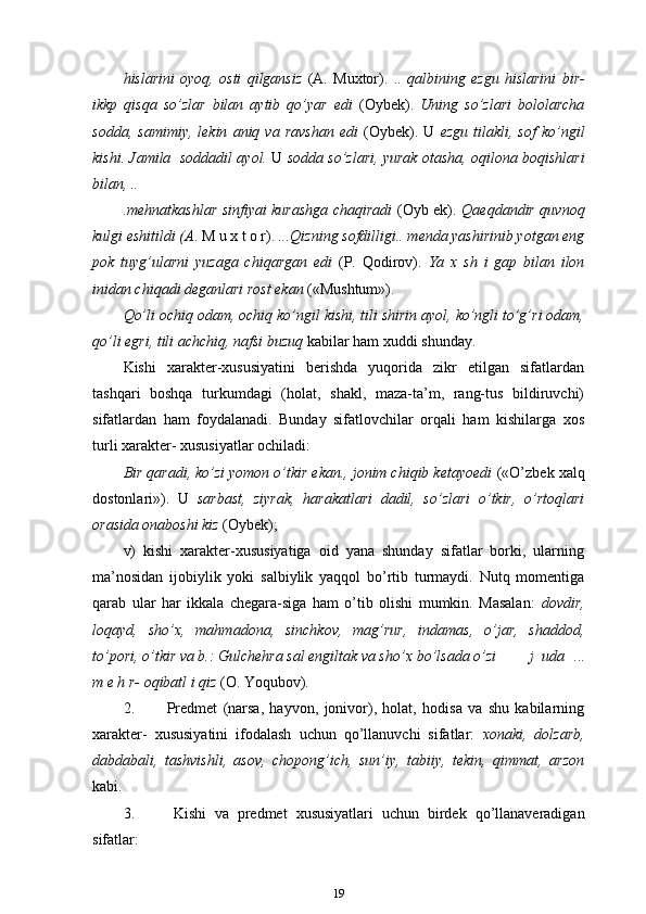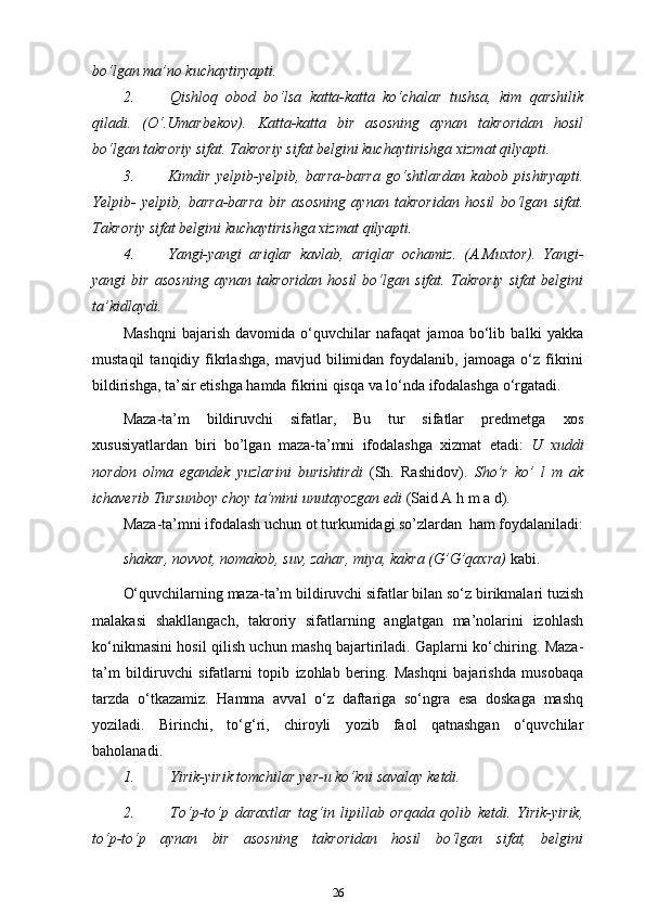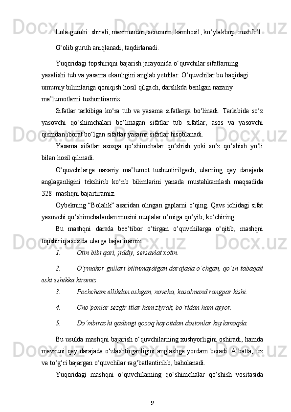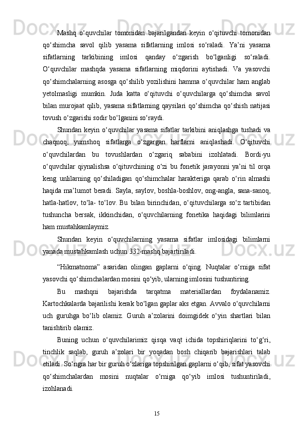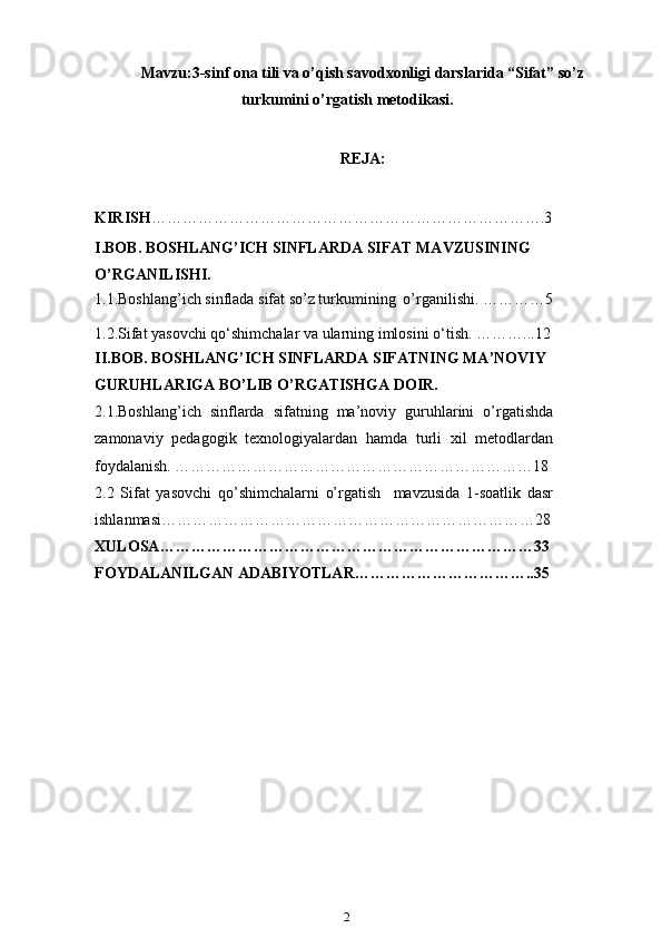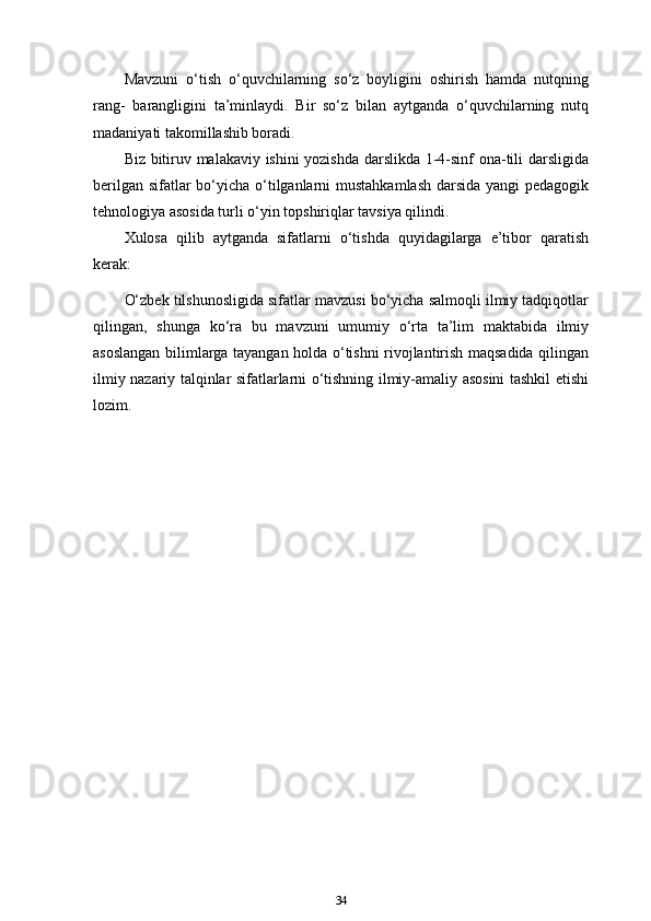3-sinf ona tili va o’qish savodxonligi darslarida “Sifat” so’z turkumini o’rgatish metodikasi