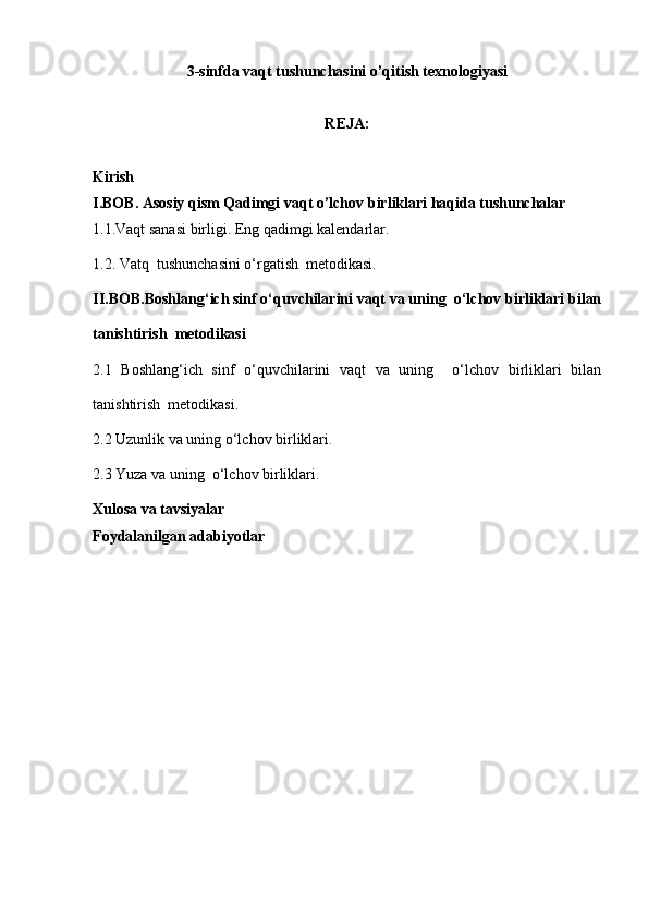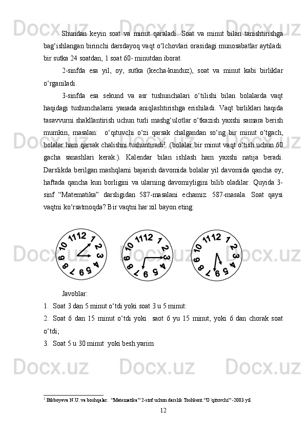 3-sinfda vaqt tushunchasini o’qitish texnologiyasi