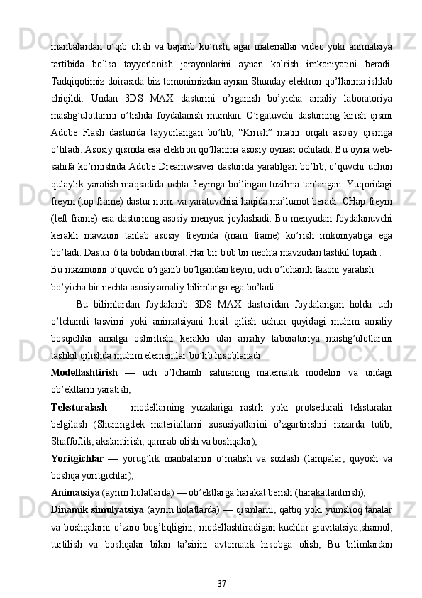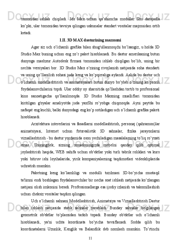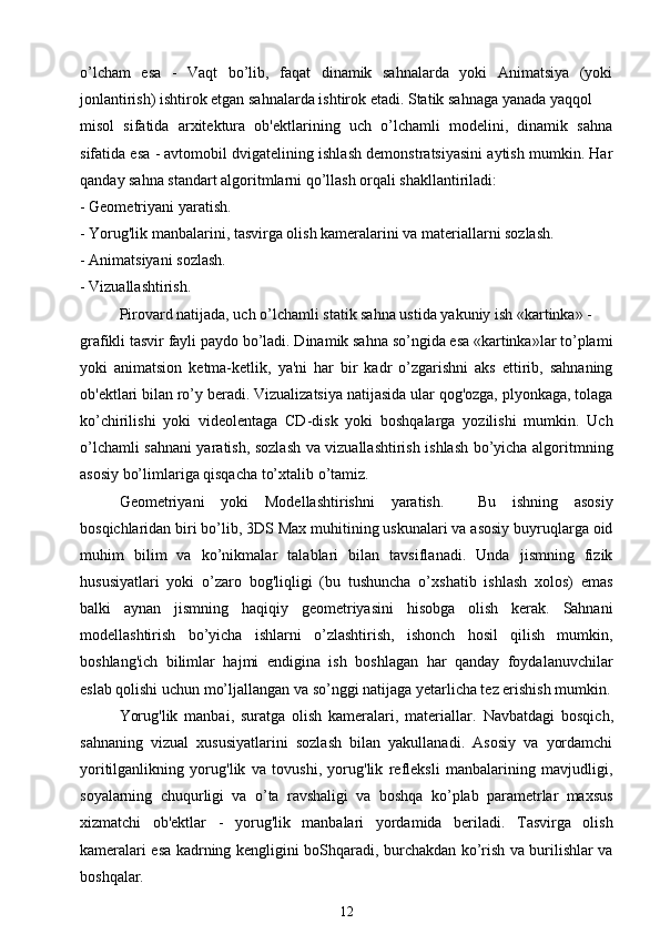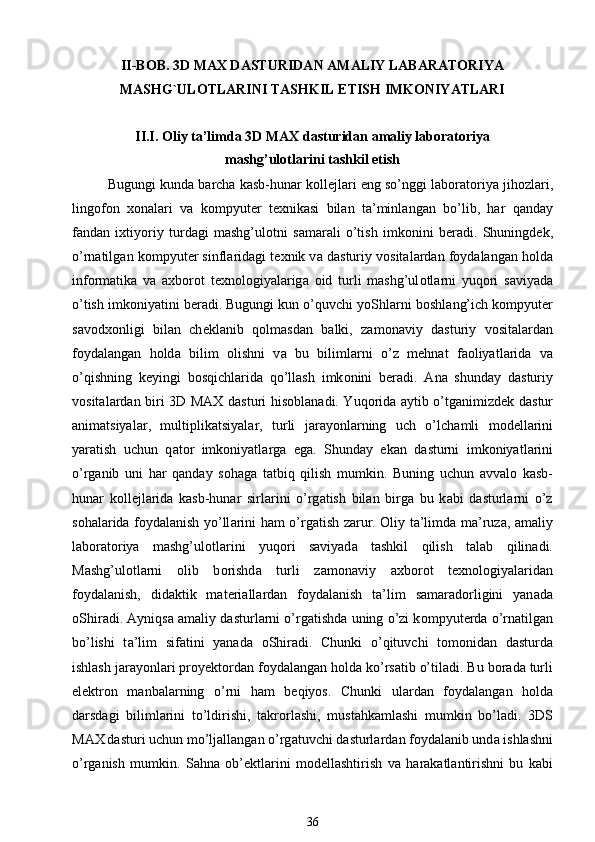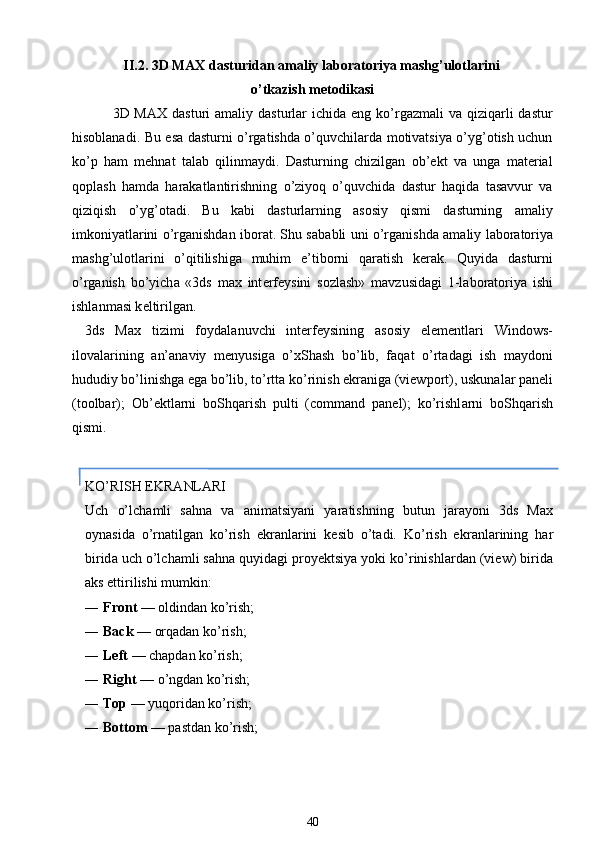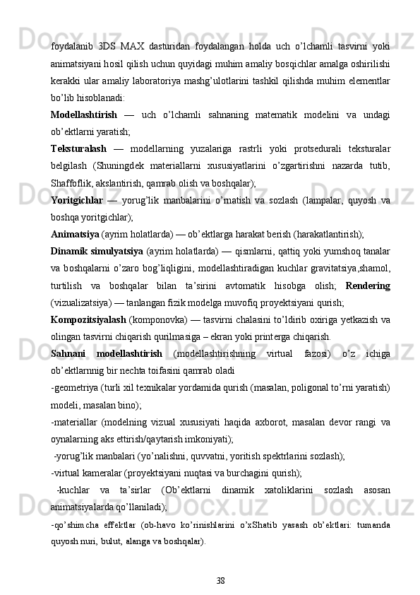 3DS-MAX dasturiy paketi va uning imkoniyatlari amaliy darslarda foydalanish