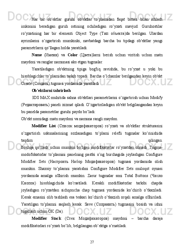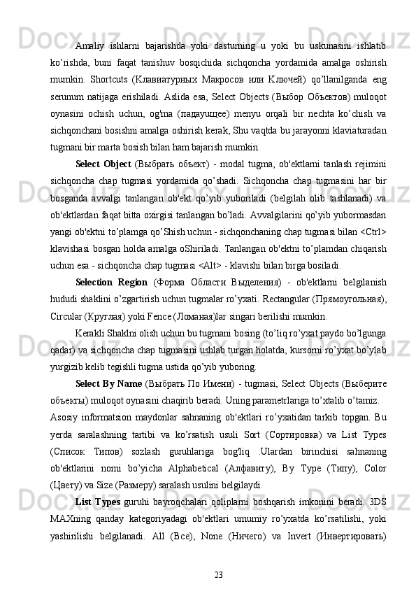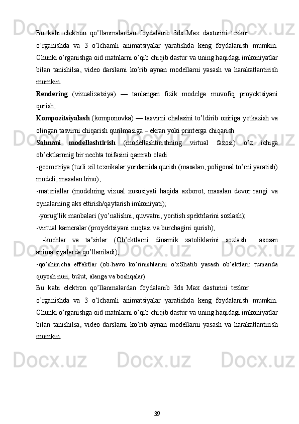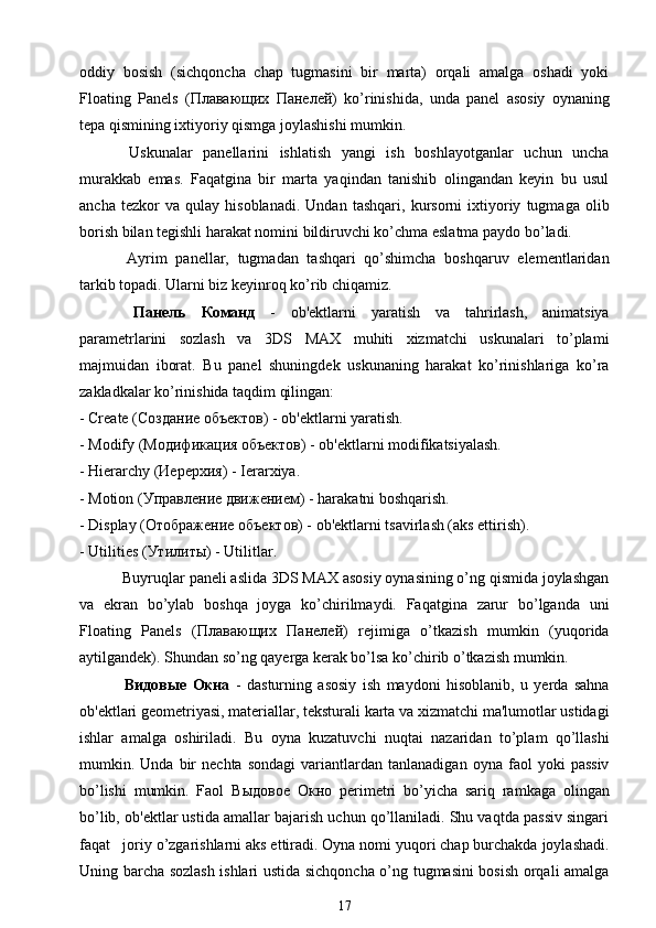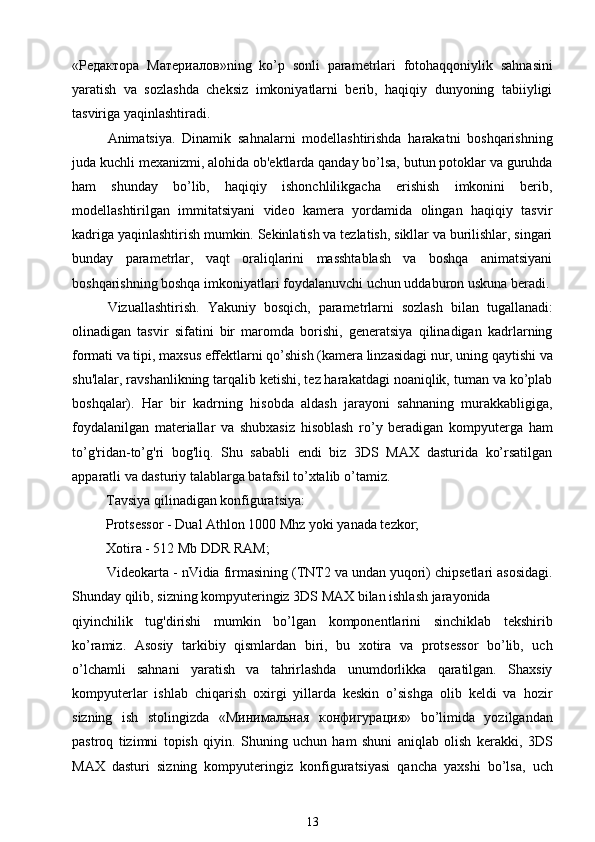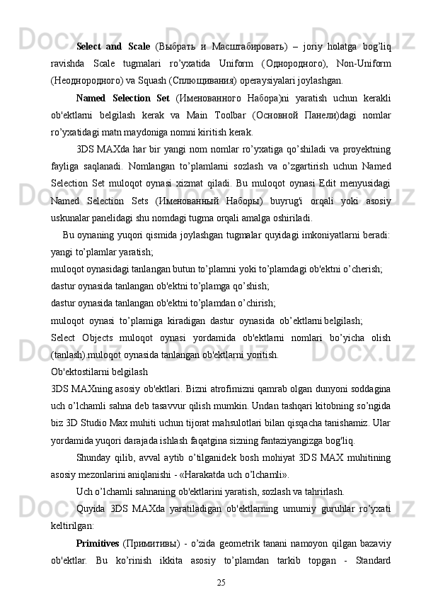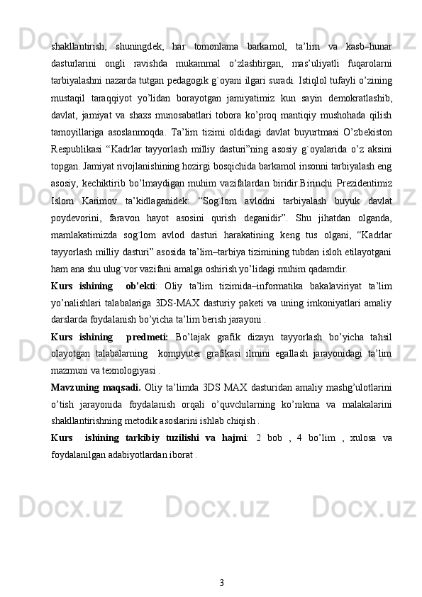 3DS-MAX dasturiy paketi va uning imkoniyatlari amaliy darslarda foydalanish
