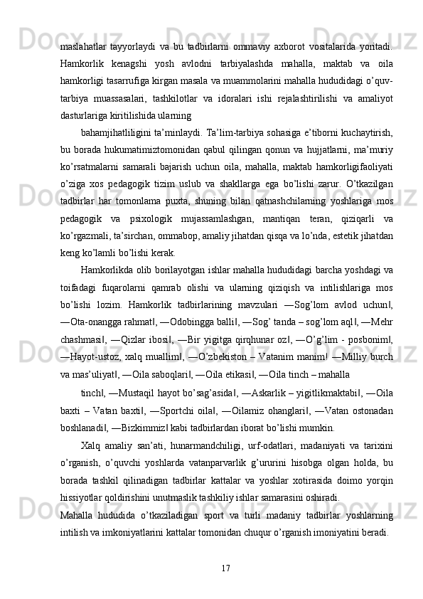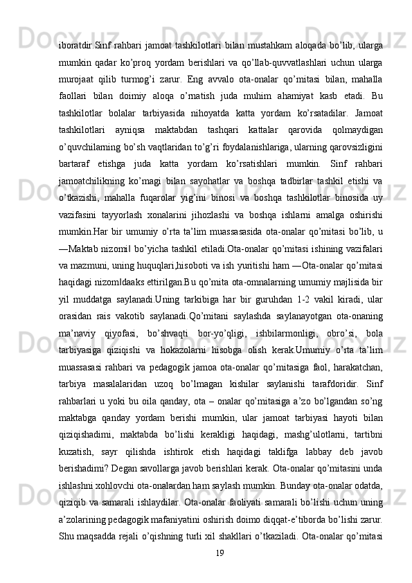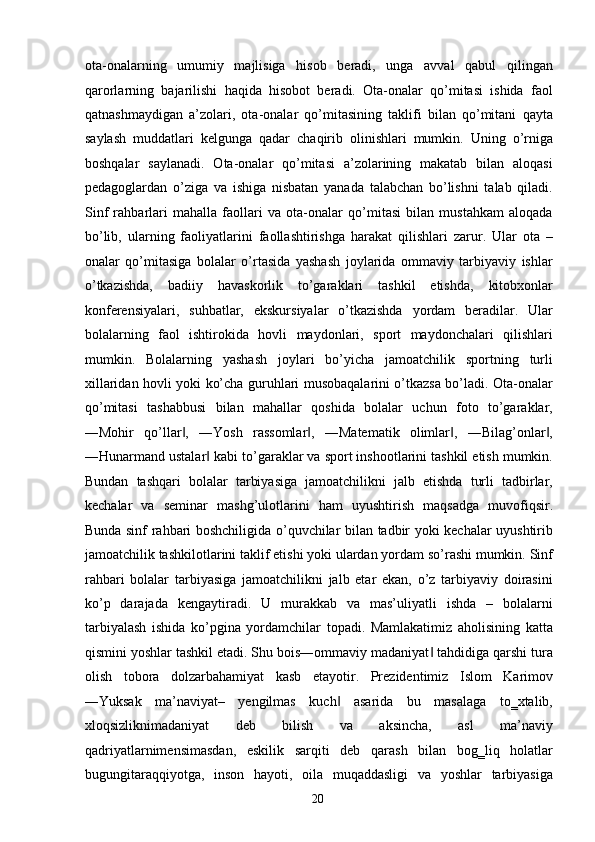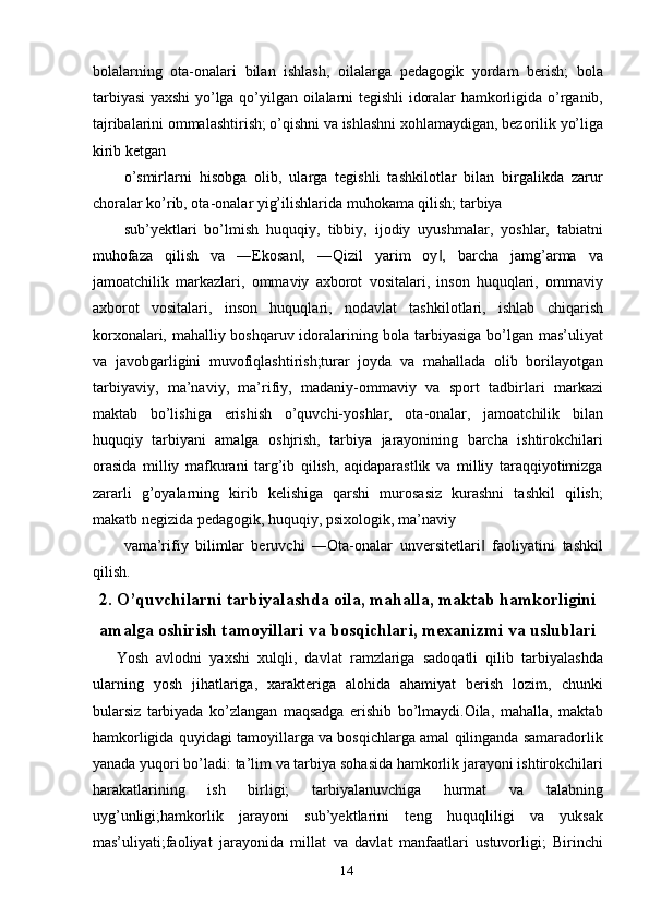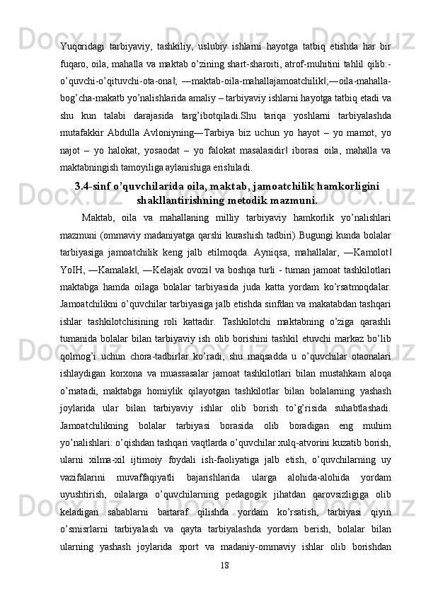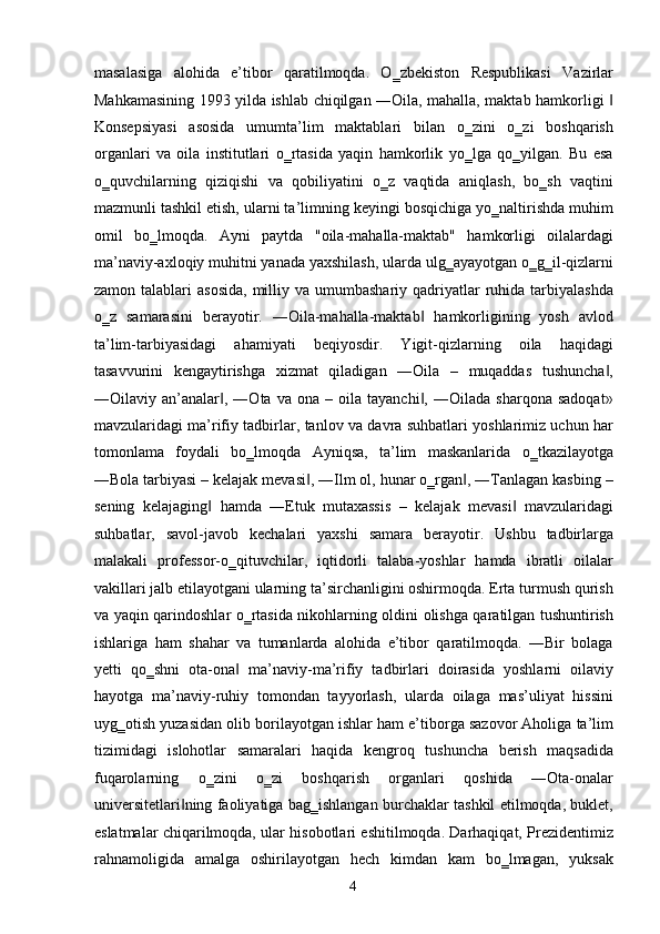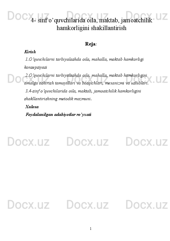 4- sinf o’quvchilarida oila, maktab, jamoatchilik hamkorligini shakillantirish