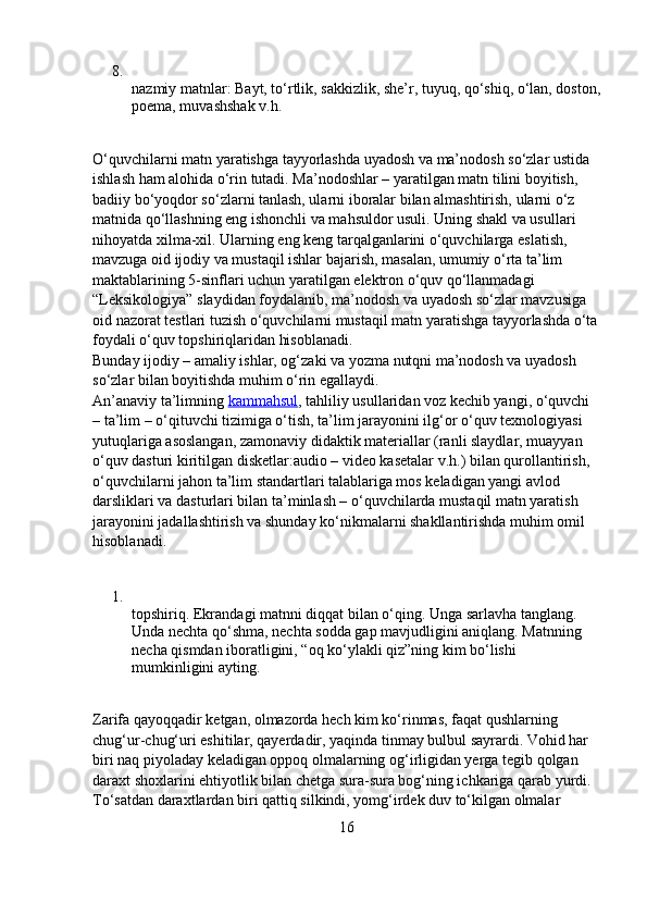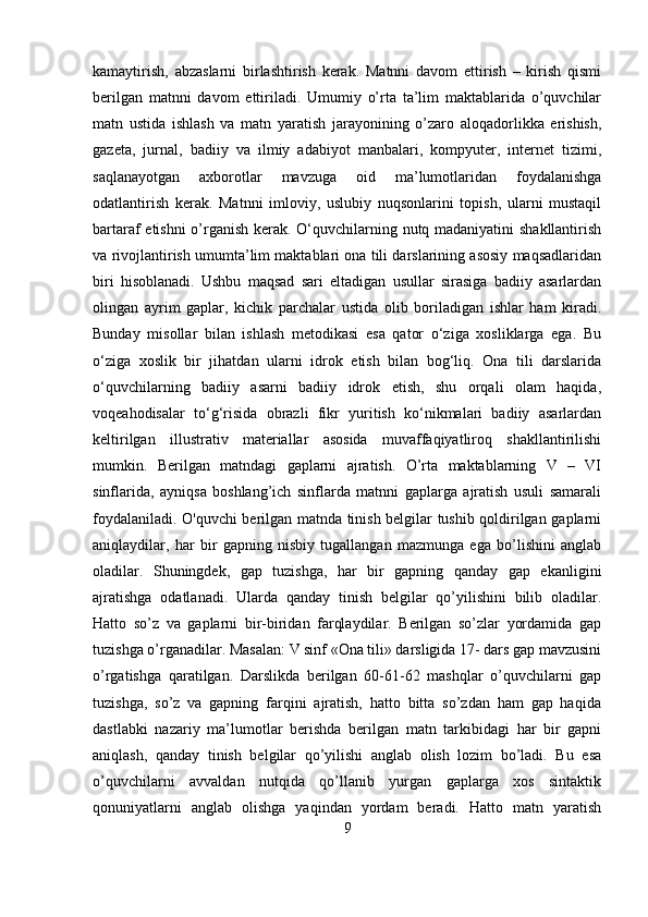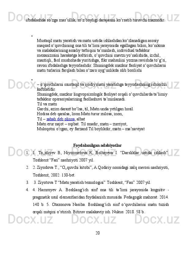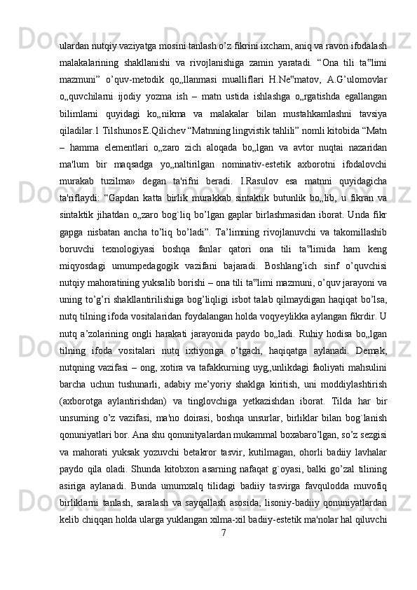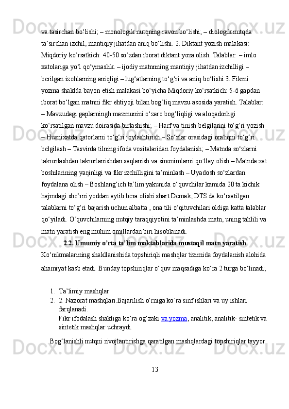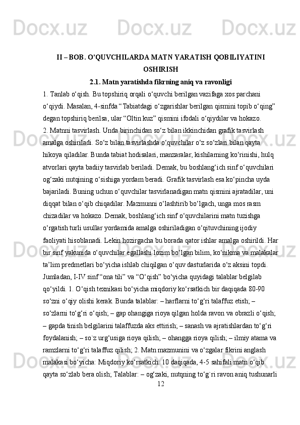 II – BOB. O’QUVCHILARDA MATN YARATISH QOBILIYATINI OSHIRISH