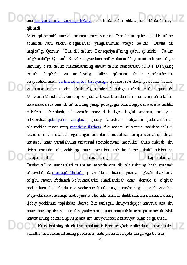 4-SINF ONA TILI DARSLARIDA MATN YARATISH
