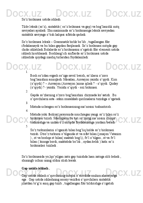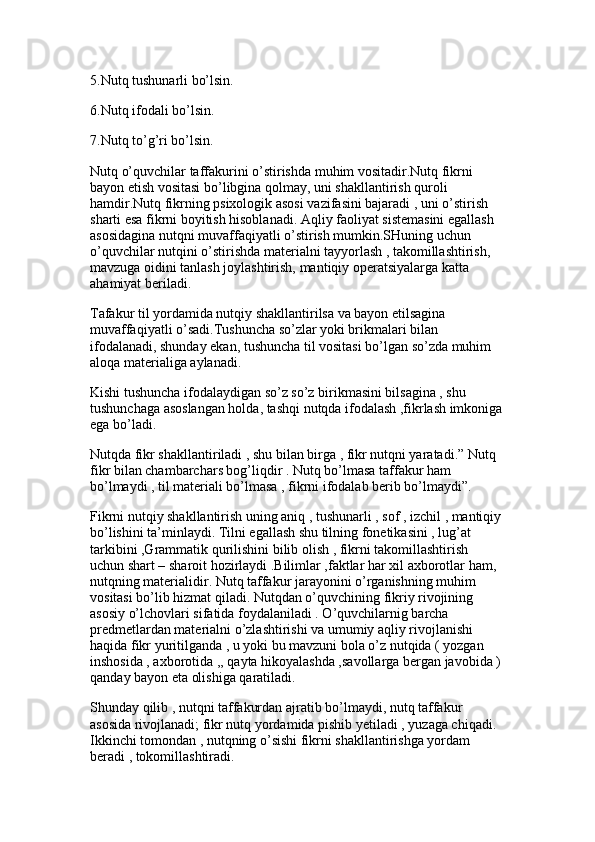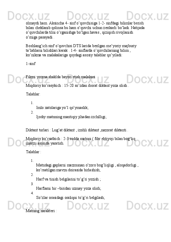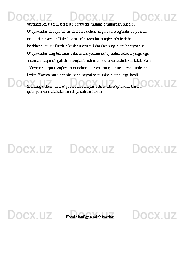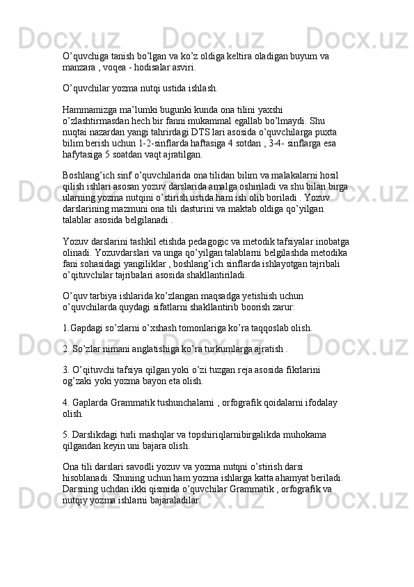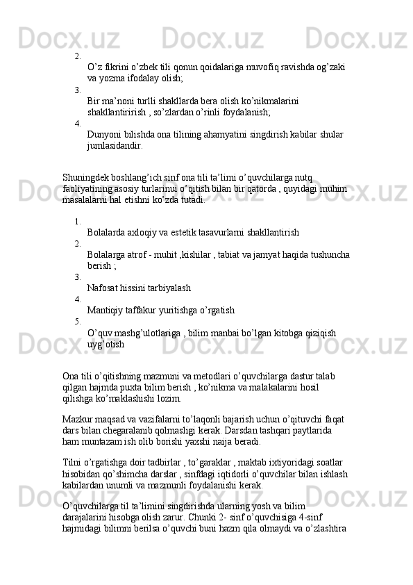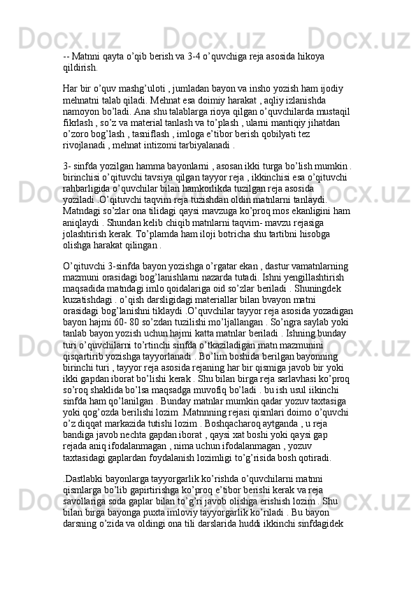 4-SINF ONA TILI DARSLARIDA NUTQ O’STIRISH