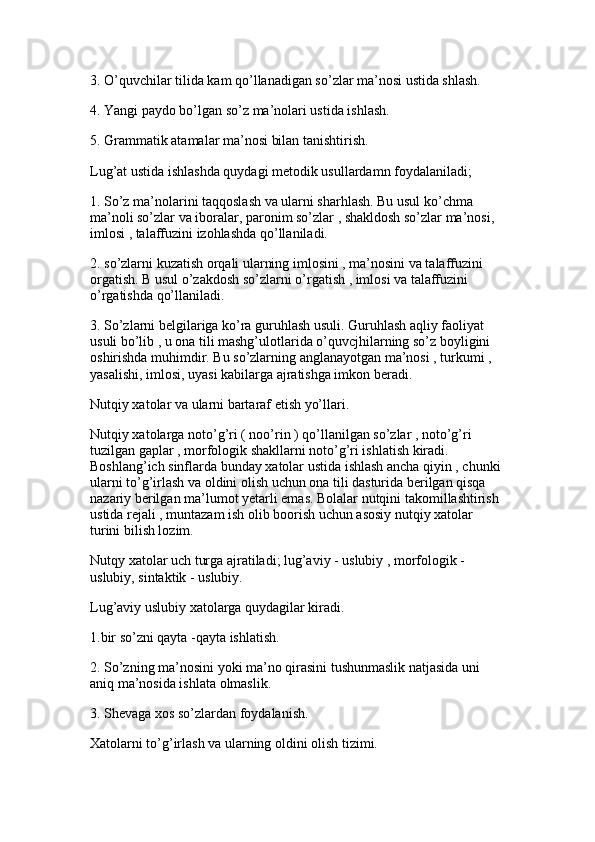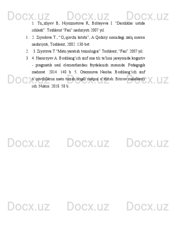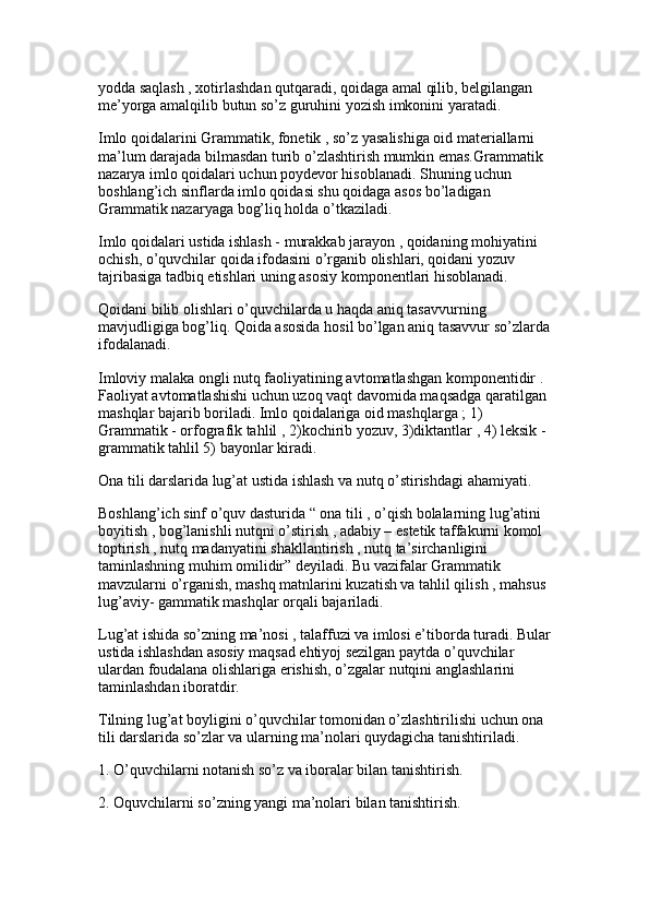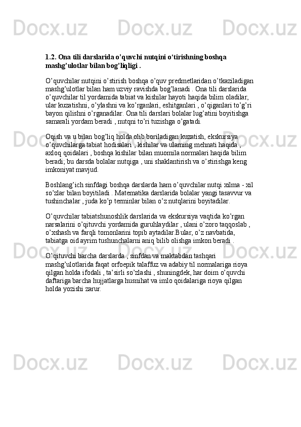 II – BOB. 4-SINF ONA TILI DARSLARIDA NUTQ O;STIRISH