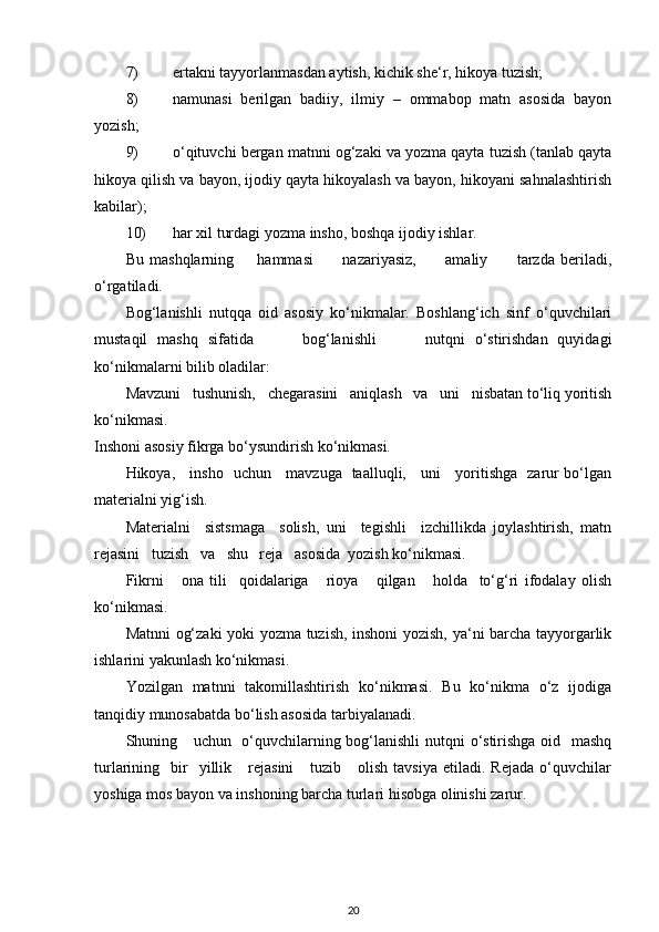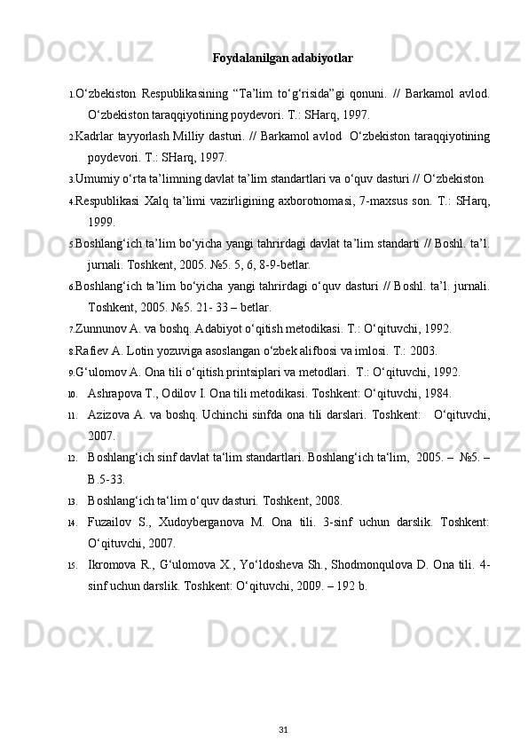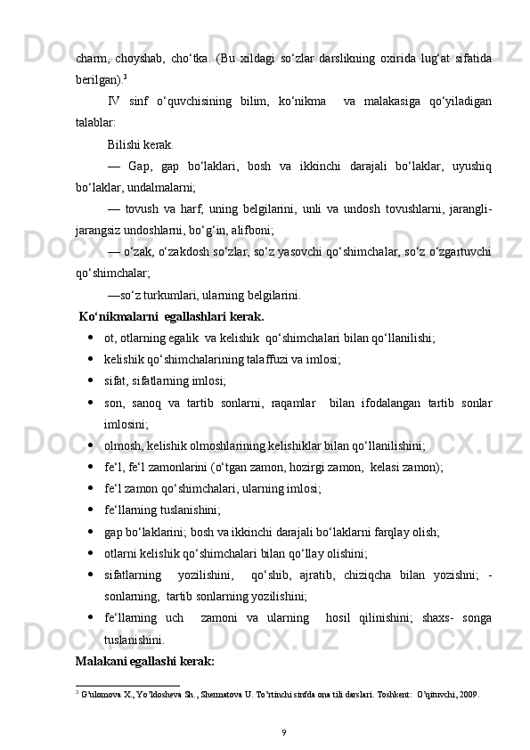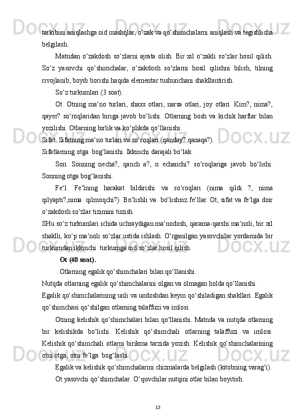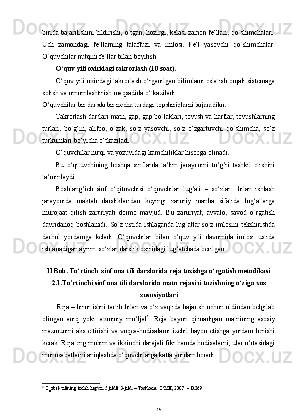 II Bob. To‘rtinchi sinf ona tili darslarida reja tuzishga o‘rgatish metodikasi 15