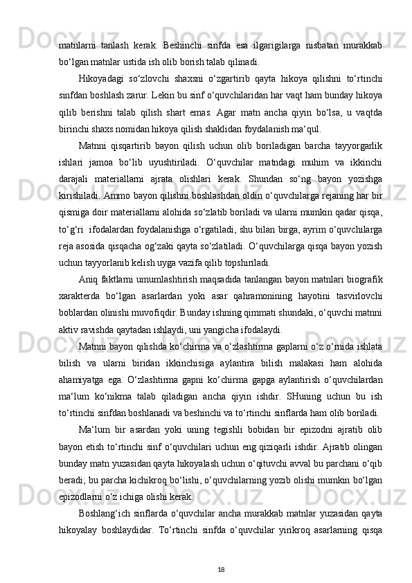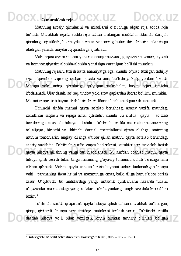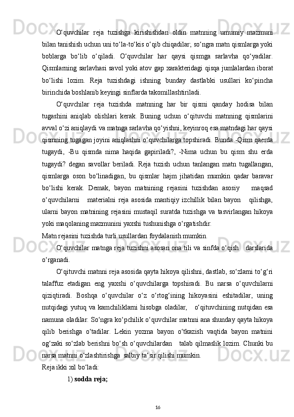 2.1.To‘rtinchi sinf ona tili darslarida matn rejasini tuzishning o‘ziga хos хususiyatlari 15