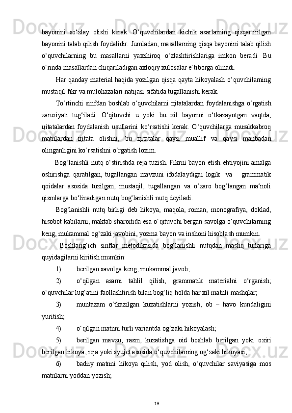 I Bob. Boshlang‘ich ta‘limda ona tili o‘qitish metodikasi 5