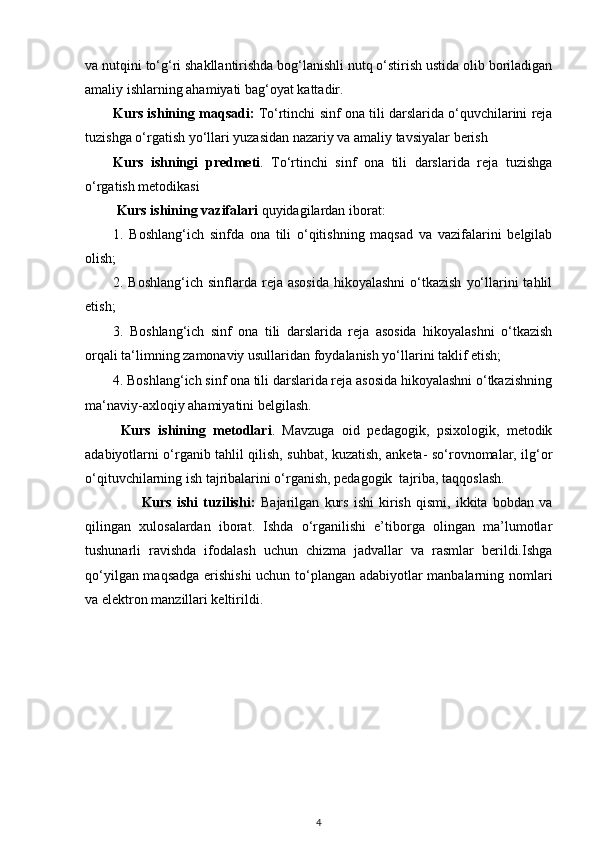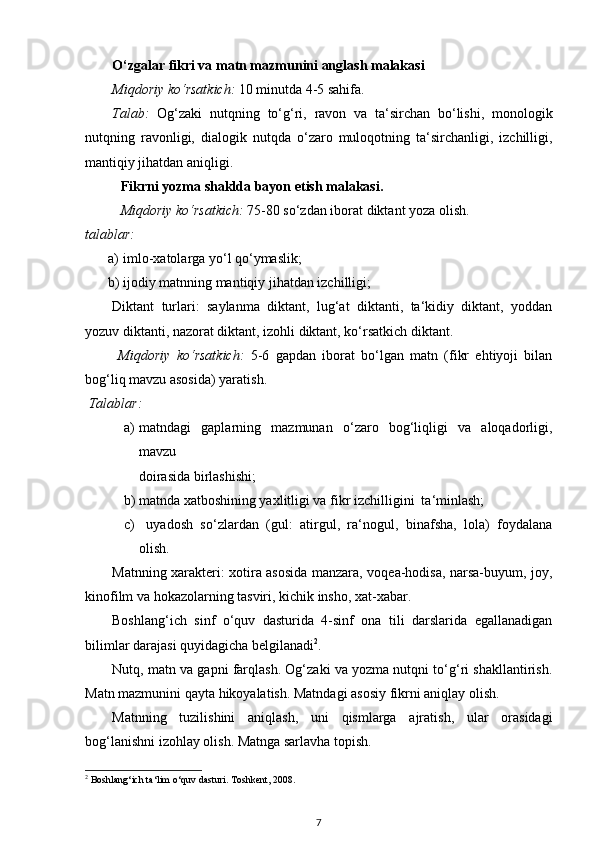 1.1. Boshlang‘ich sinflar DTSda ona tili o‘qitishning maqsad va vazifalari 5