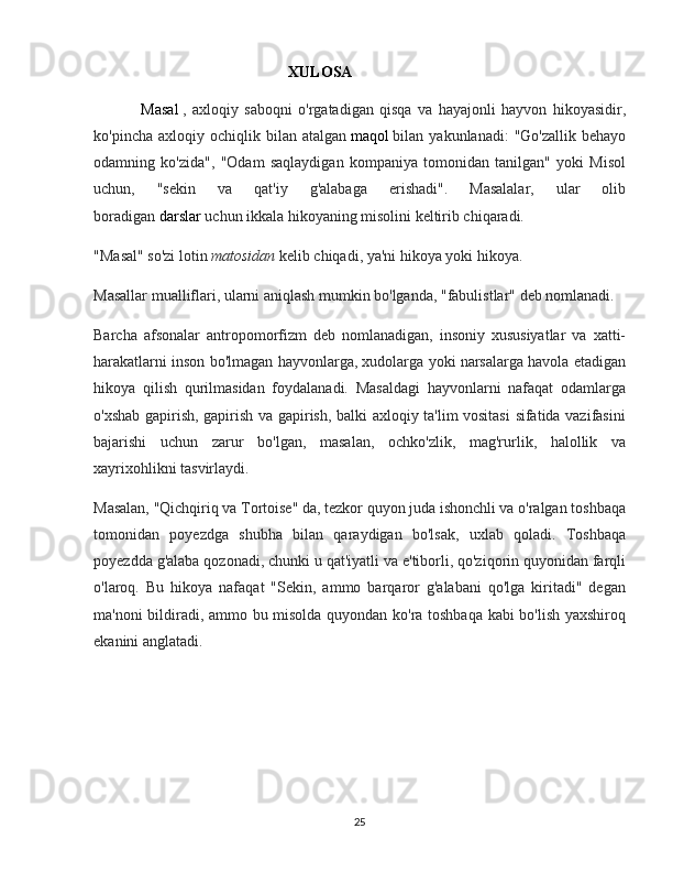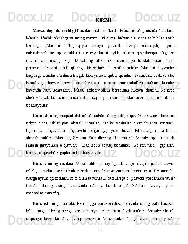 4-sinf ona tili va o’qish savodxonligi darslarida masal oʻtishda innovatsion pedagogik texnologiyalardan foydalanish metodikasi