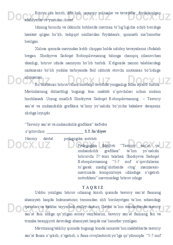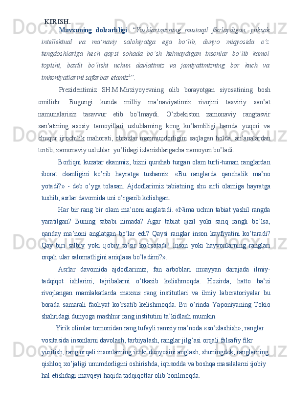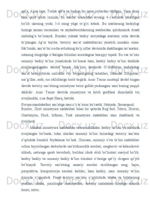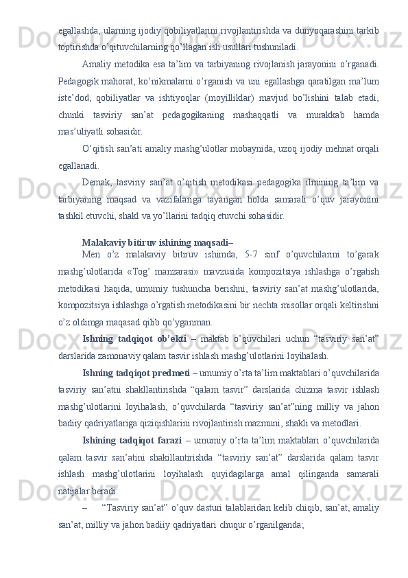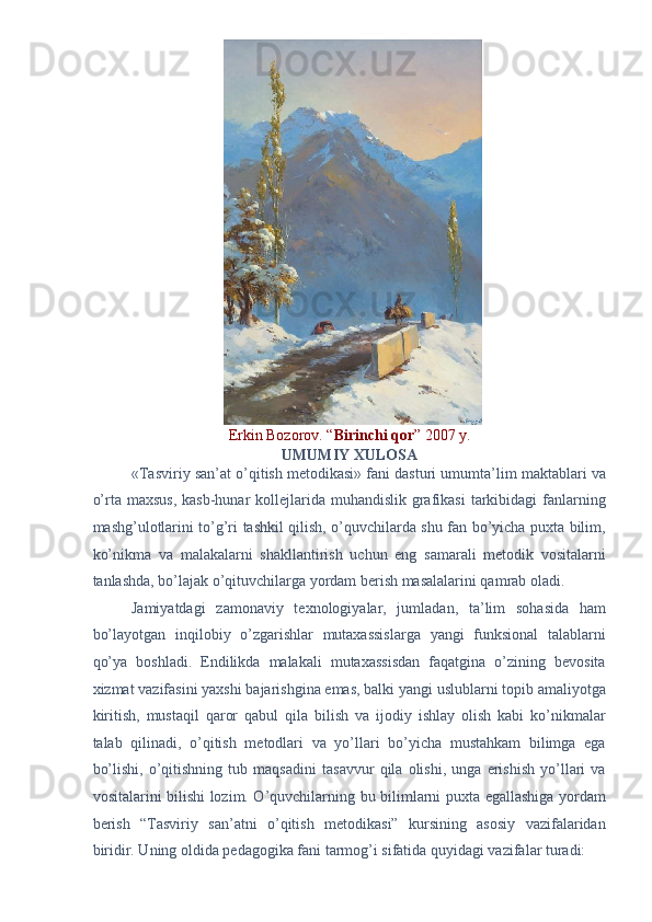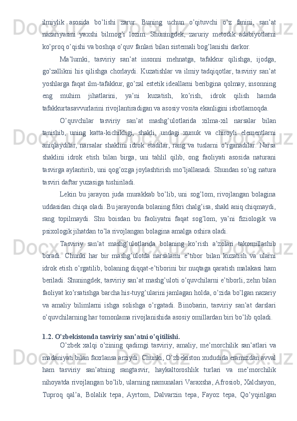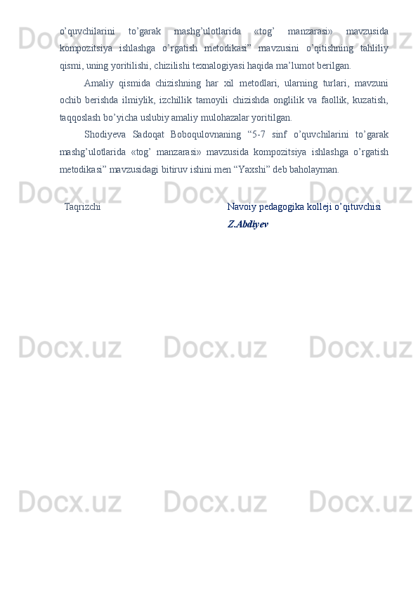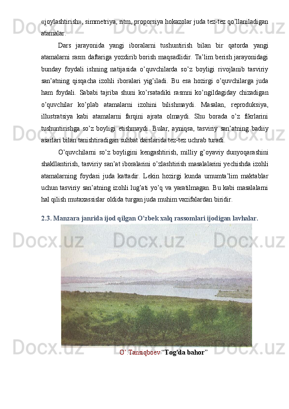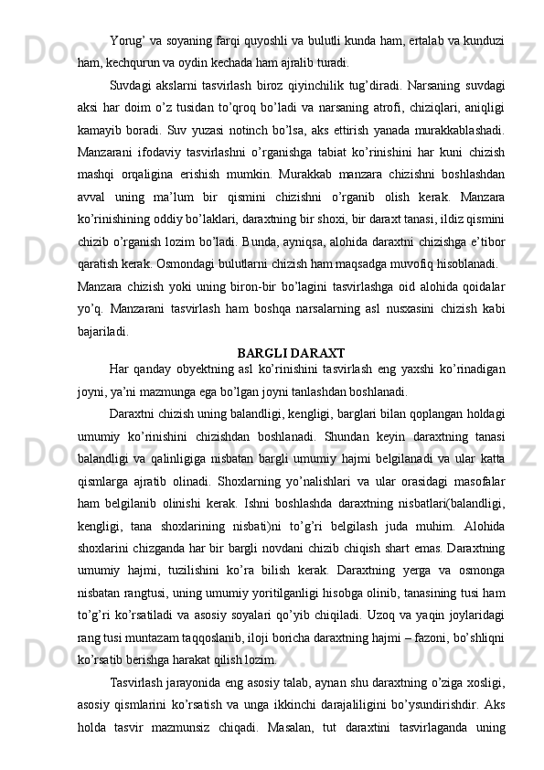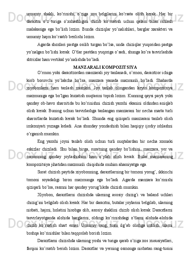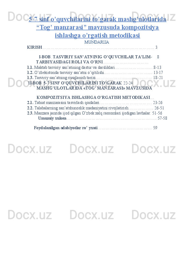 5-7 sinf o’quvchilarini to’garak mashg’ulotlarida “Tog’ manzarasi” mavzusuda kompozitsiya ishlashga o’rgatish metodikasi