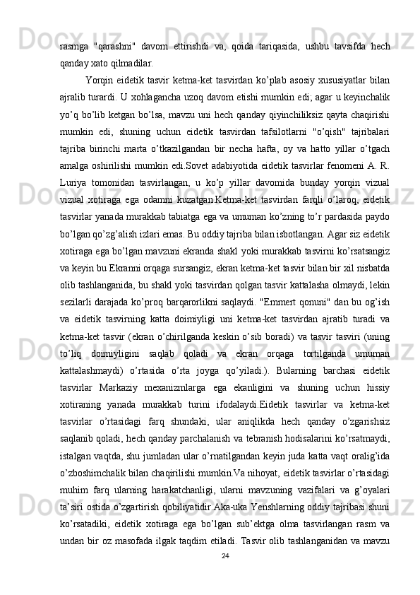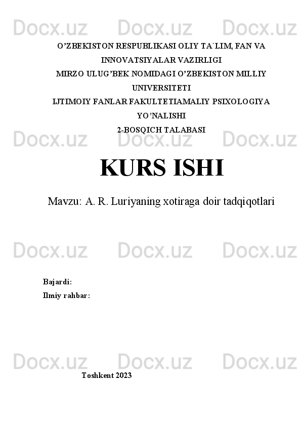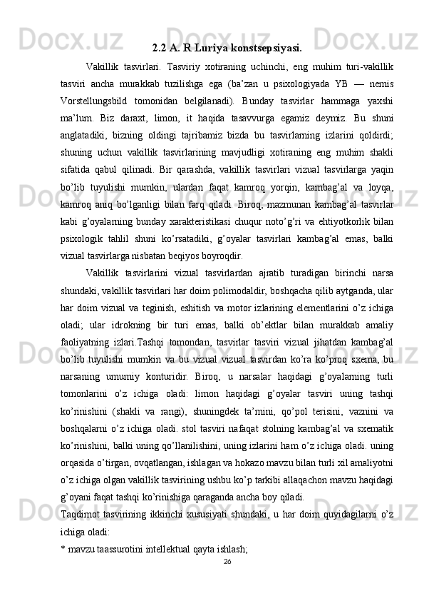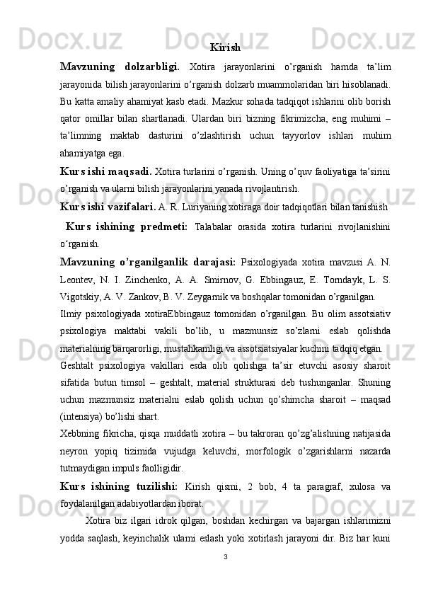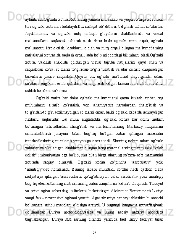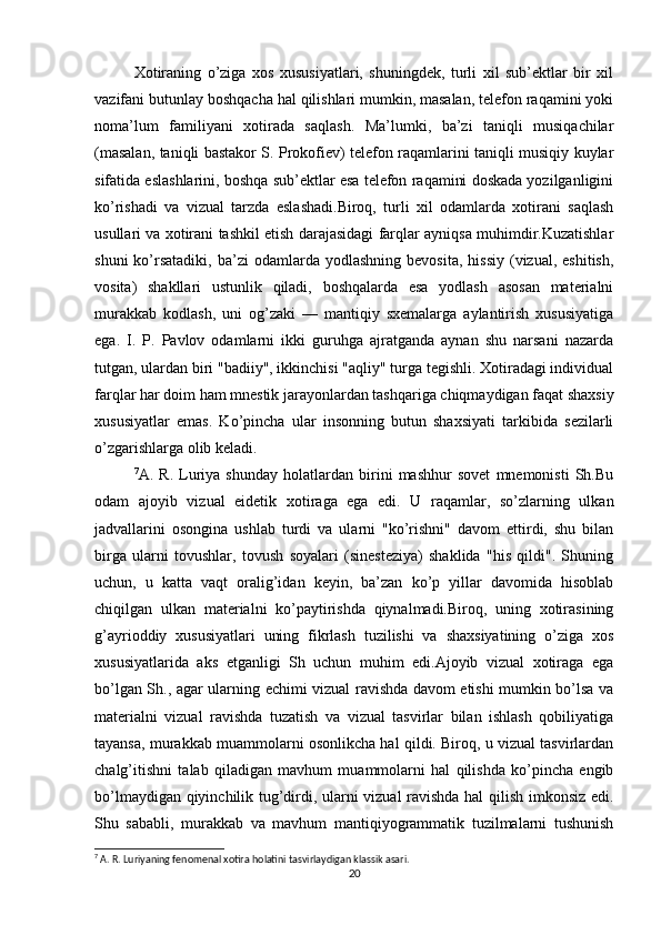 A. R. Luriyaning xotiraga doir tadqiqotlari