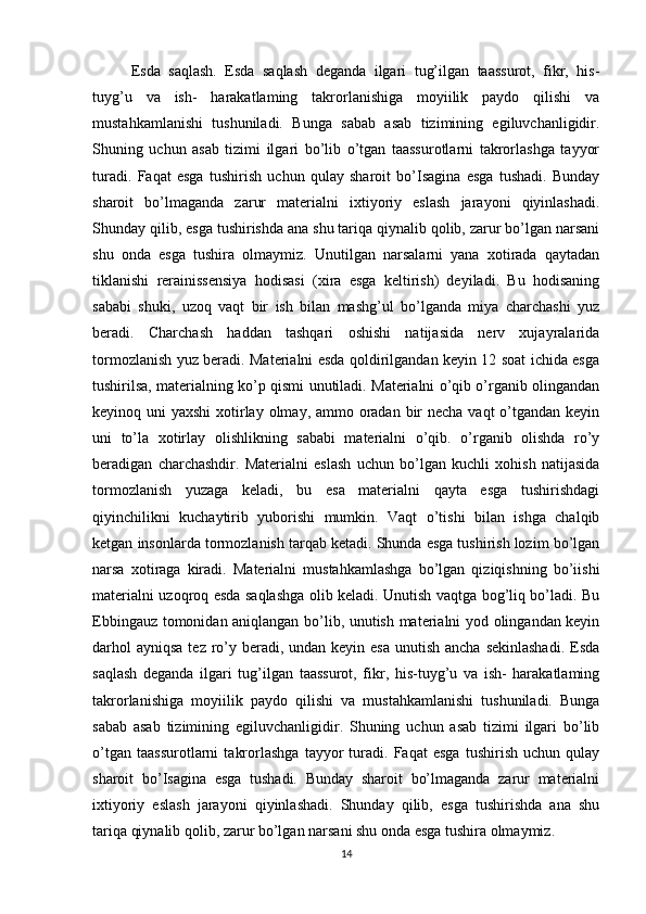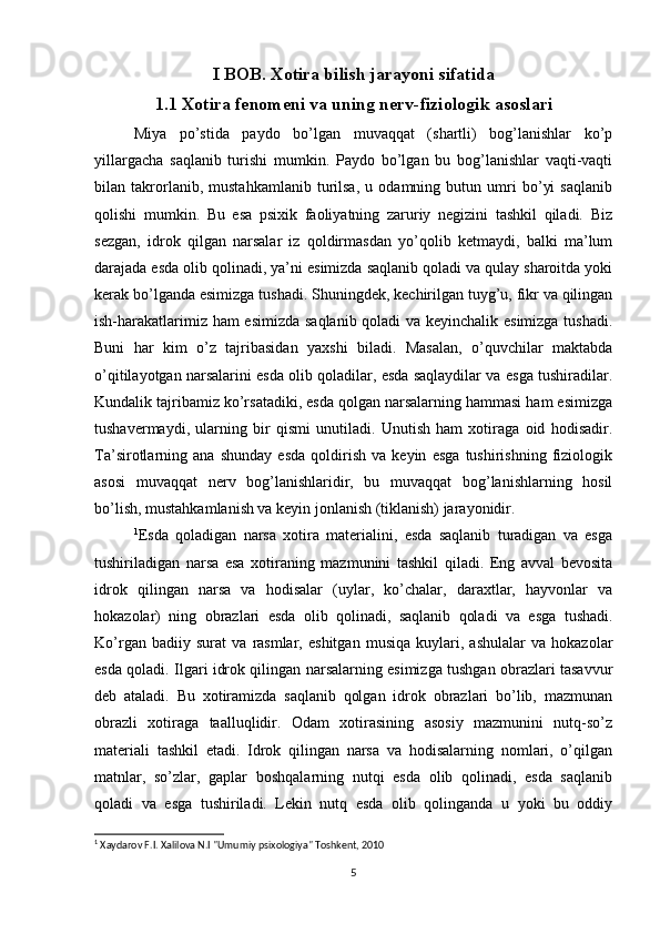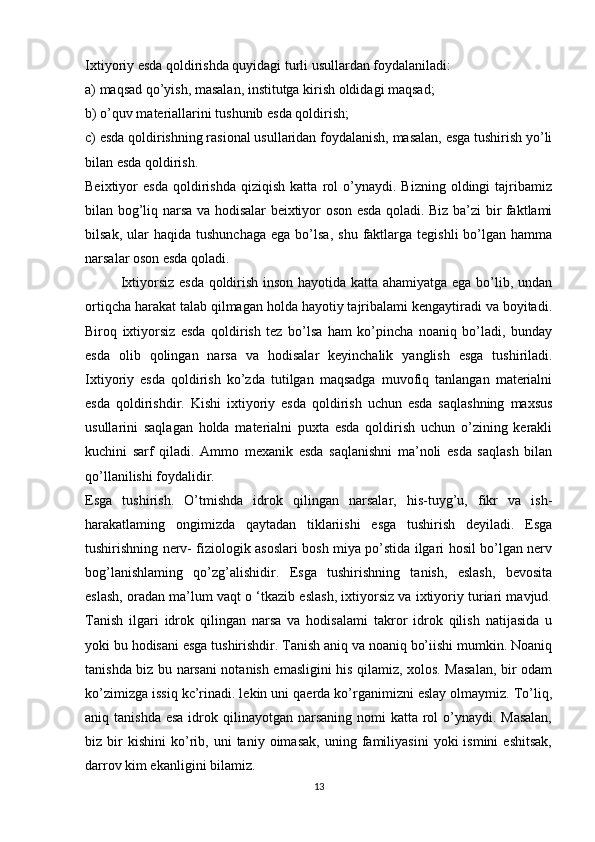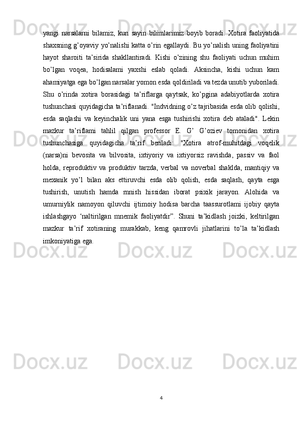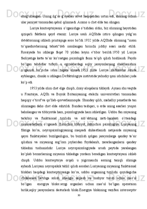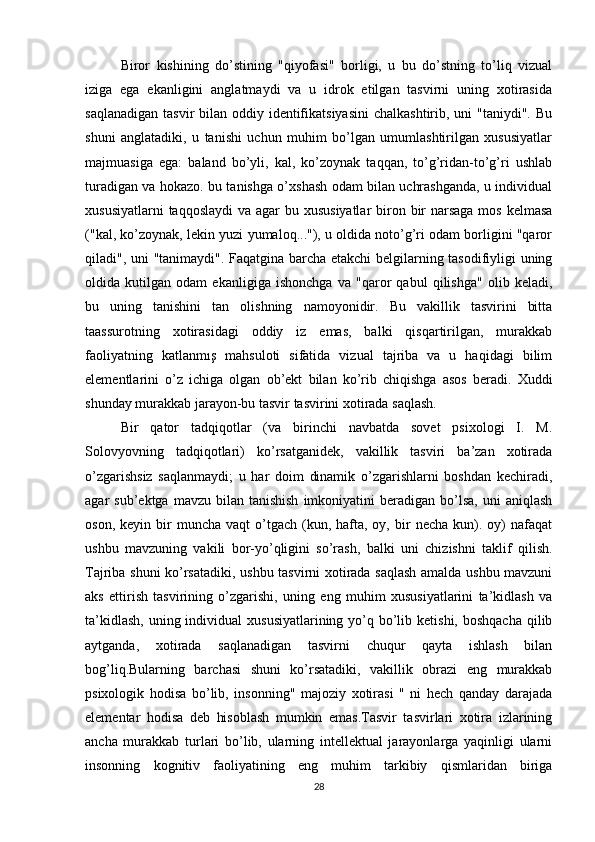 A. R. Luriyaning xotiraga doir tadqiqotlari