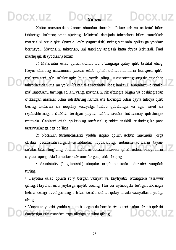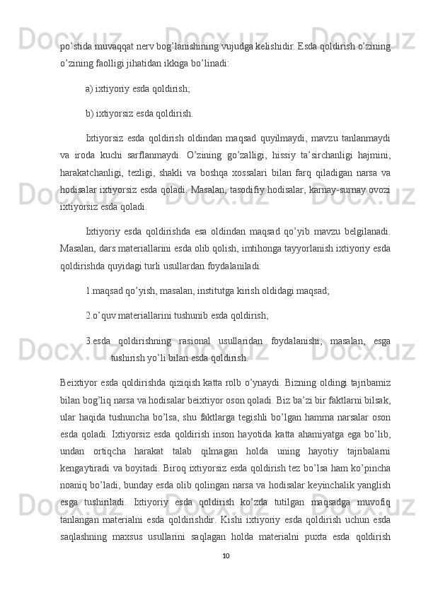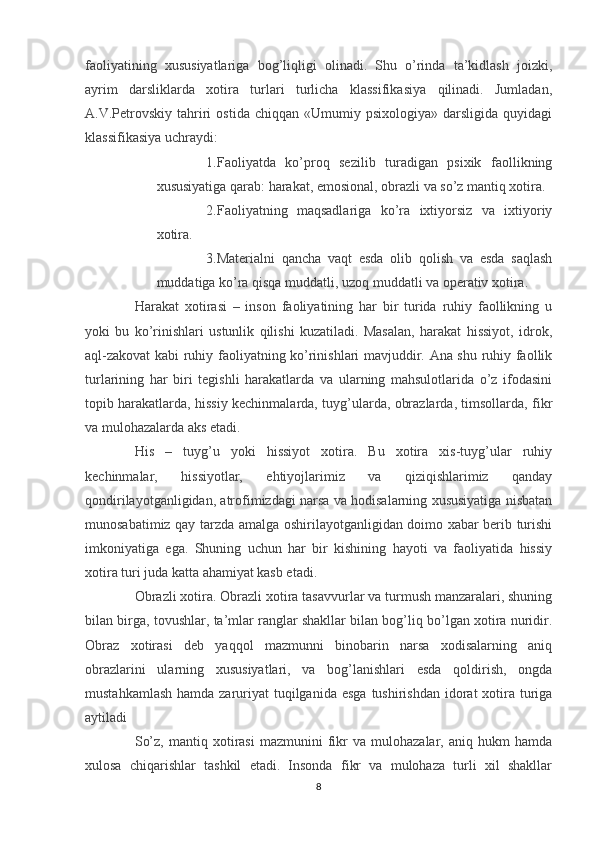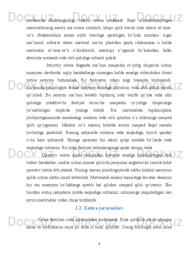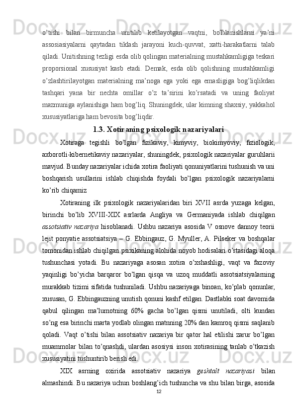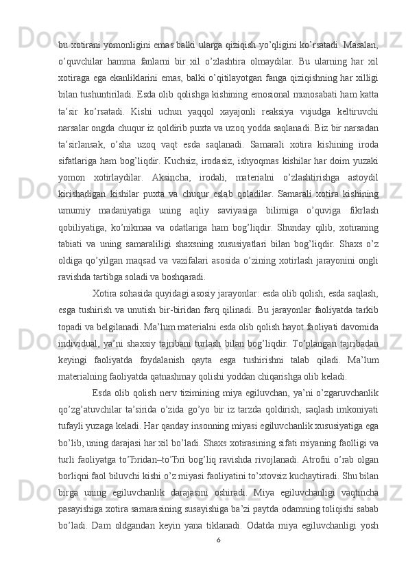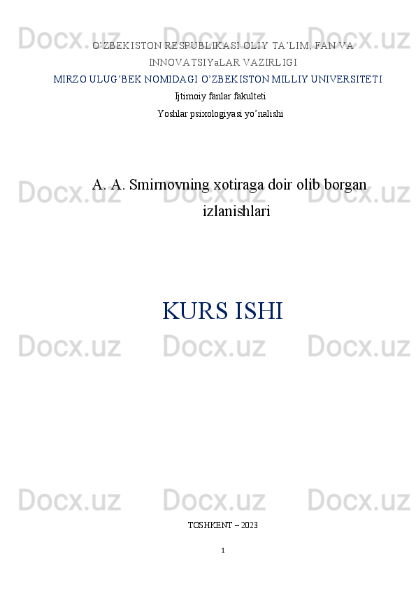 A. Smirnovning xotiraga doir olib borgan izlanishlari