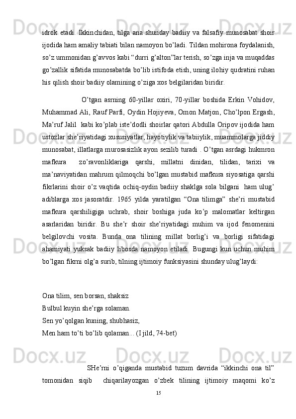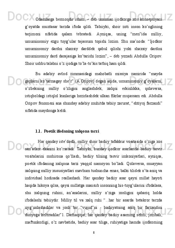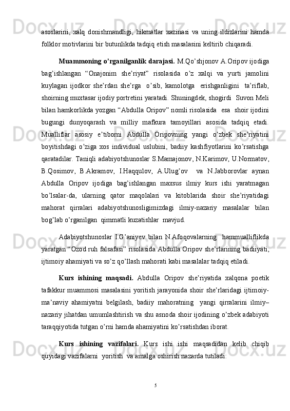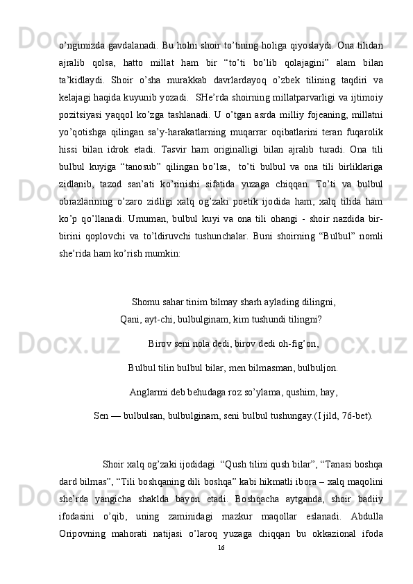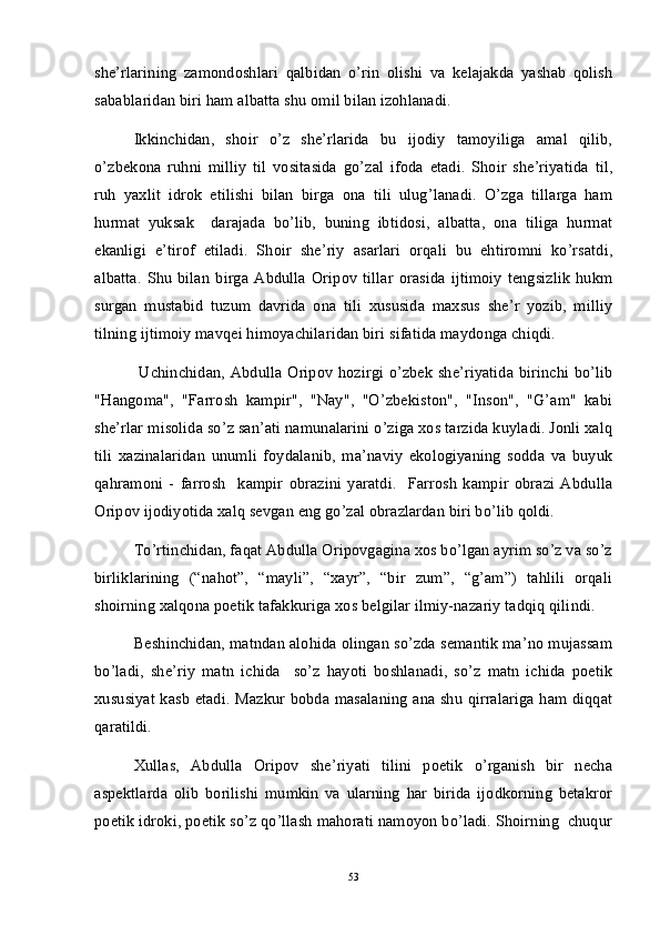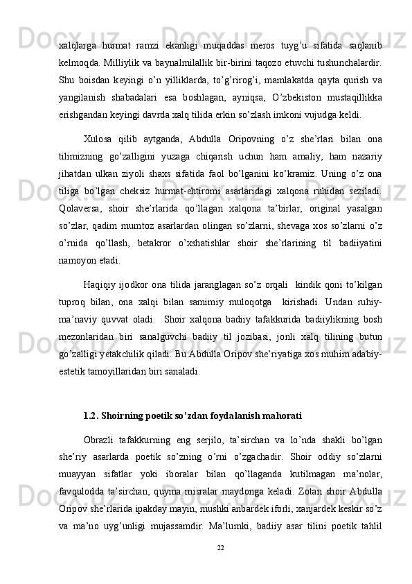 Abdulla Oripov she’riyatida sevgi muhabbat motivlari