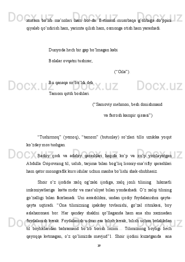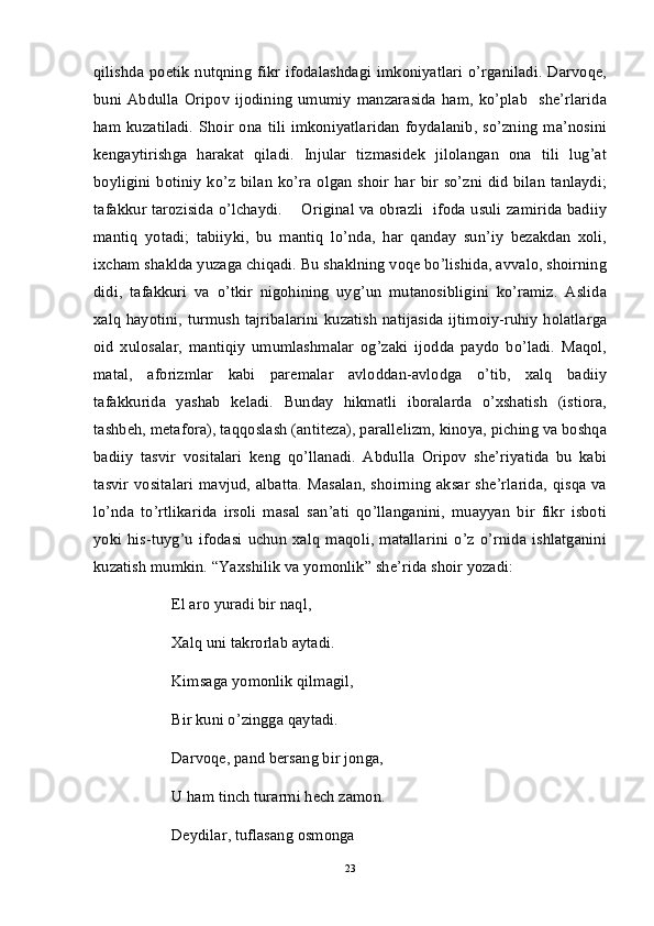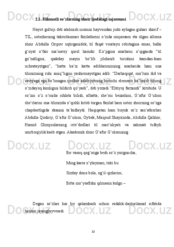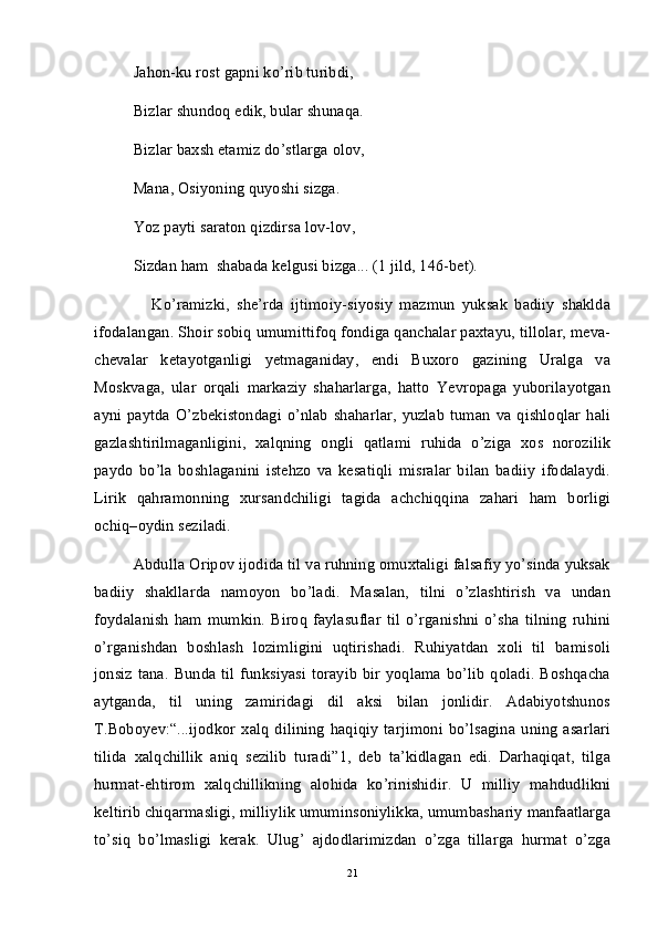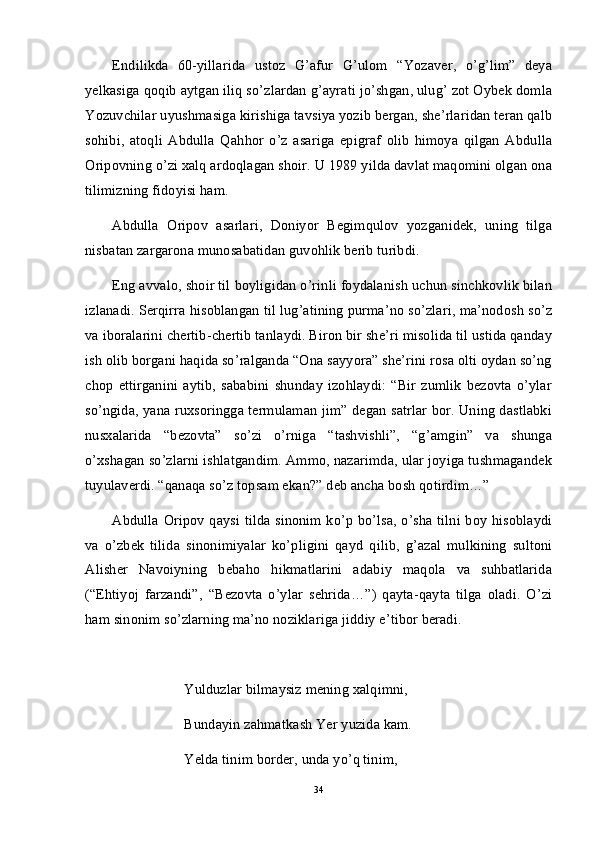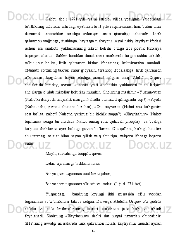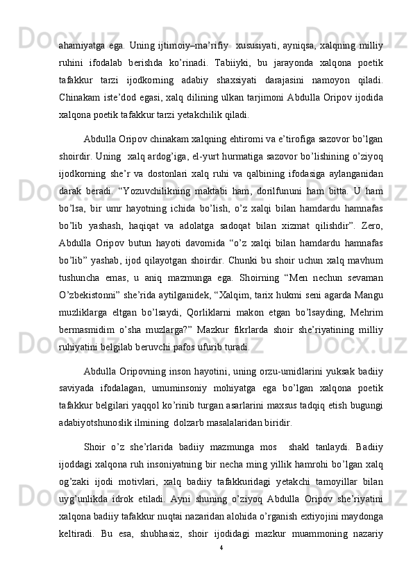 Abdulla Oripov she’riyatida sevgi muhabbat motivlari