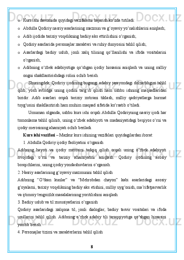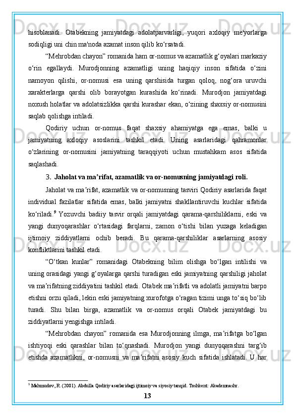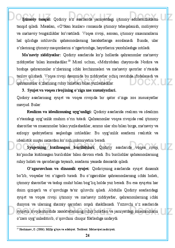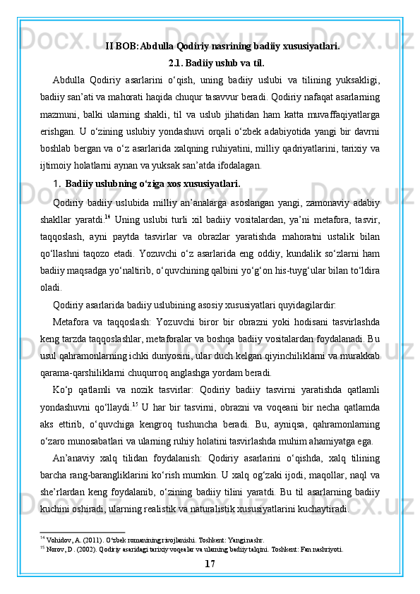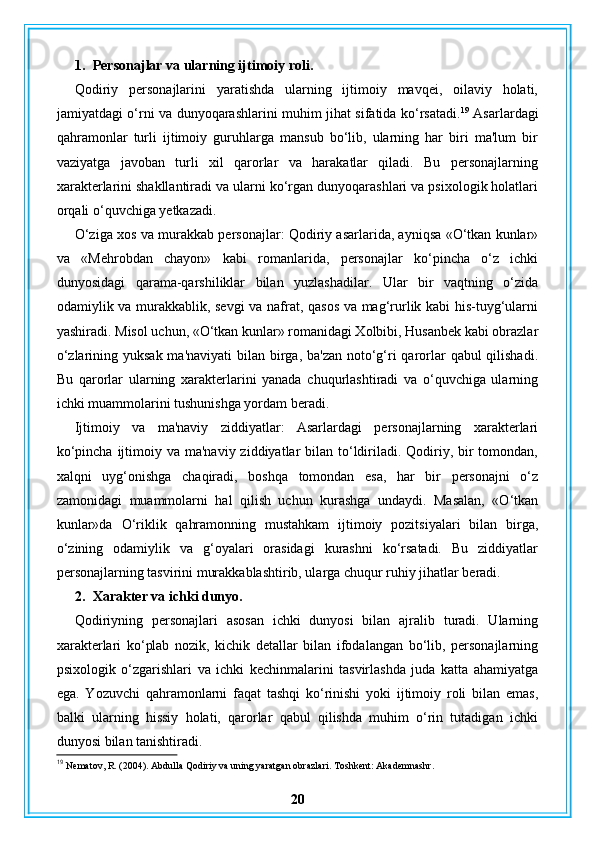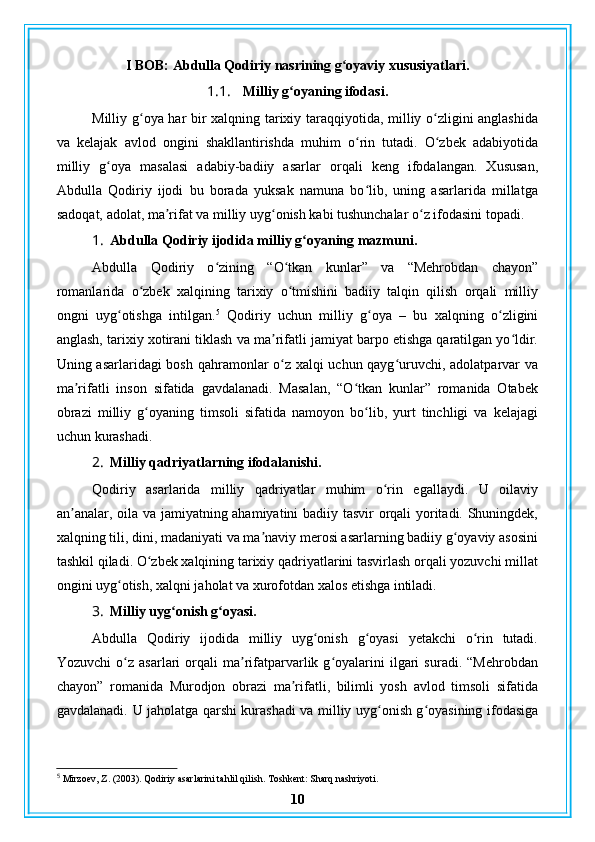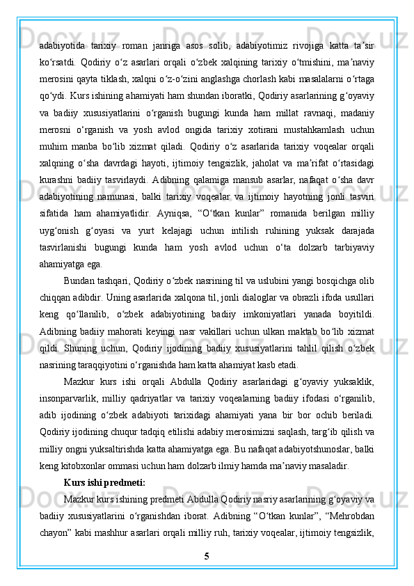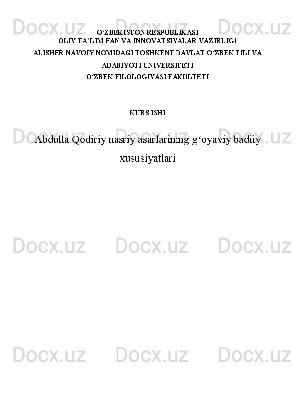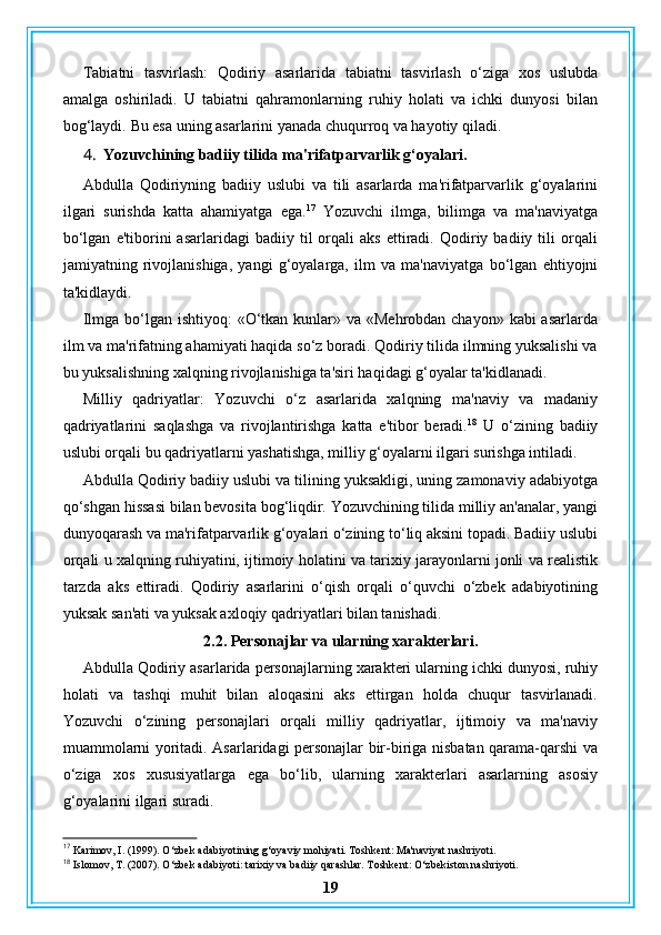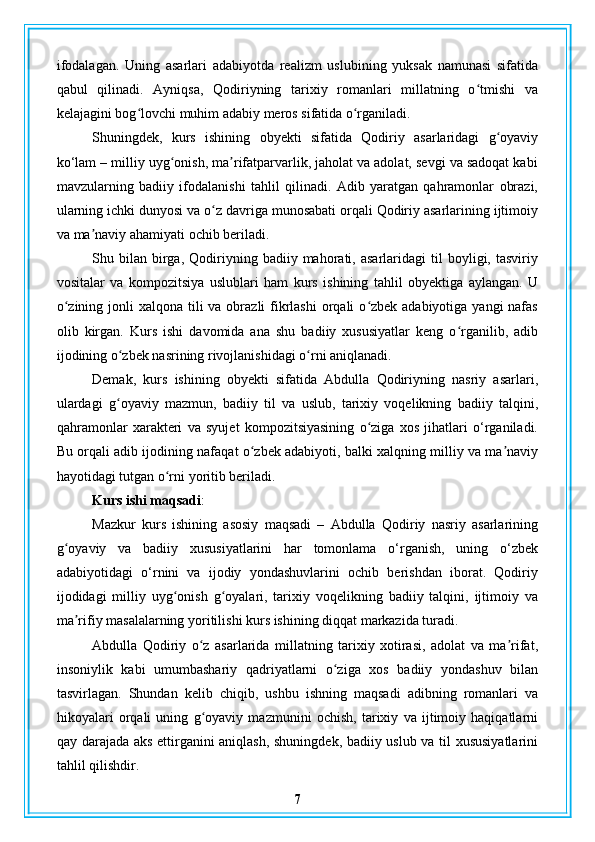 Abdulla Qodiriy nasriy asarlarining gʻoyaviy badiiy xususiyatlari