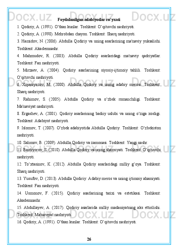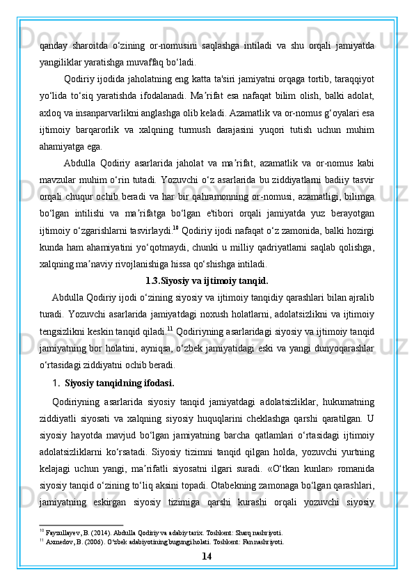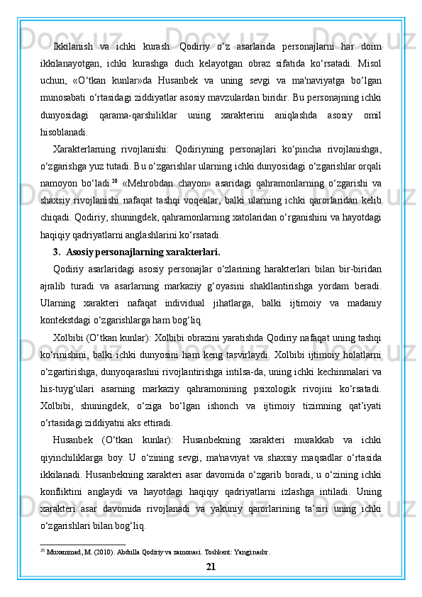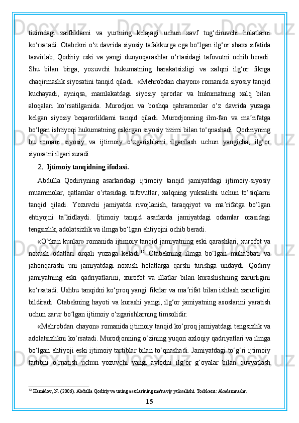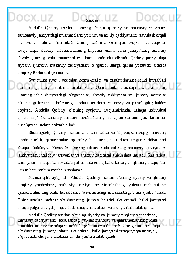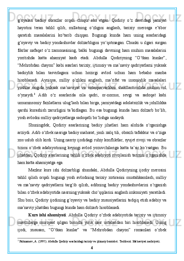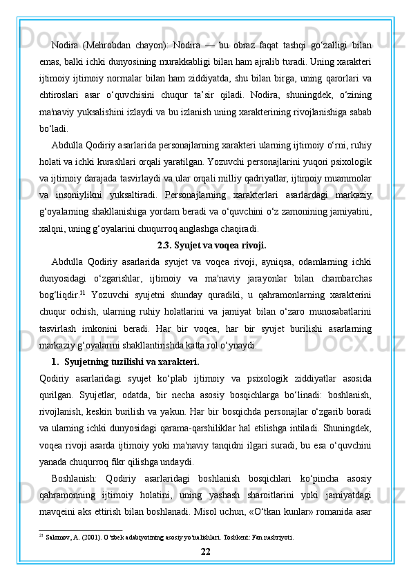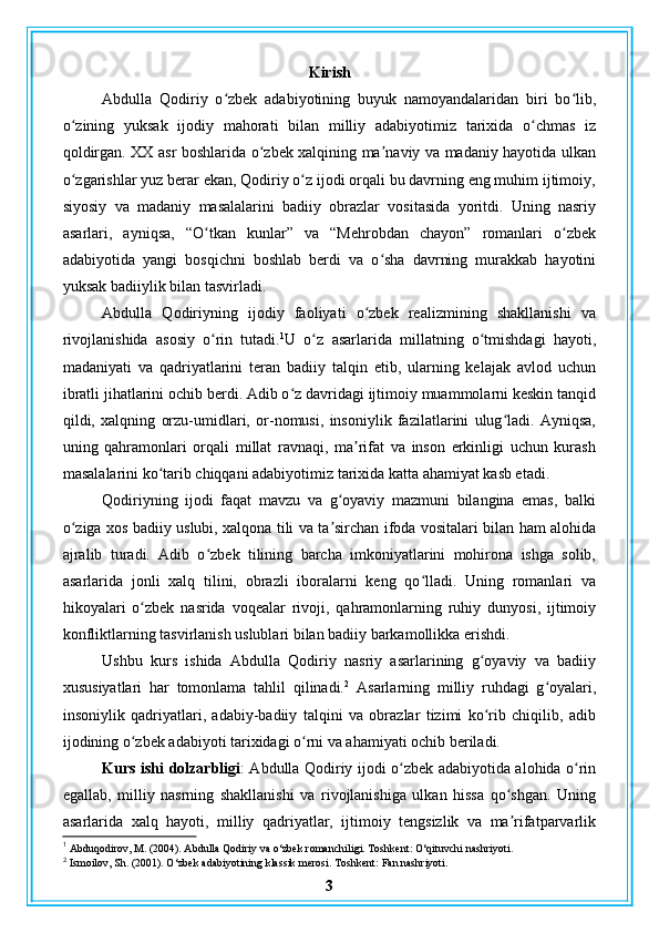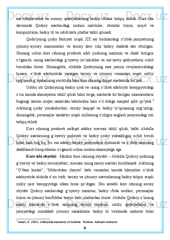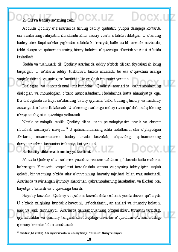 Abdulla Qodiriy nasriy asarlarining gʻoyaviy badiiy xususiyatlari