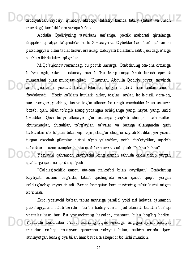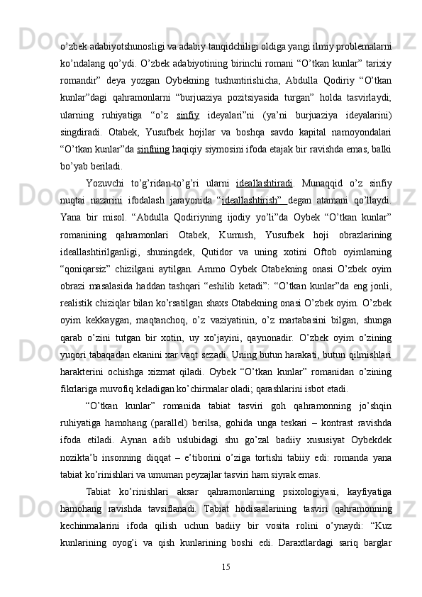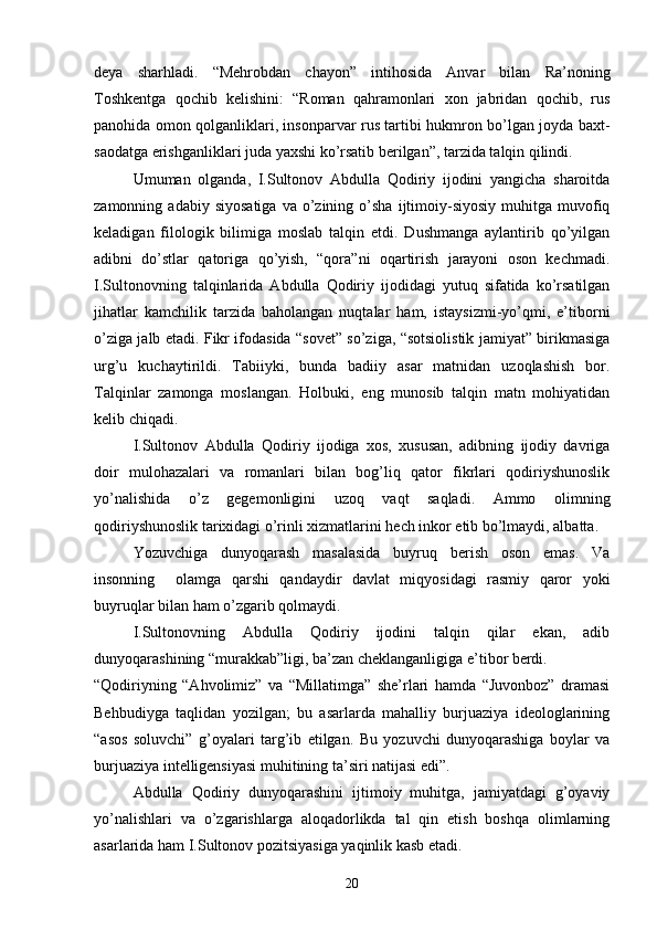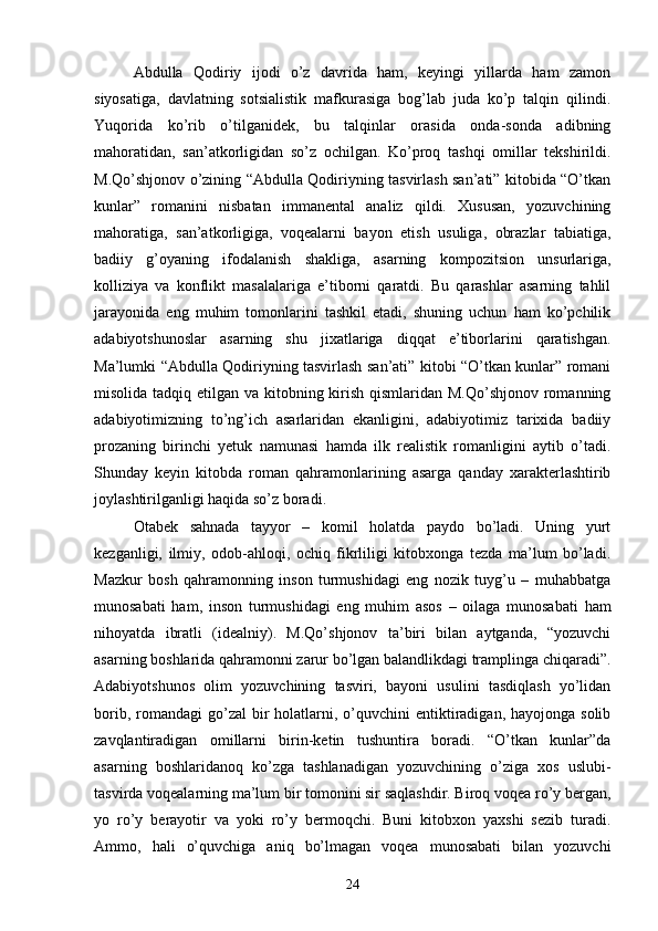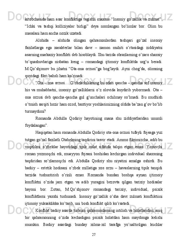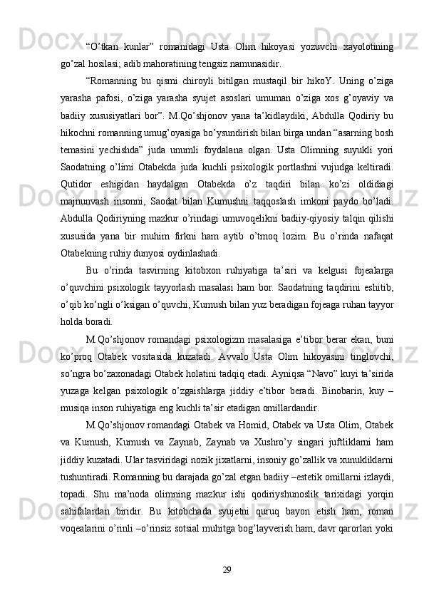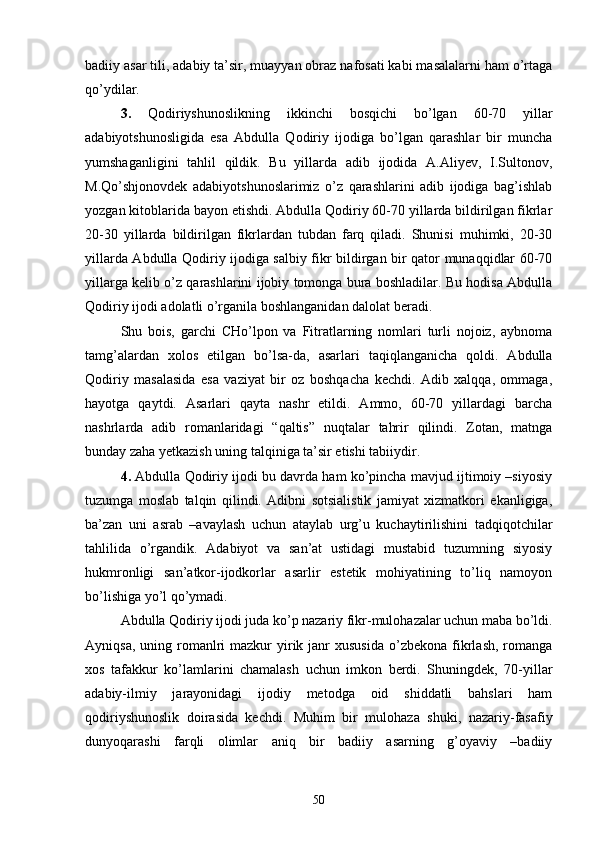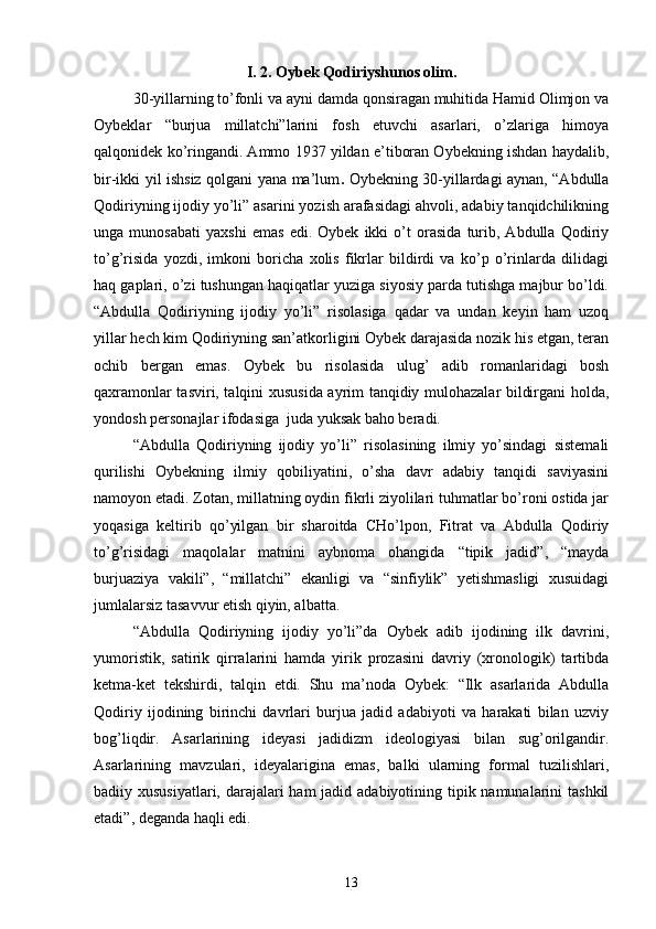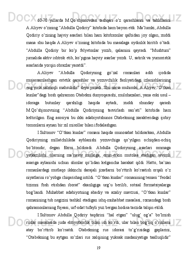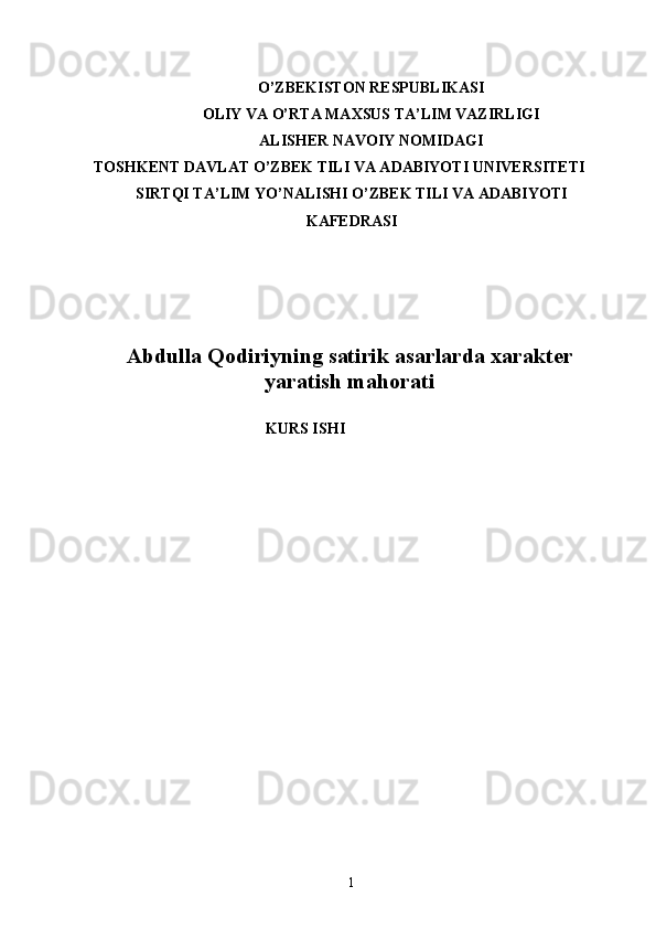 Abdulla Qodiriyning satirik asarlarda xarakter yaratish mahorati