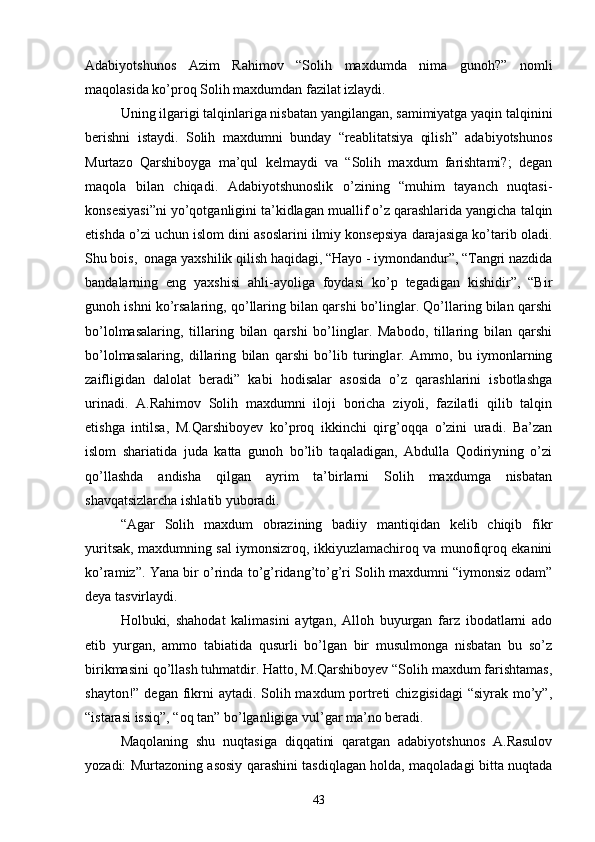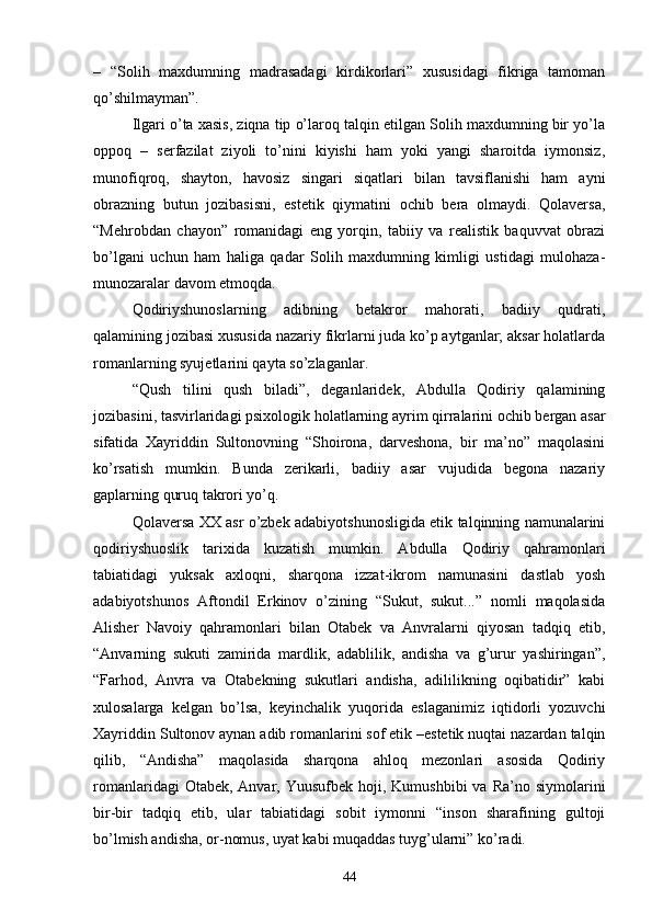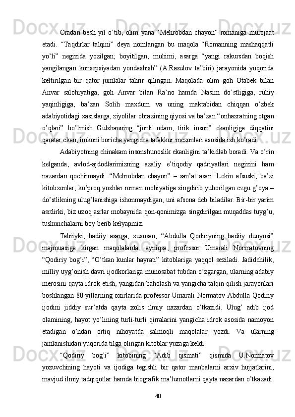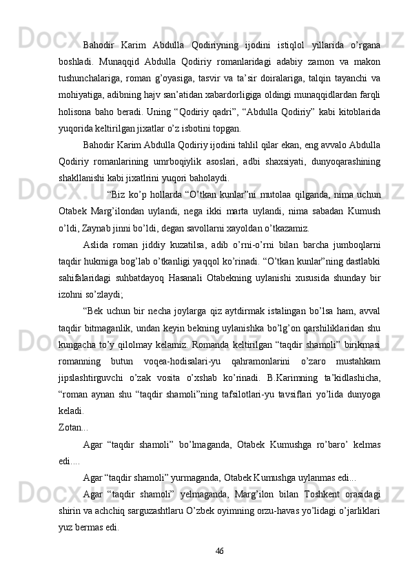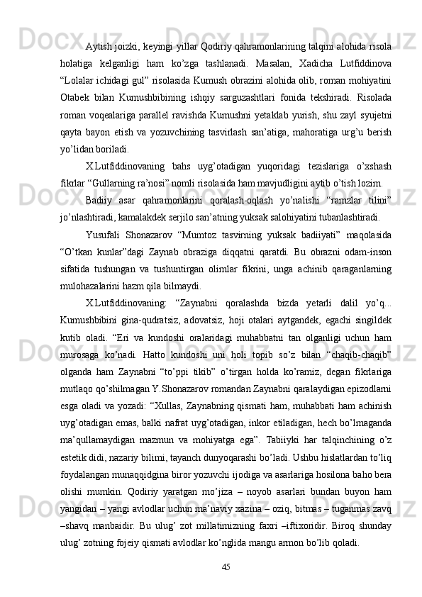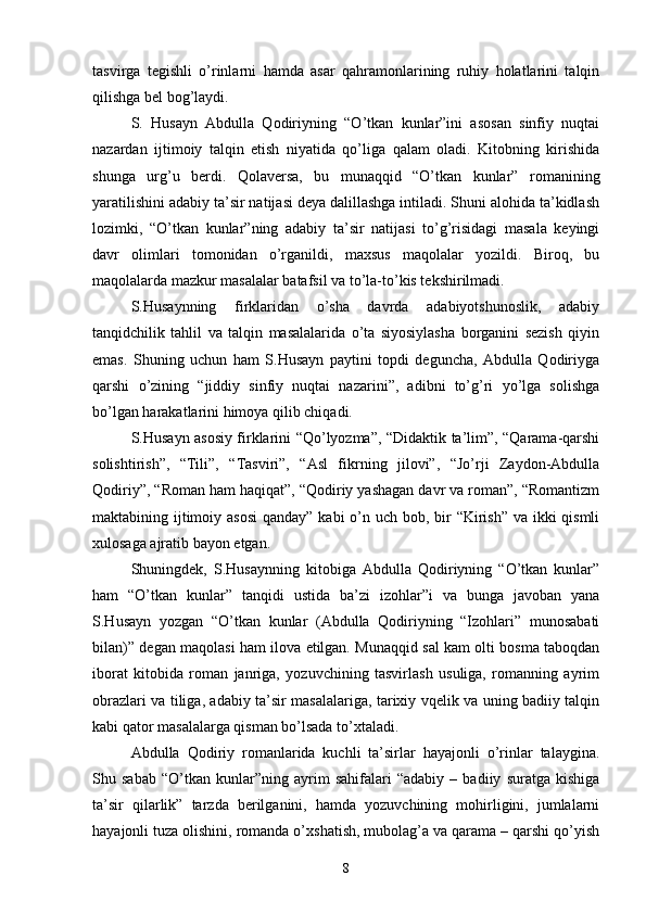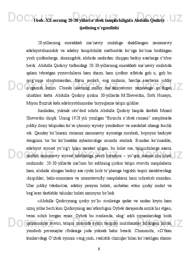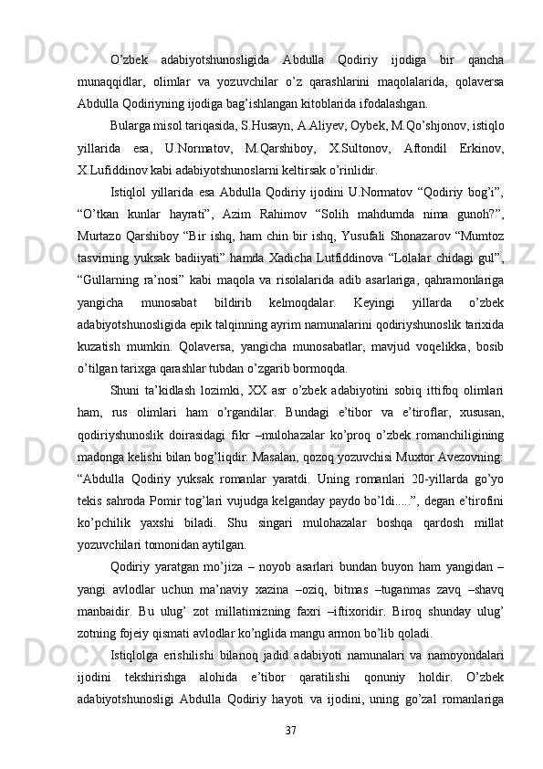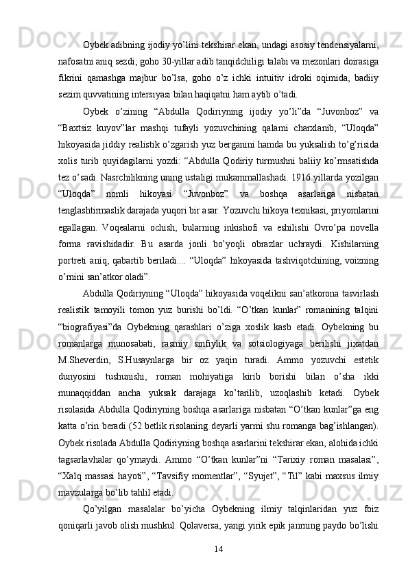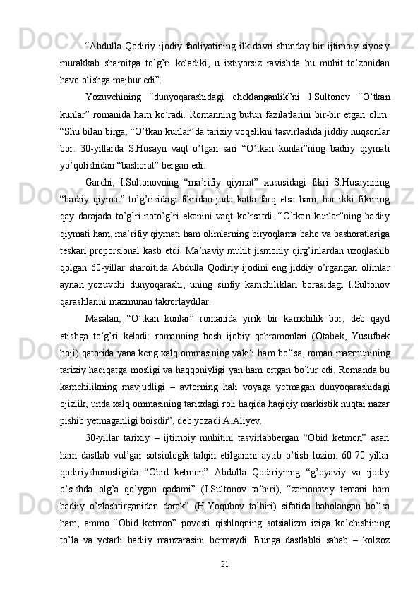 Abdulla Qodiriyning satirik asarlarda xarakter yaratish mahorati