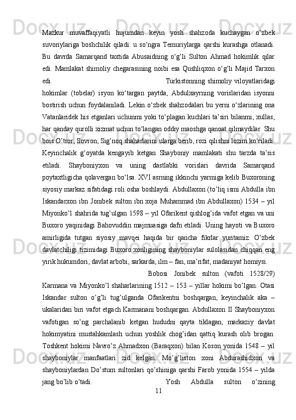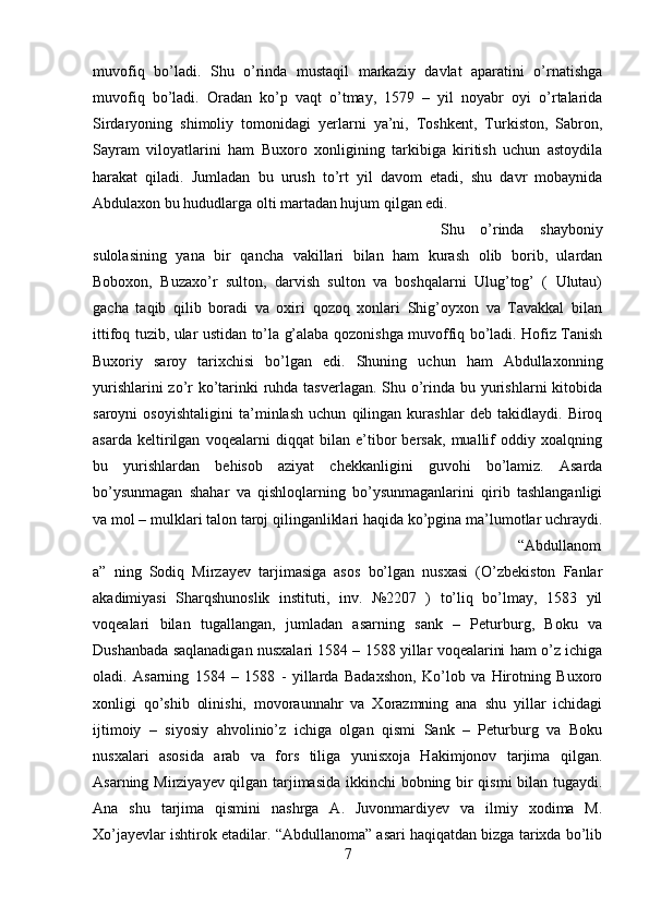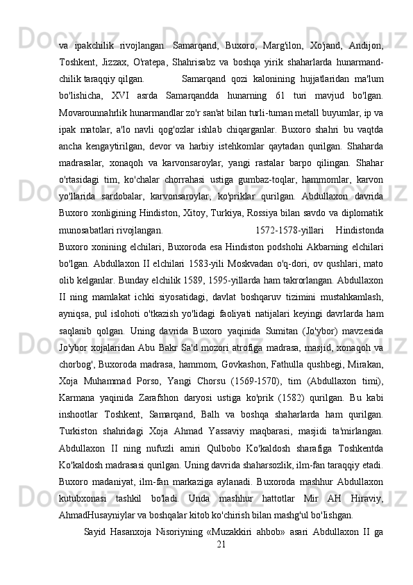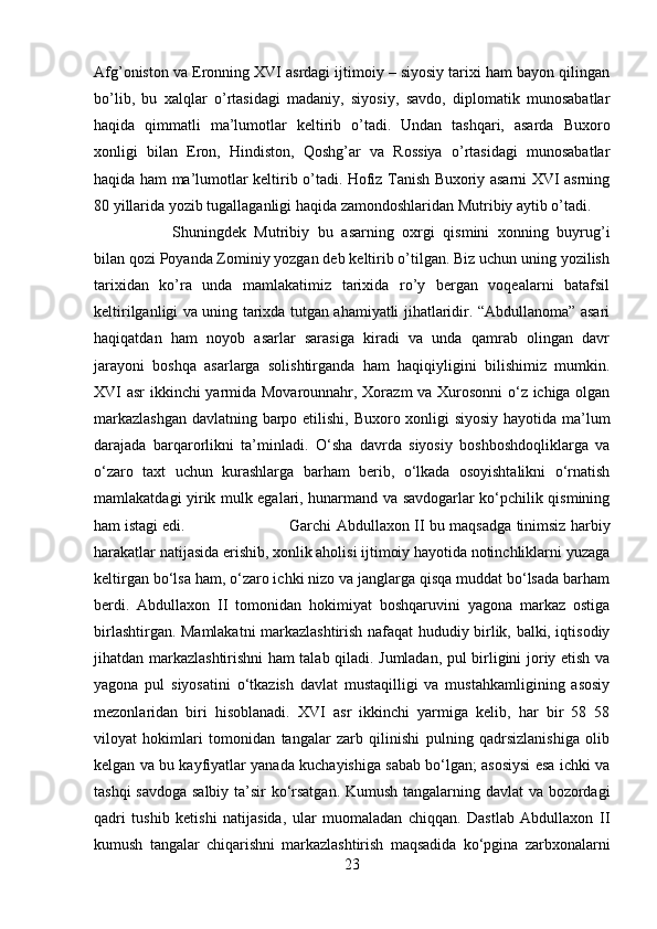 Abdullaxon II hukmronlik davri