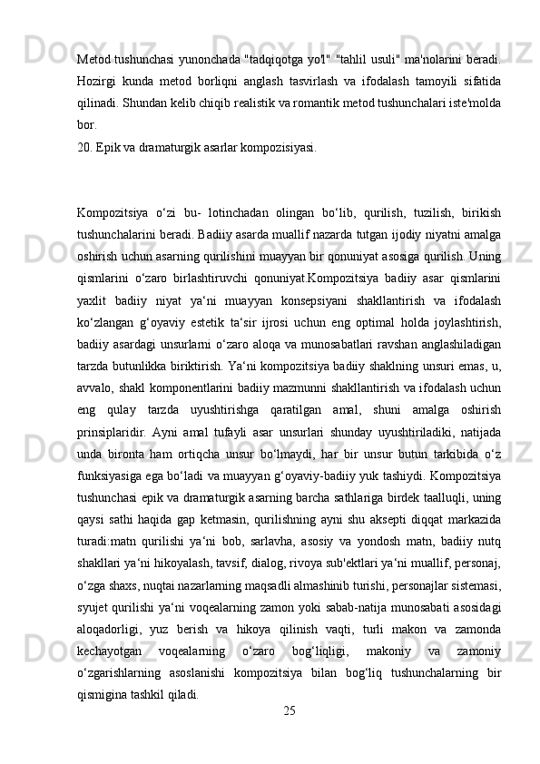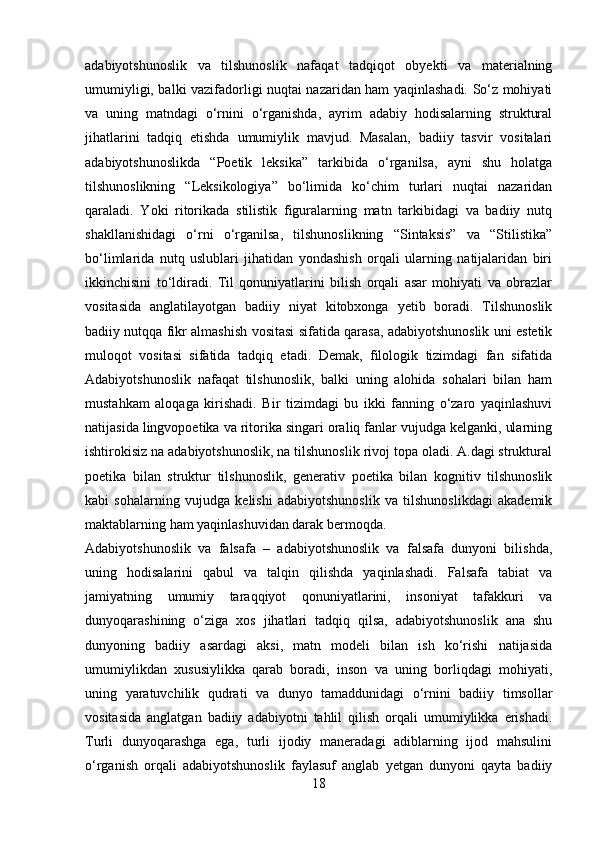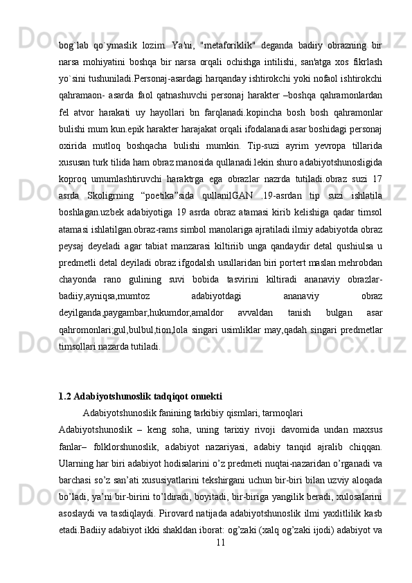 1.2 Adabiyotshunoslik tadqiqot onuekti ……………………………….……..12-23
