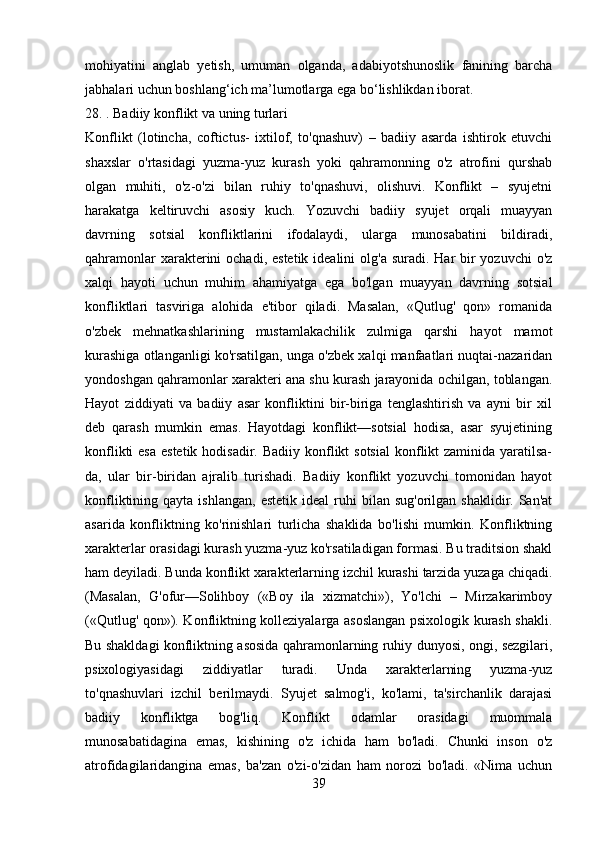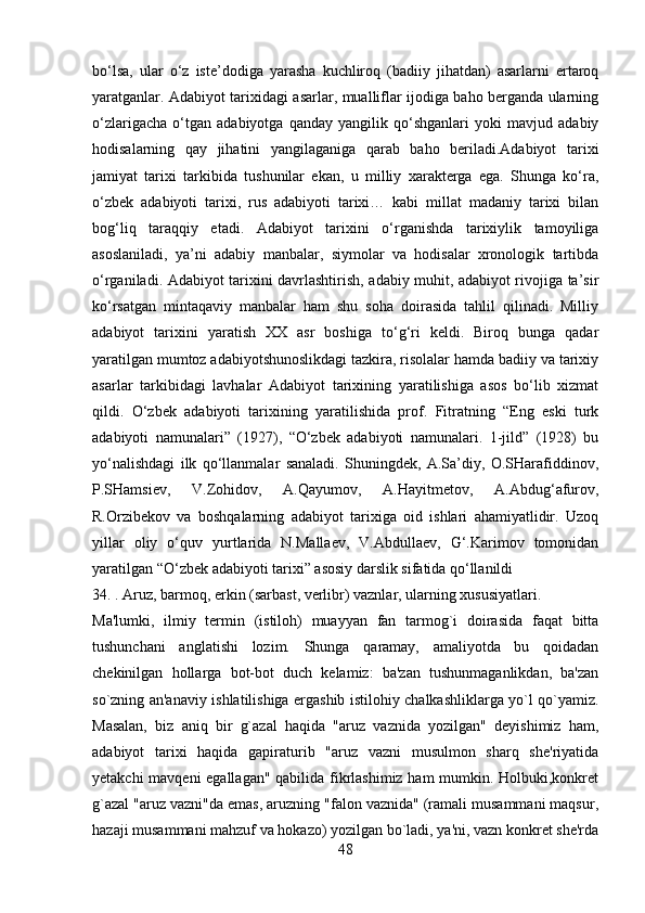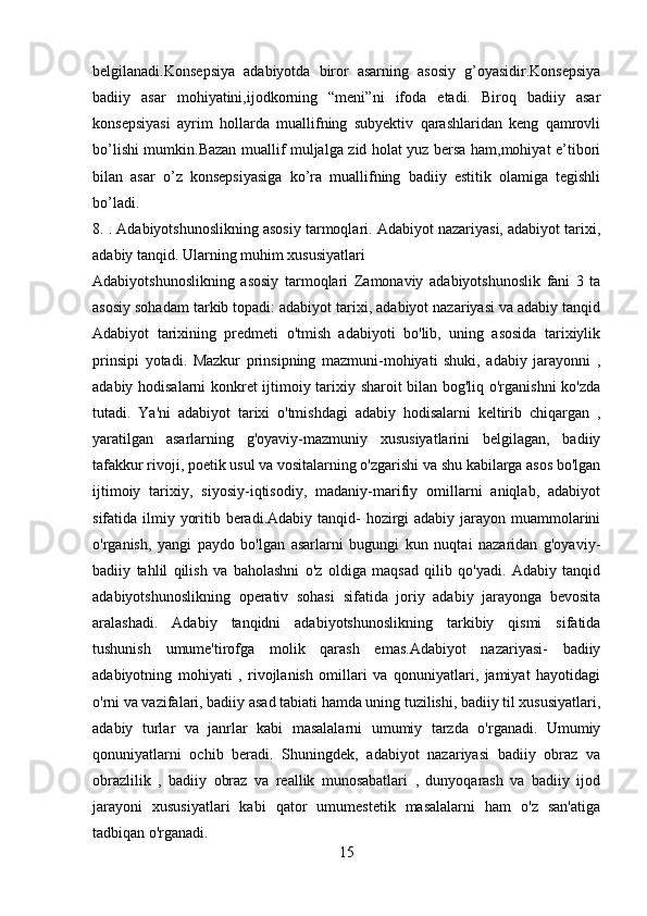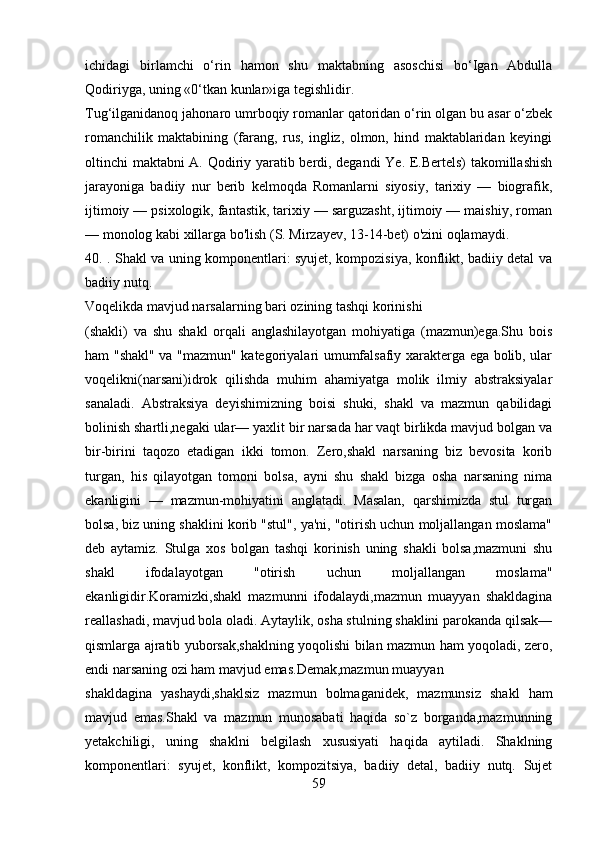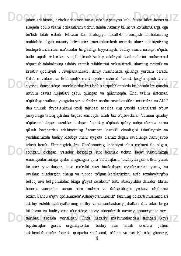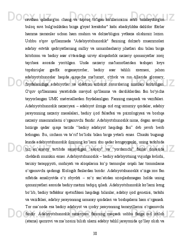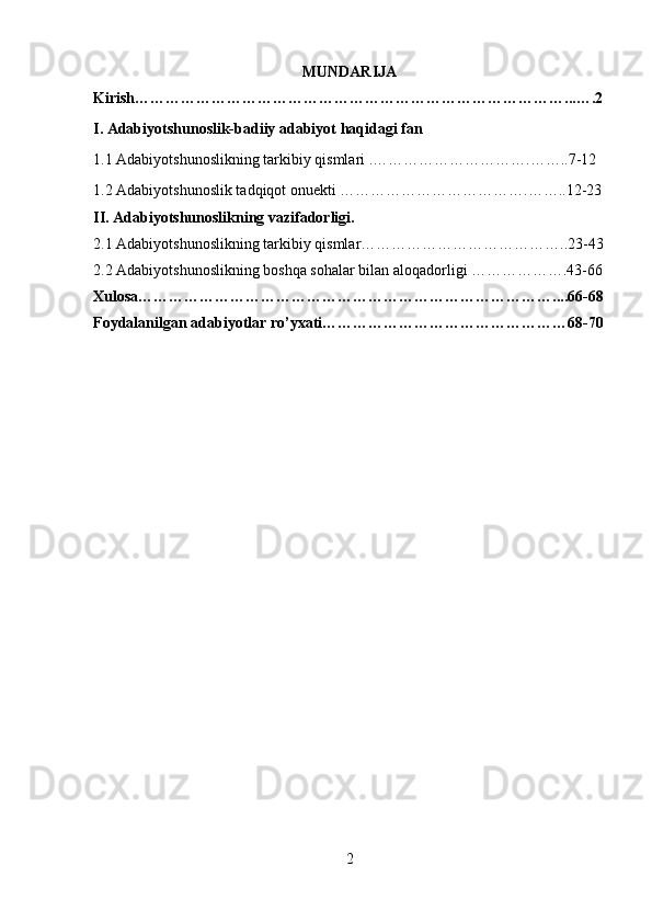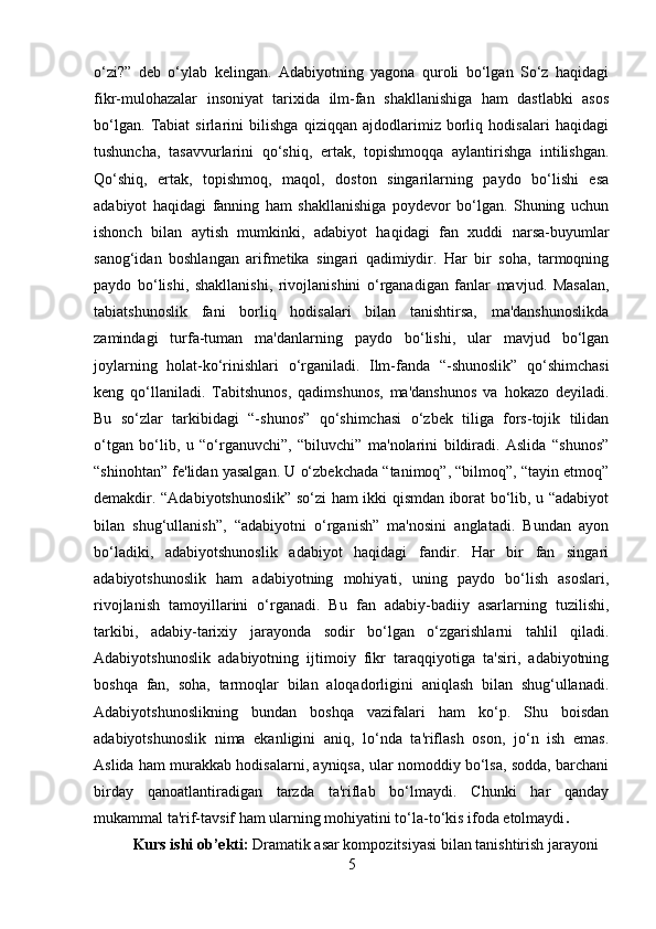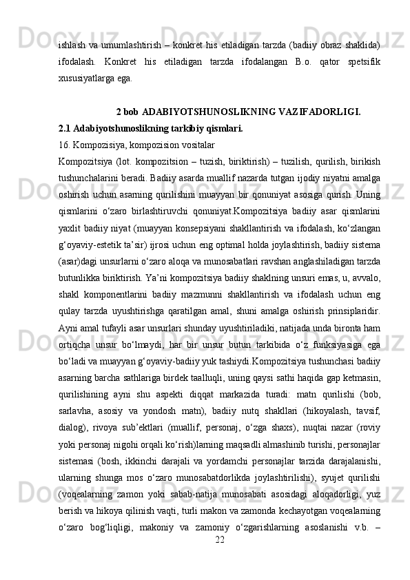 2.1 Adabiyotshunoslikning tarkibiy qismlar…………………………………..23-43