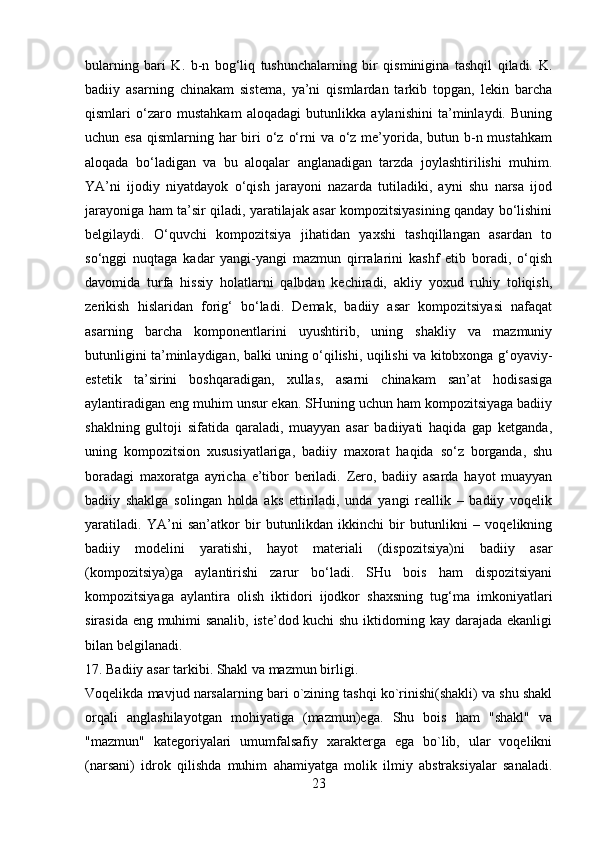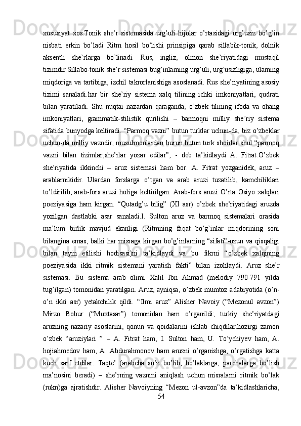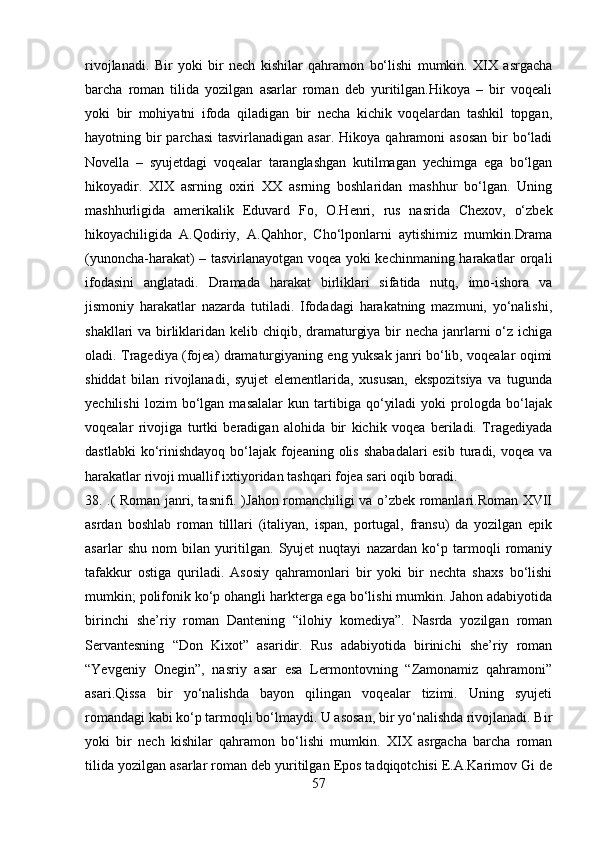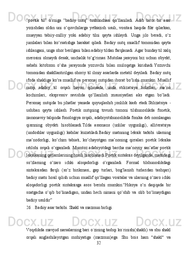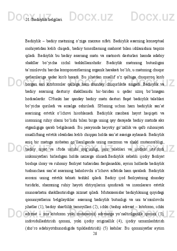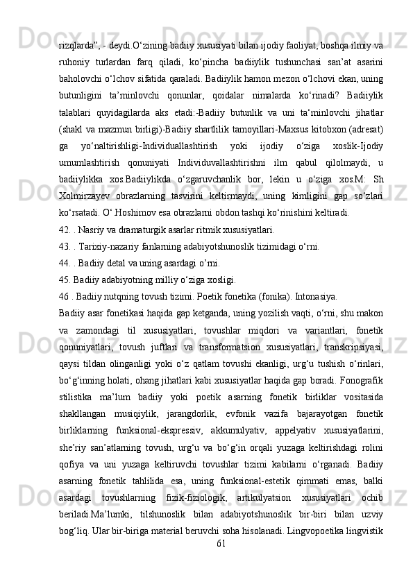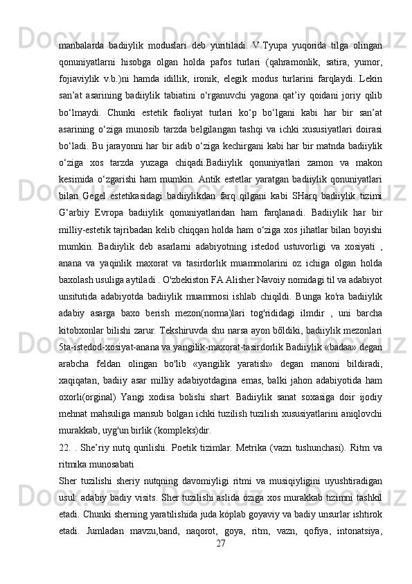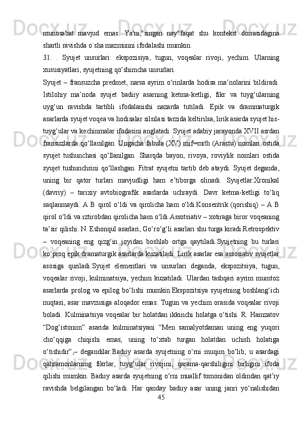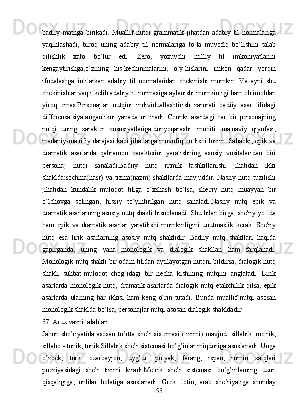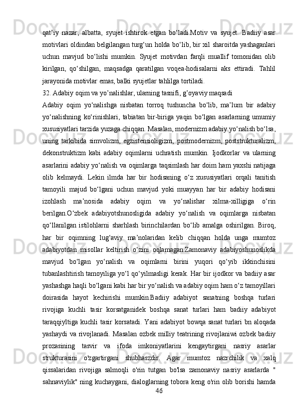 2.1 Adabiyotshunoslikning tarkibiy qismlar…………………………………..23-43