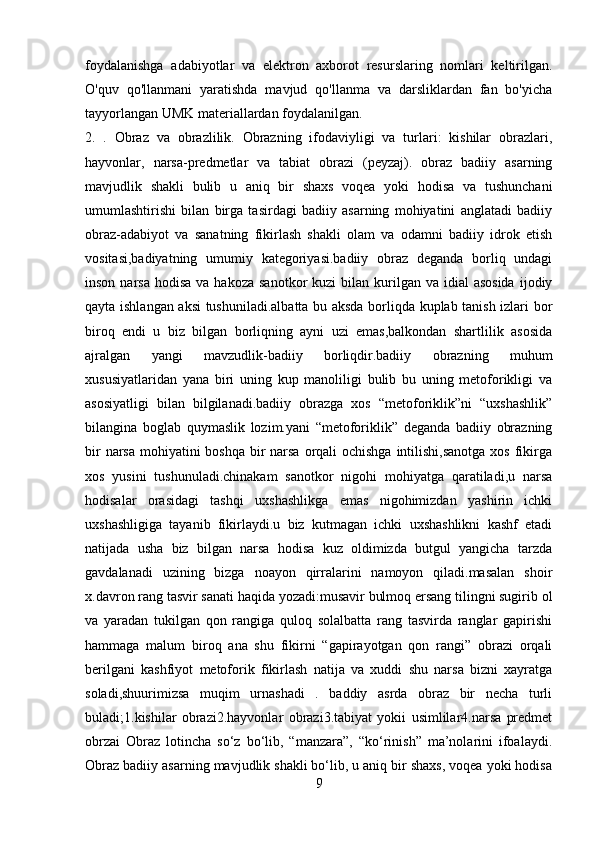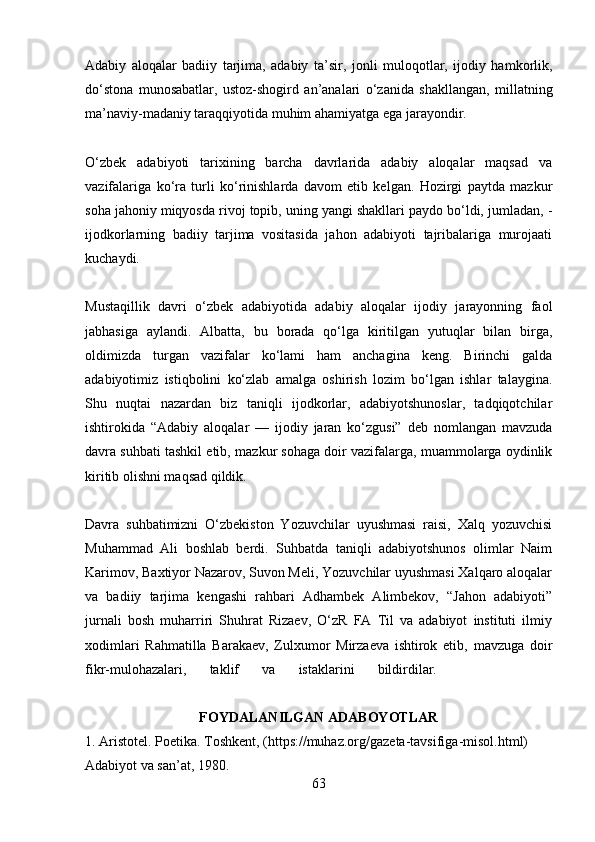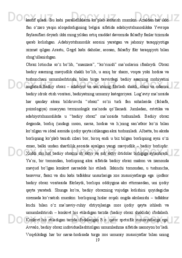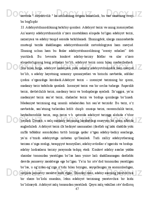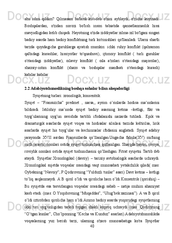 2.2 Adabiyotshunoslikning boshqa sohalar bilan aloqadorligi ……………….43-66
