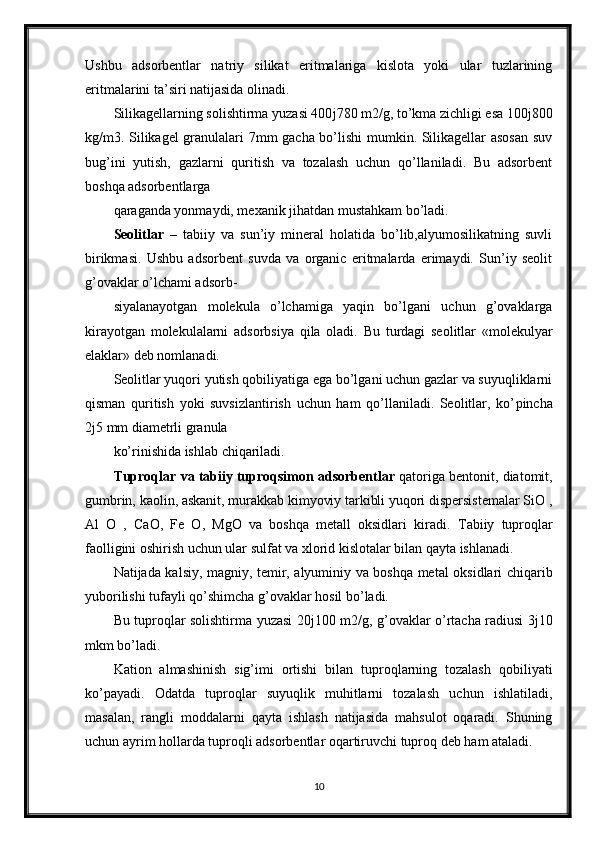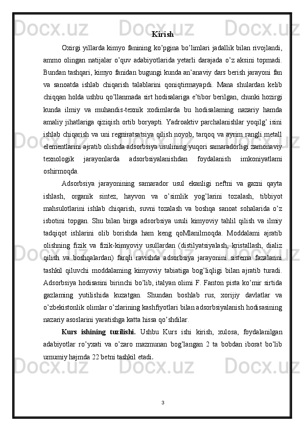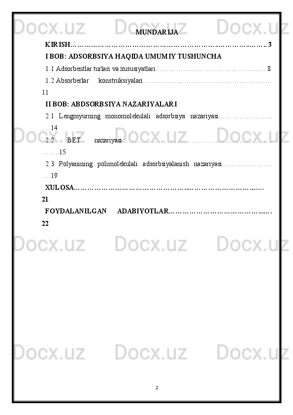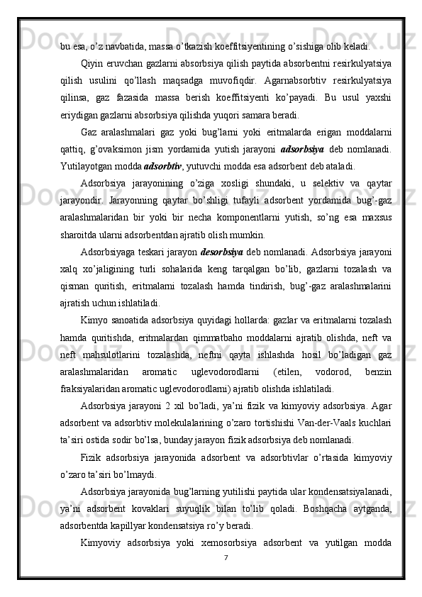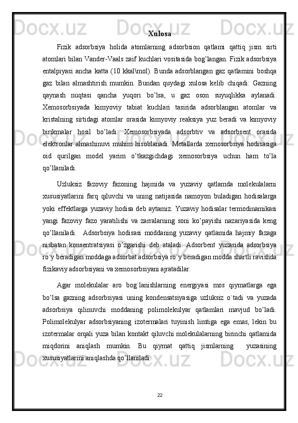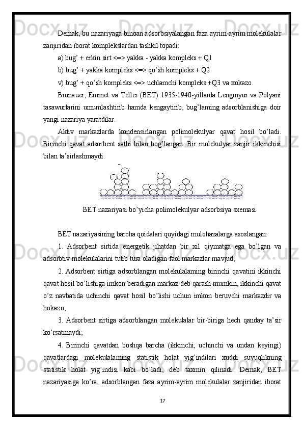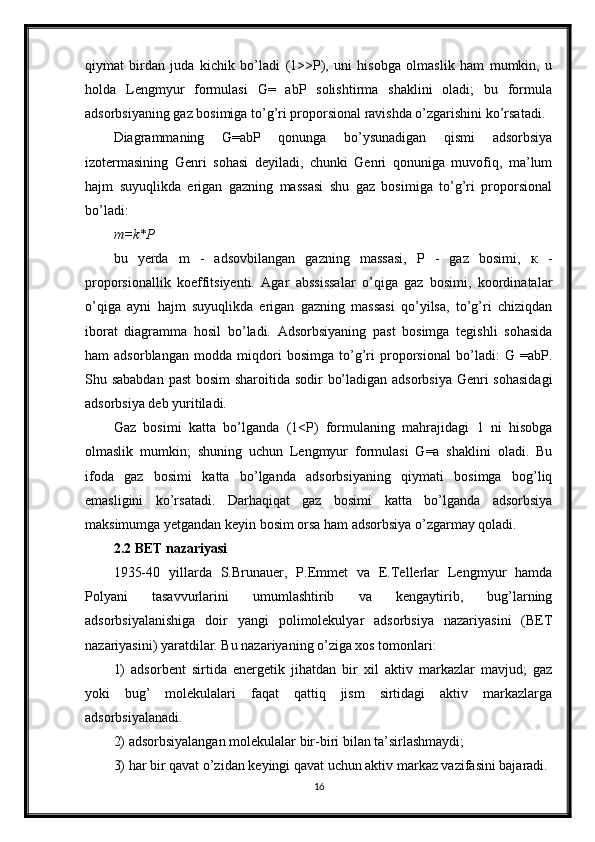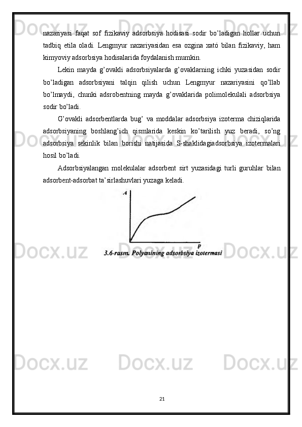 Adsorbsiyaning asosiy nazariyalari va bu nazariyalarning mohiyati