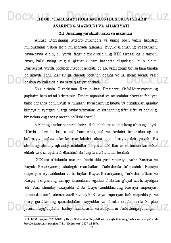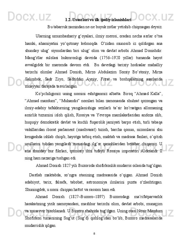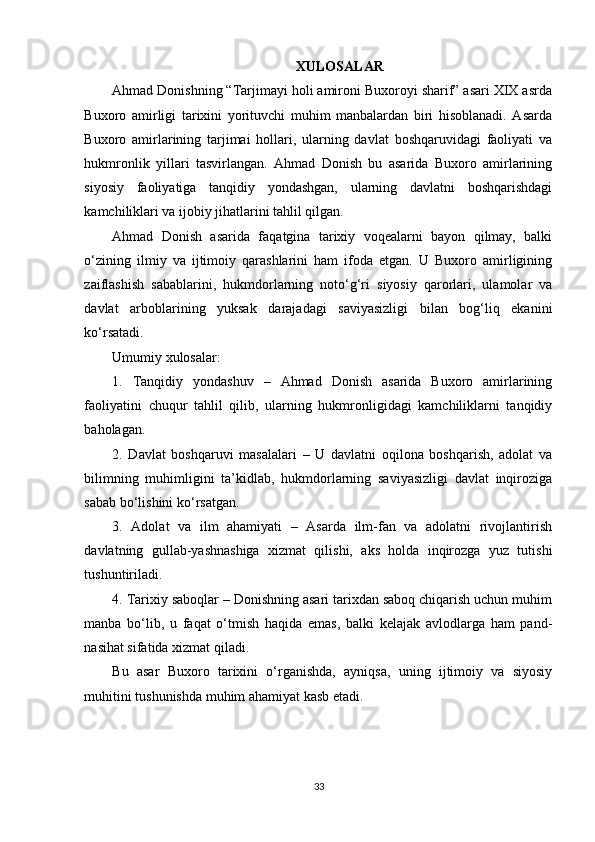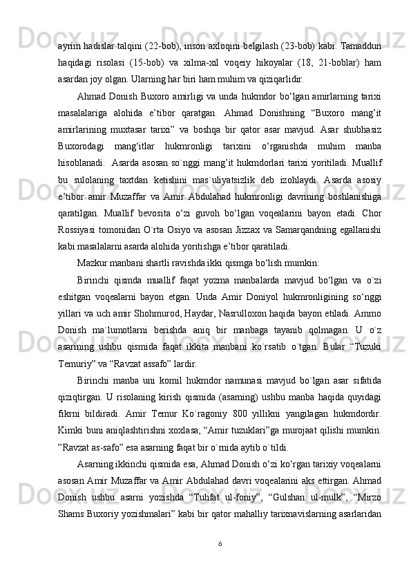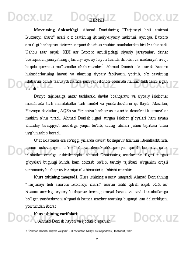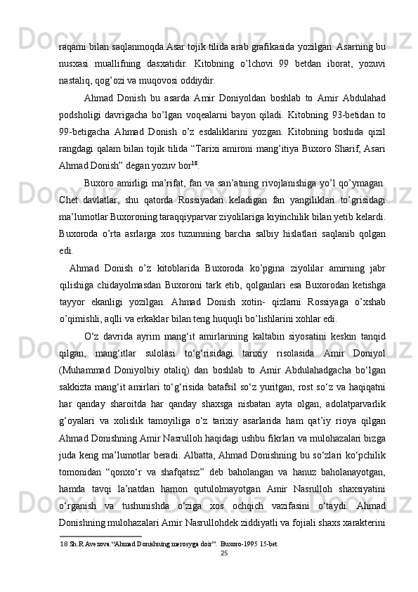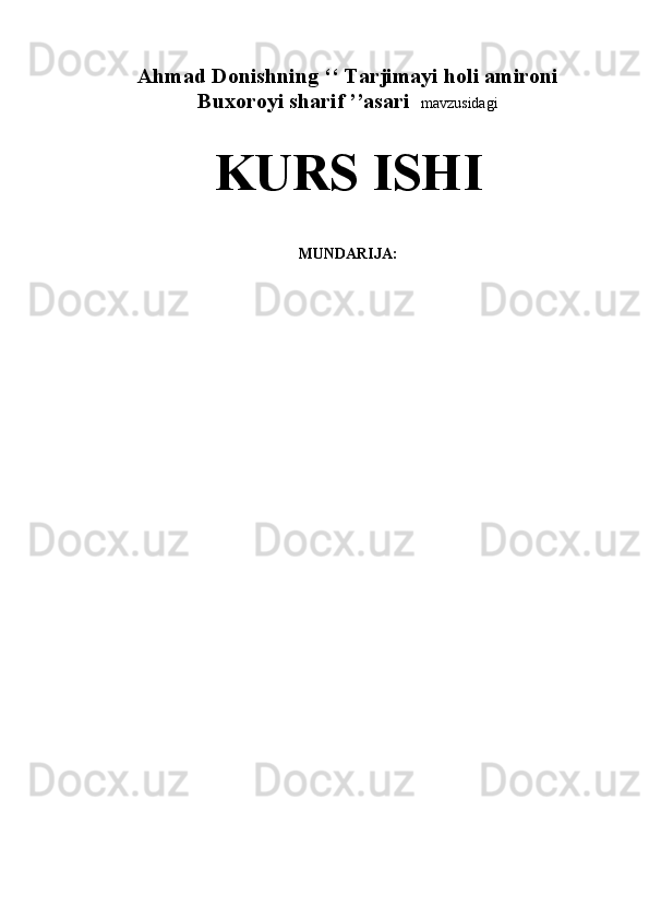Ahmad Donishning ‘‘ Tarjimayi holi amironi Buxoroyi sharif ’’asari kurs ishi