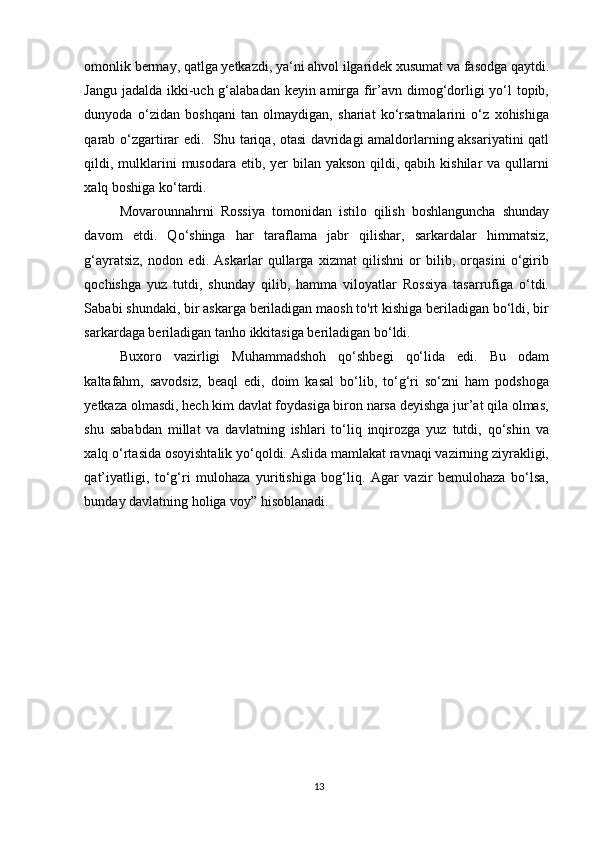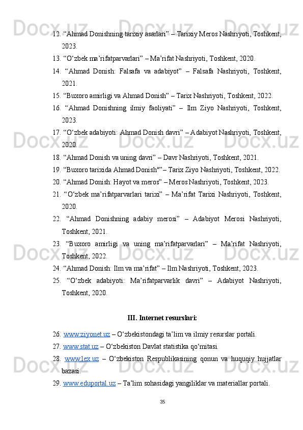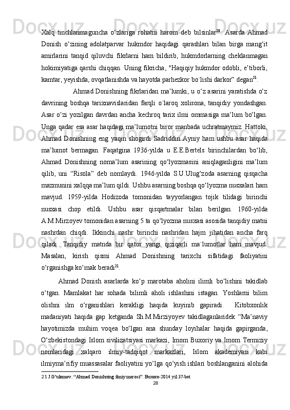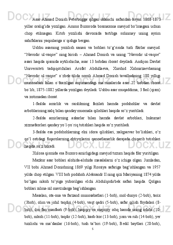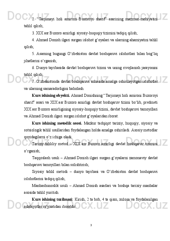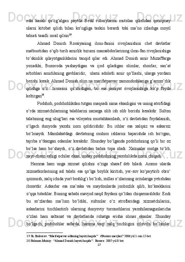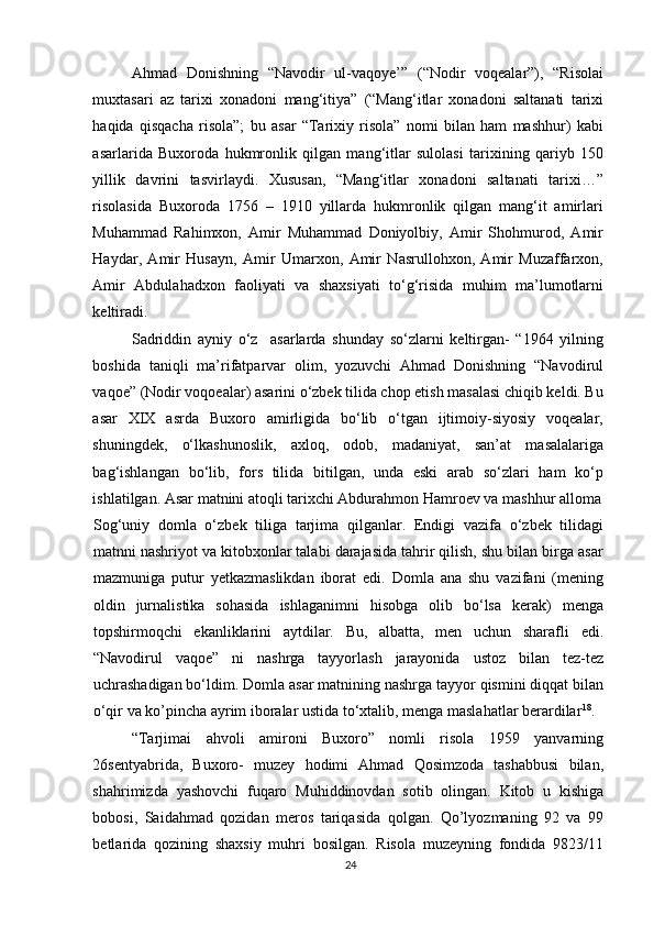 Ahmad Donishning ‘‘ Tarjimayi holi amironi Buxoroyi sharif ’’asari kurs ishi