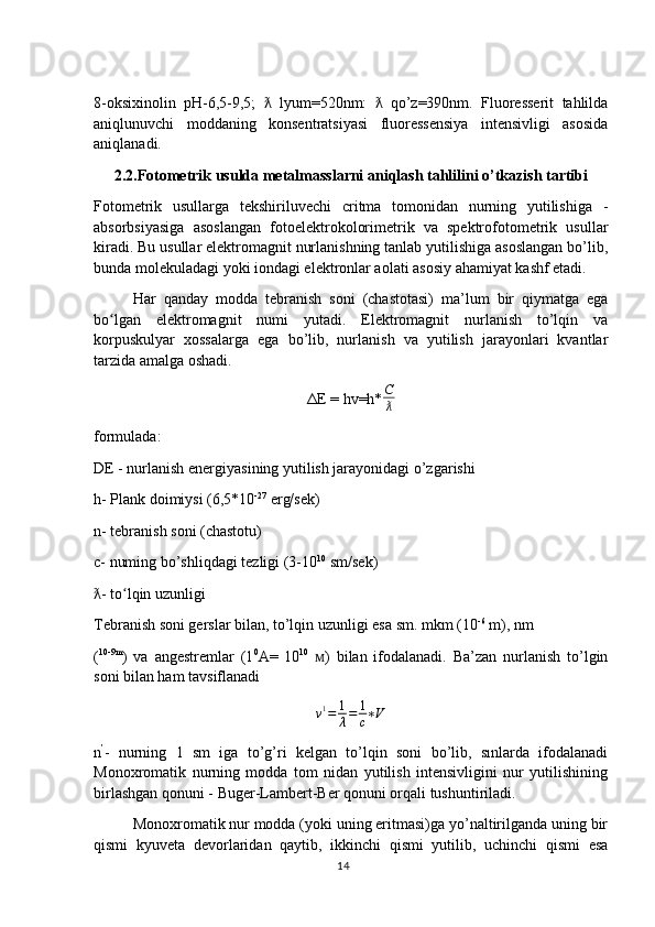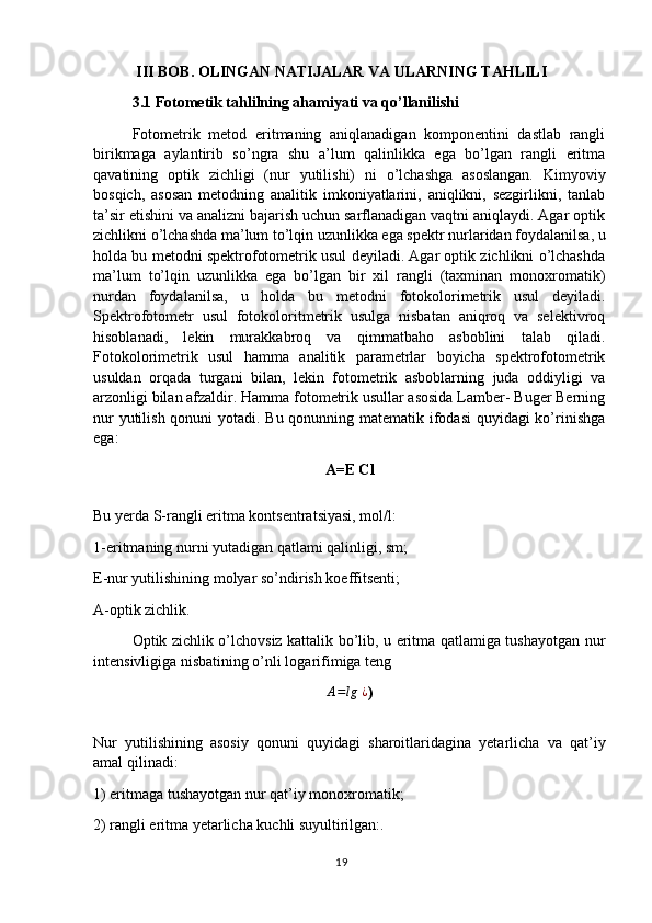 Ajratish va aniqlash (sifat analizi) metodlari