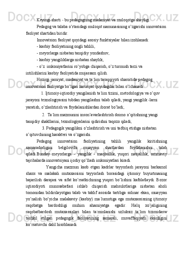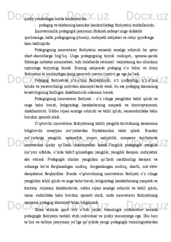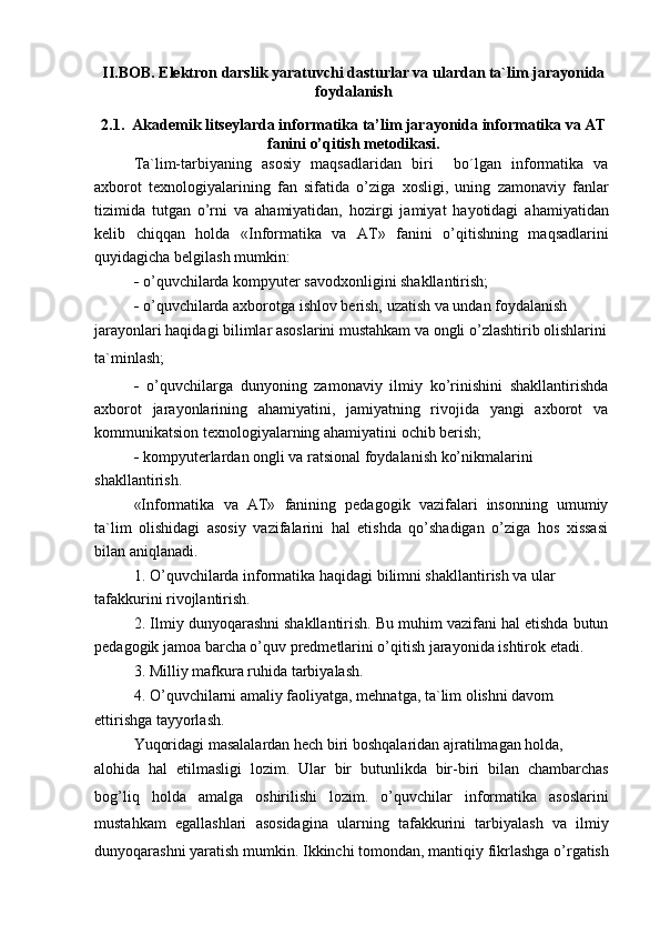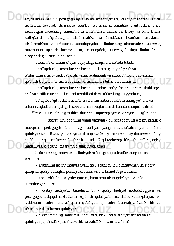 Akademik litseylar informatika o‘qituvchisining innovatsion pedagogik faoliyati va qobiliyati