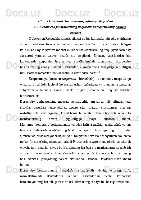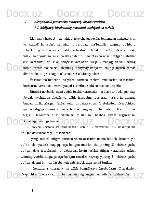 Aksiyadorlik jamiyalarida moliyaviy hisobotlarning o’rni va moliyaviy hisobotlarning tamoyillari