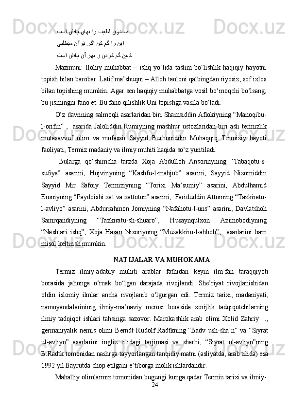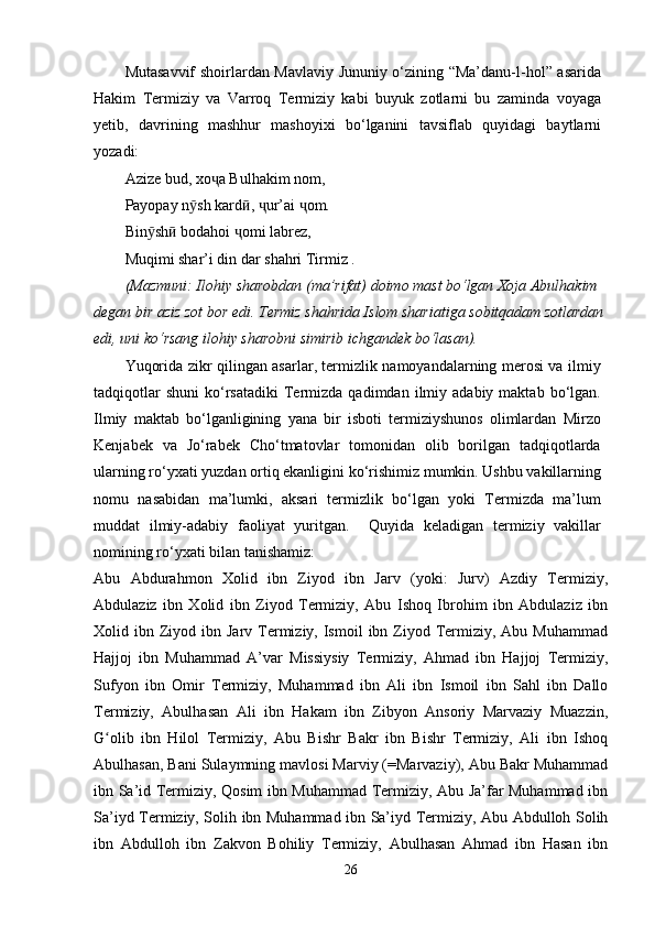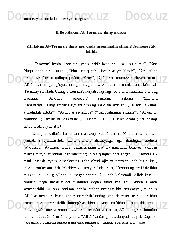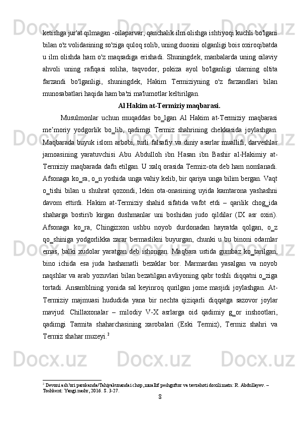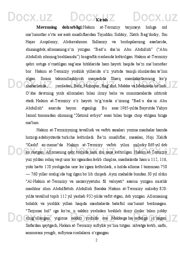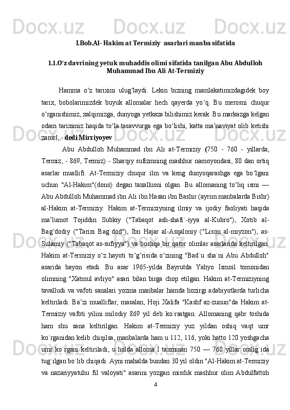 Al- Hakim at Termiziy asarlari manba sifatida