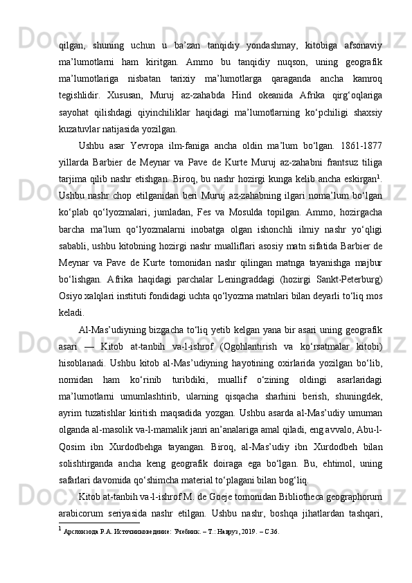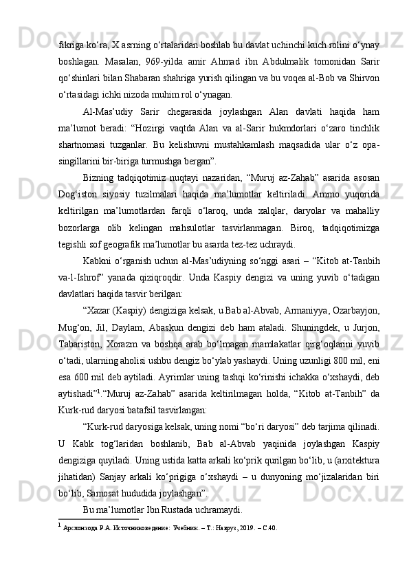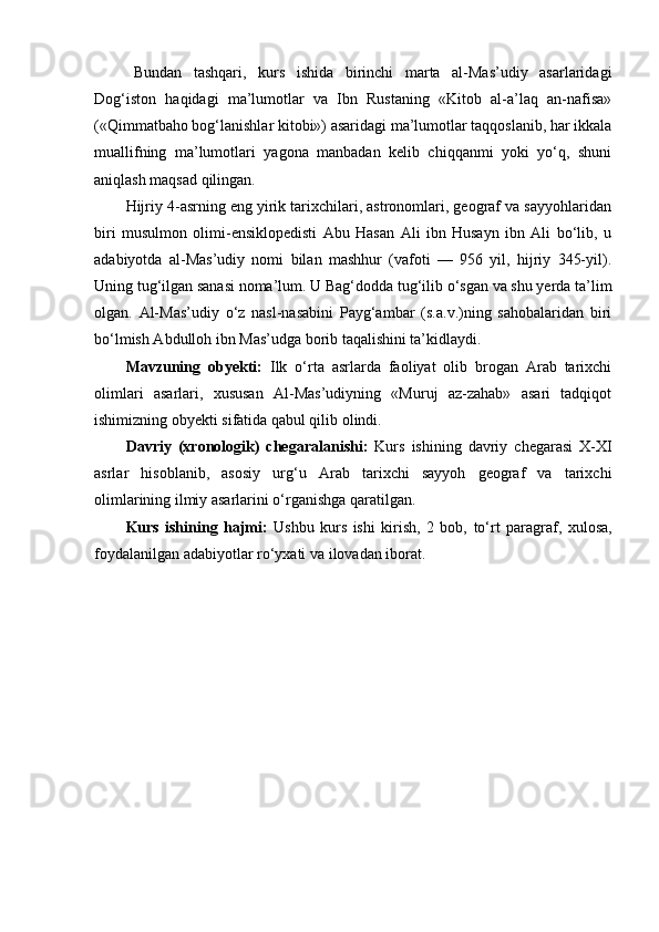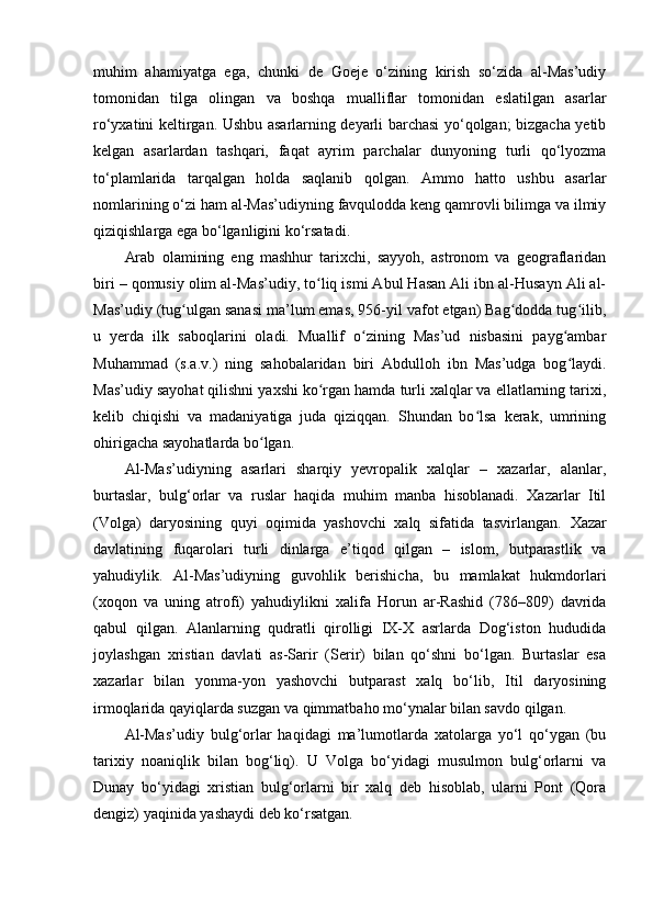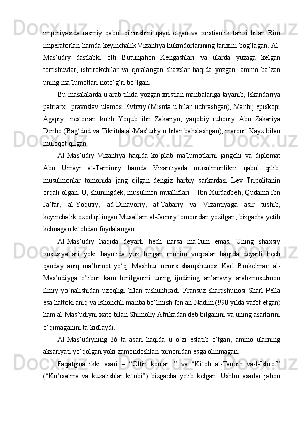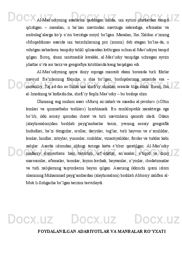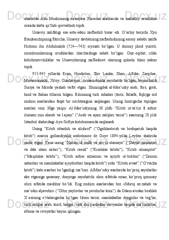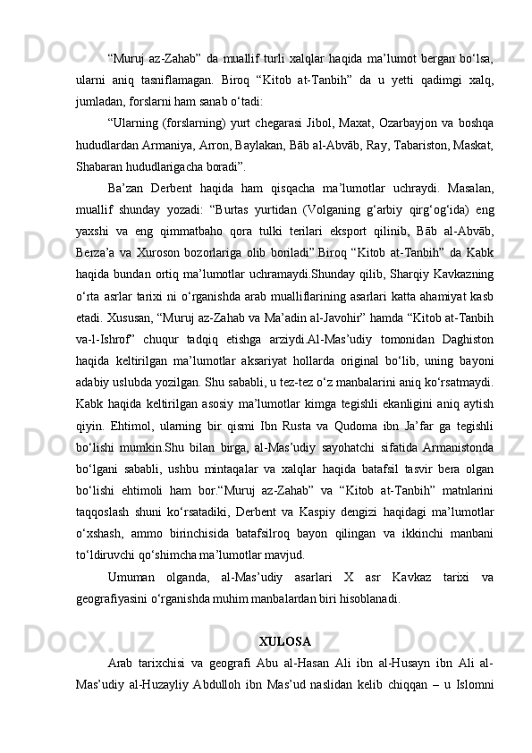 Аl-Mаs’udiyning “Muruj az-zahab” аsаri hаqidа