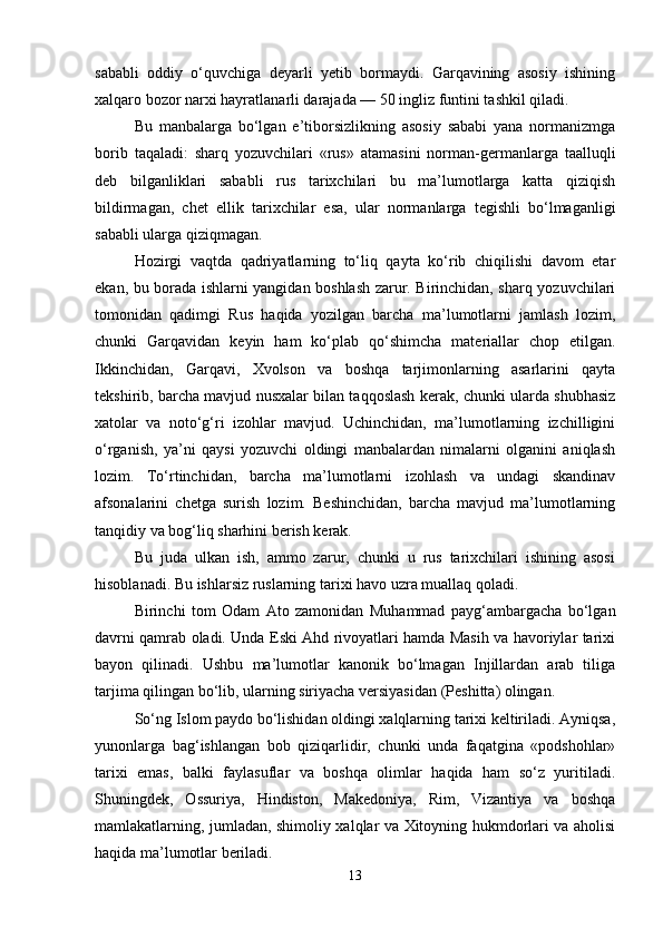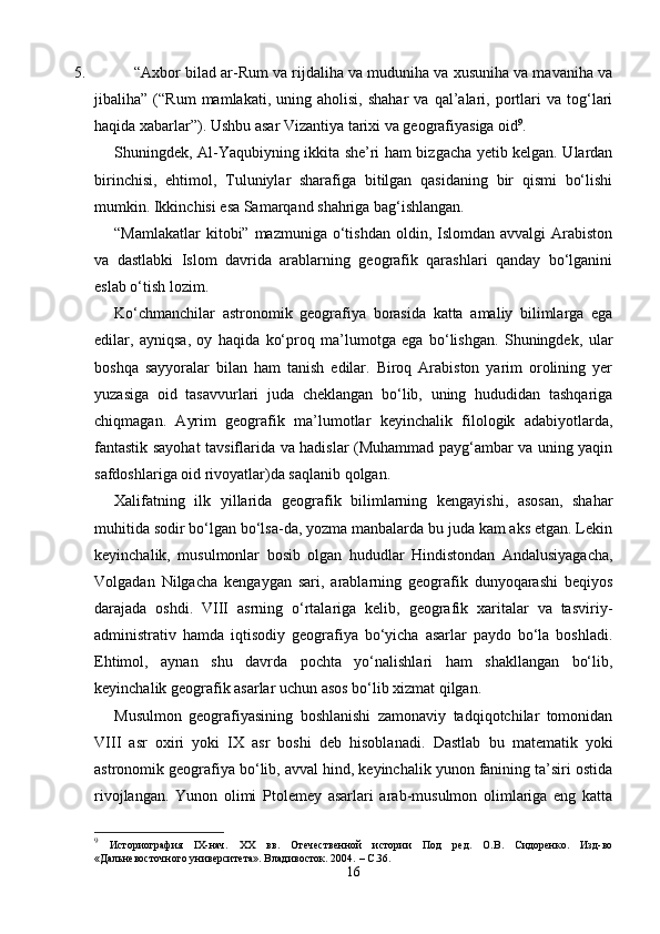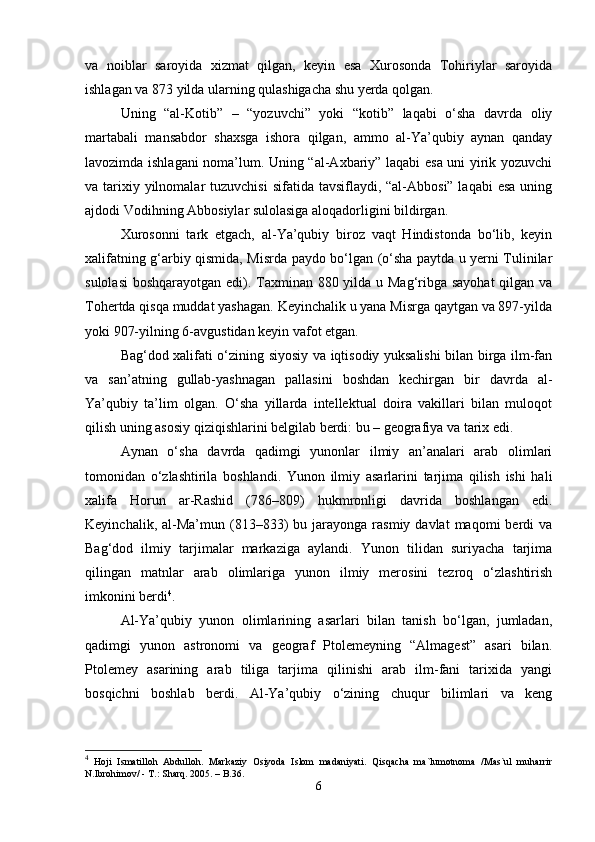 Аl-Ya’qubiyning “Ta’rix” asari tarixiy manba sifatida